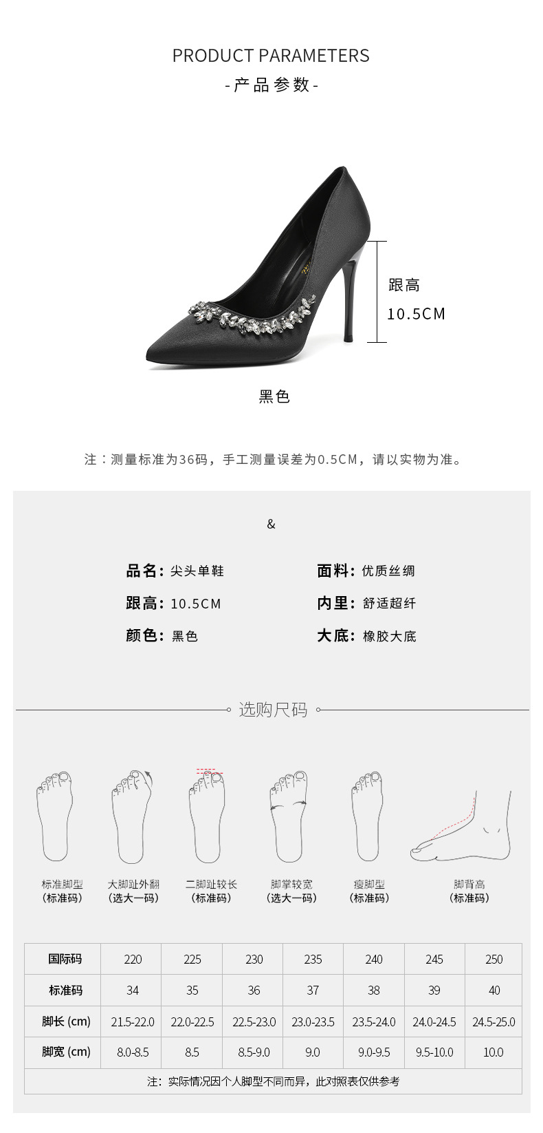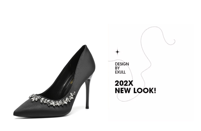 스몰 사이즈 313233 고급 모조 다이아몬드 뾰족한 굽 높은 신발 여성 다재다능한 프랑스 기질 사교계 블랙 플러스 사이즈 41-43