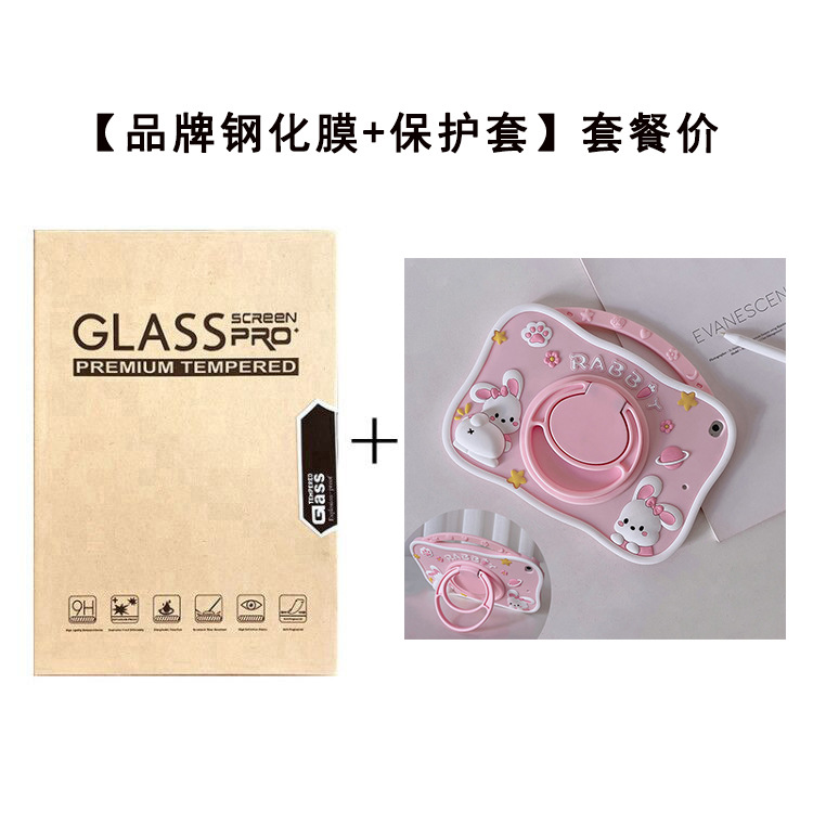 • 휴대용(핑크 핀치 래빗) + [강화 필름] + [수평 및 수직 화면 360 포함°회전 브래킷]