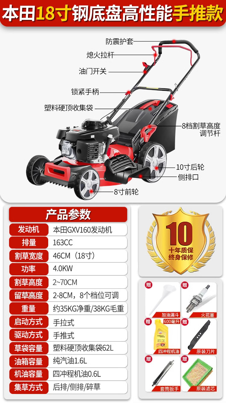 • Honda 18inch 두꺼운 강철 섀시 푸시형(중밀도 잔디) GXV160