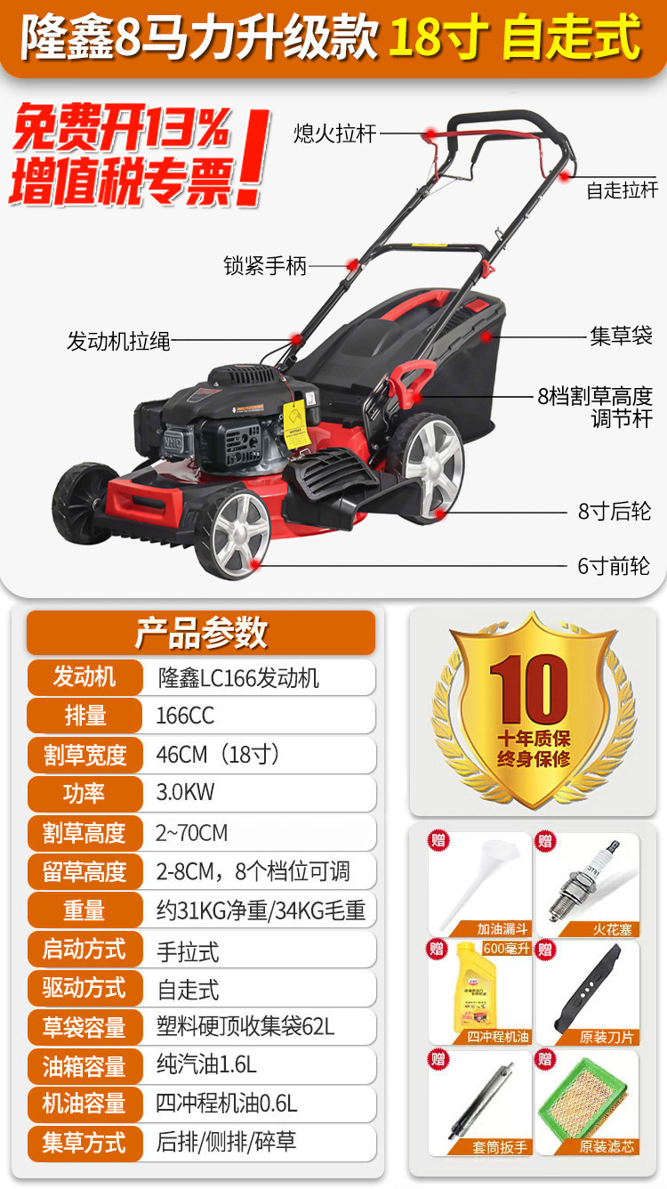 • Longxin 18inch 두꺼운 강철 바닥 자체 추진(중밀도 잔디) Longxin LC166