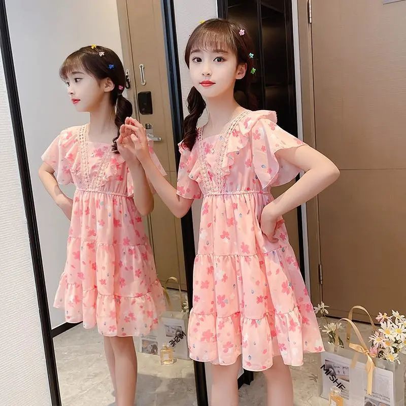 여자 원피스 여름 원피스 2025 새로운 한국 스타일 서양식 어린이 여름 치마 소녀 큰 어린이 공주 원사 치마