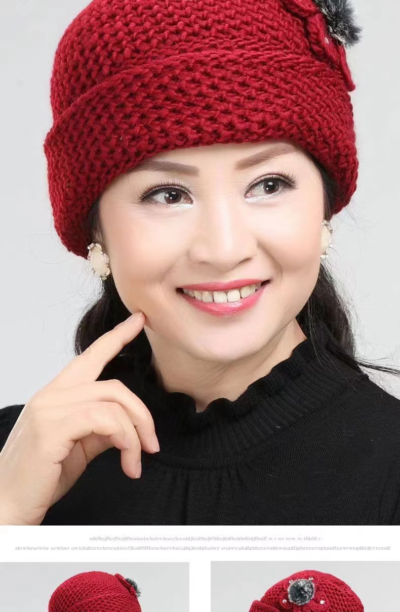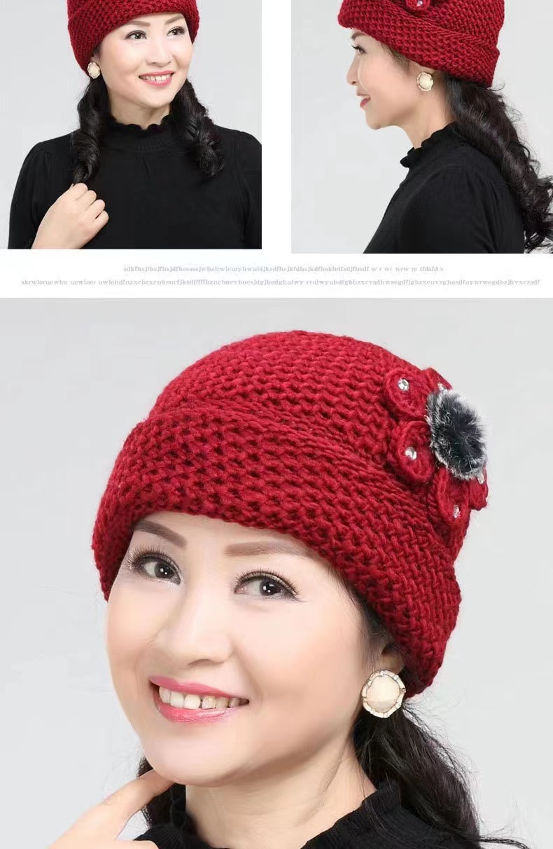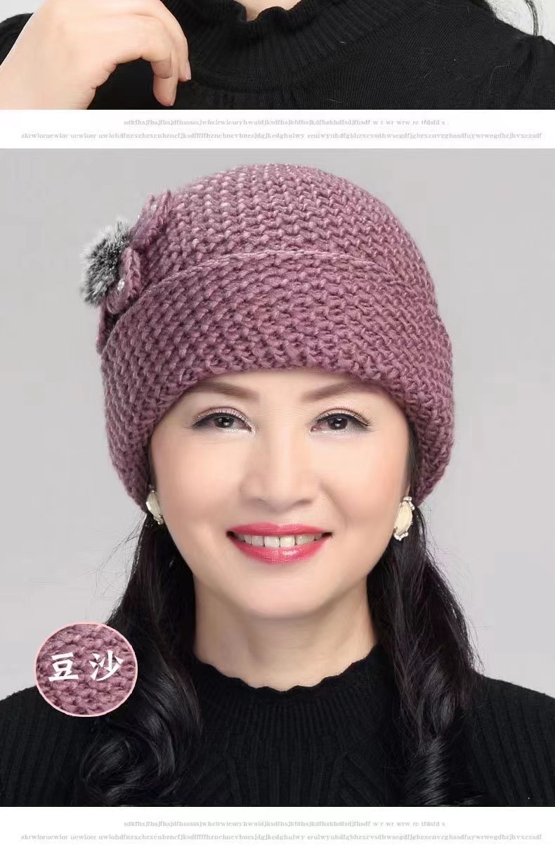 노부인 양모 모자 어린이 가을과 겨울 노인 기모 두꺼운 겨울 할머니 모자 따뜻한 어머니 성인 모자 배치