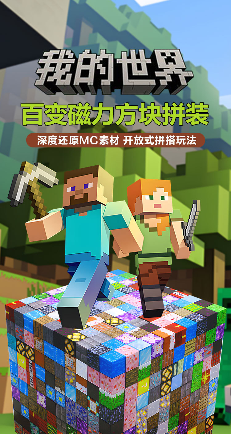 내 세계 자석 빌딩 블록 일치하는 DIY 자석 빌딩 블록 도매 소년 퍼즐 박스 빌딩 블록 선물 장난감스토어 가기