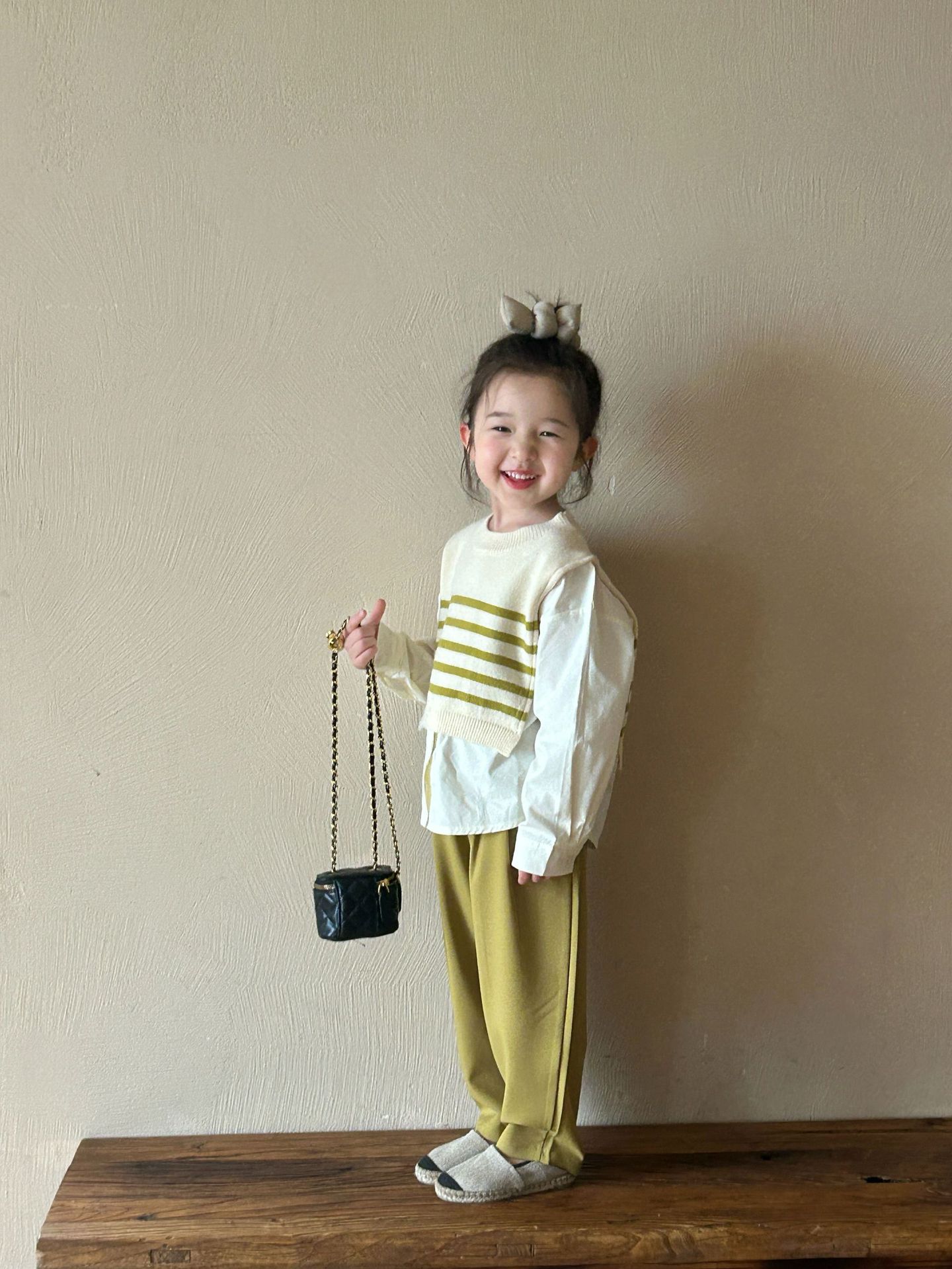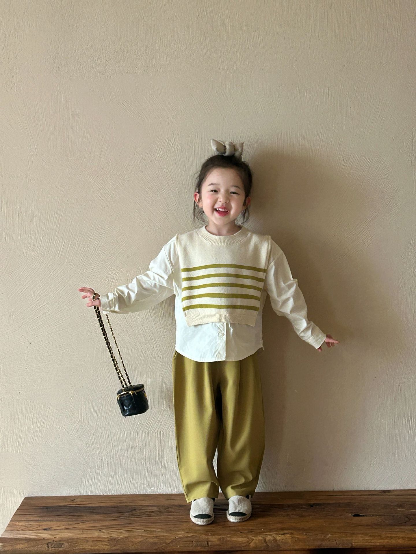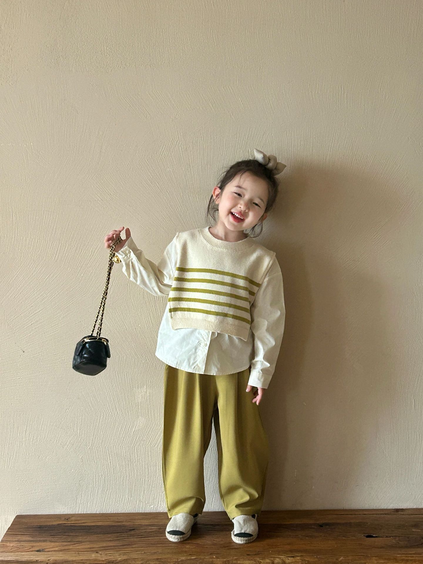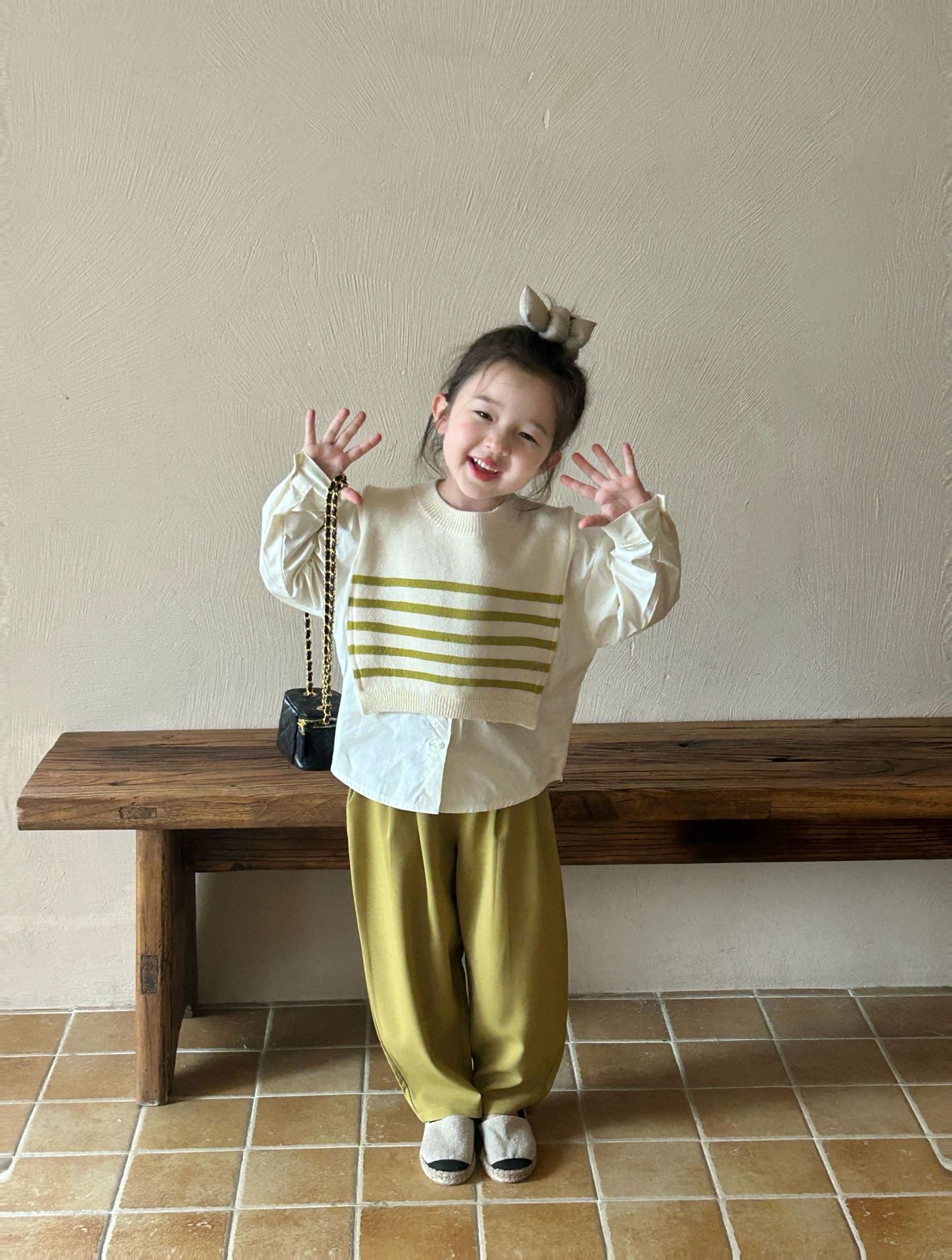 2025 봄 새 아동복 한국 아동복 소녀 줄무늬 가짜 투피스 셔츠 녹색 세트 바지 세트스토어 가기