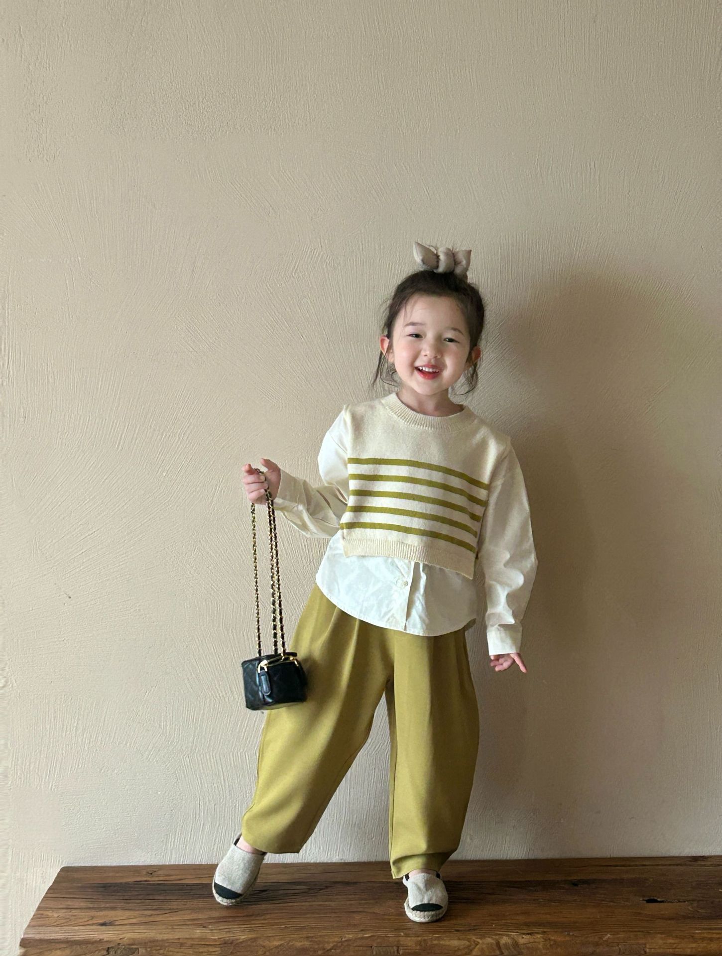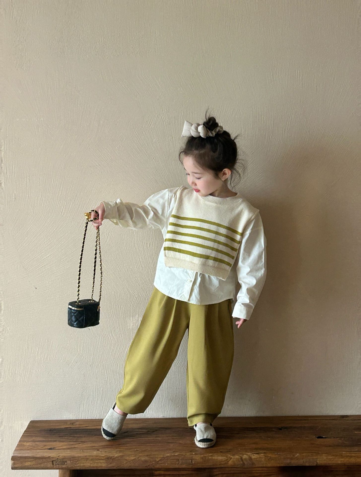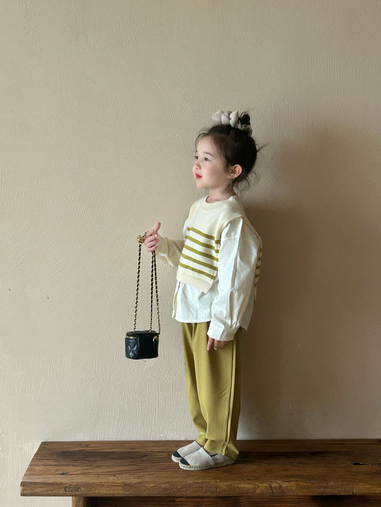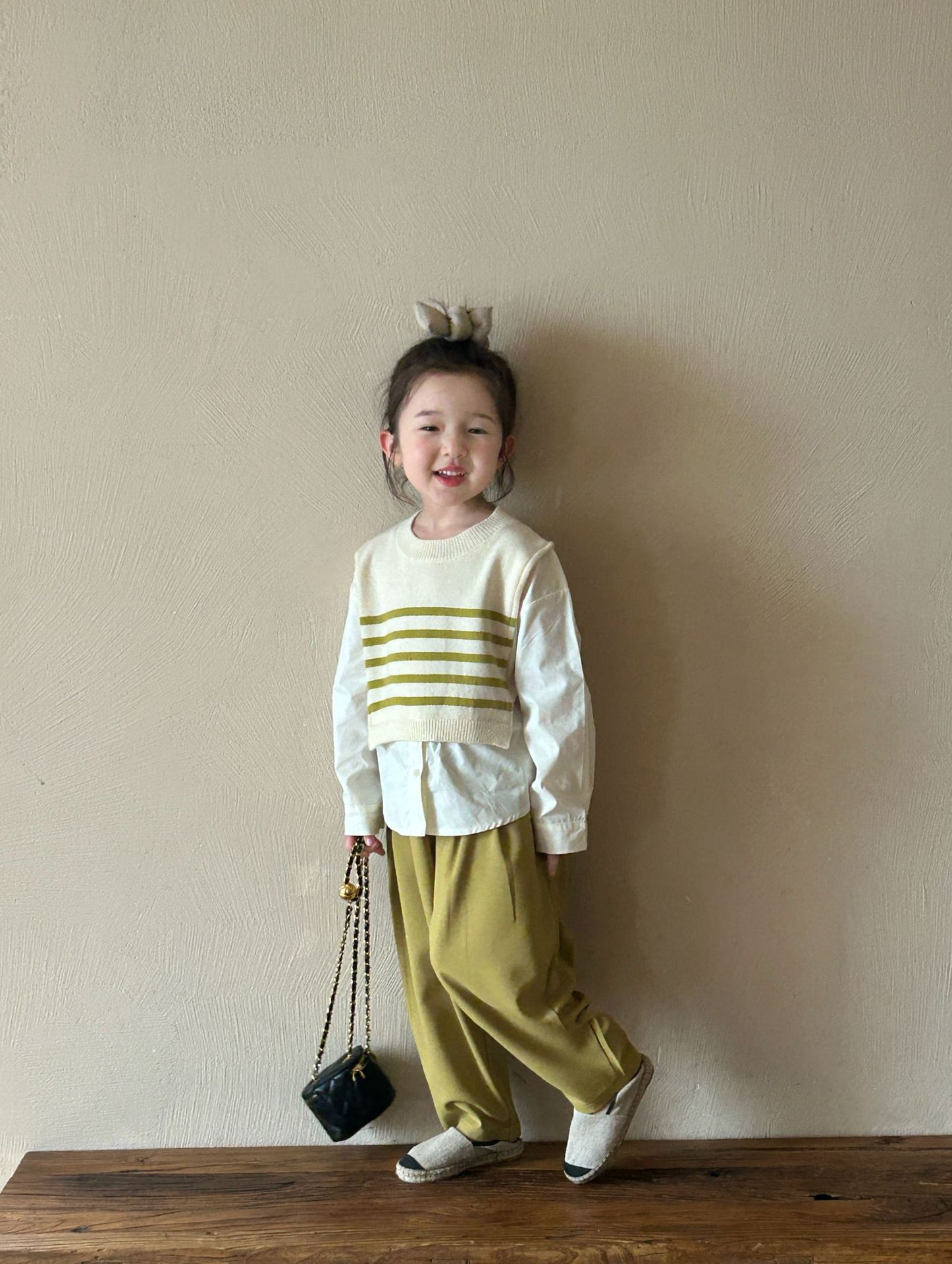 2025 봄 새 아동복 한국 아동복 소녀 줄무늬 가짜 투피스 셔츠 녹색 세트 바지 세트스토어 가기