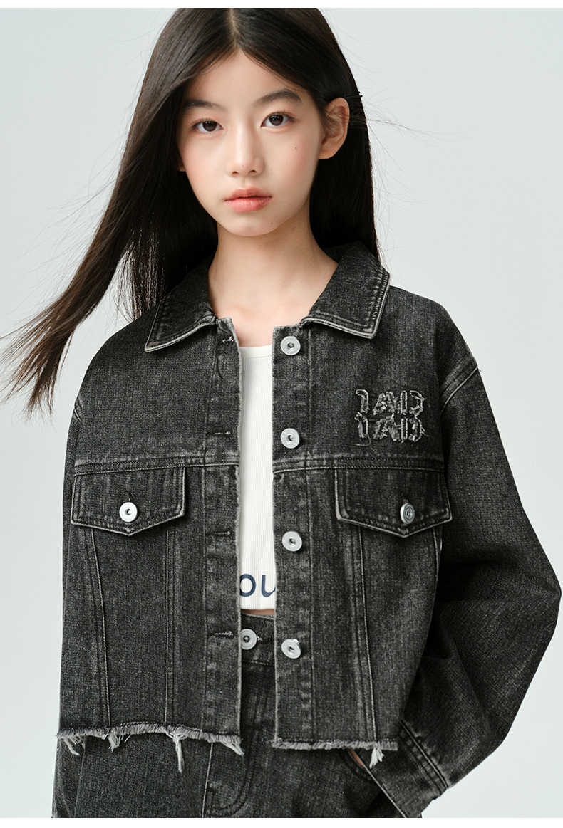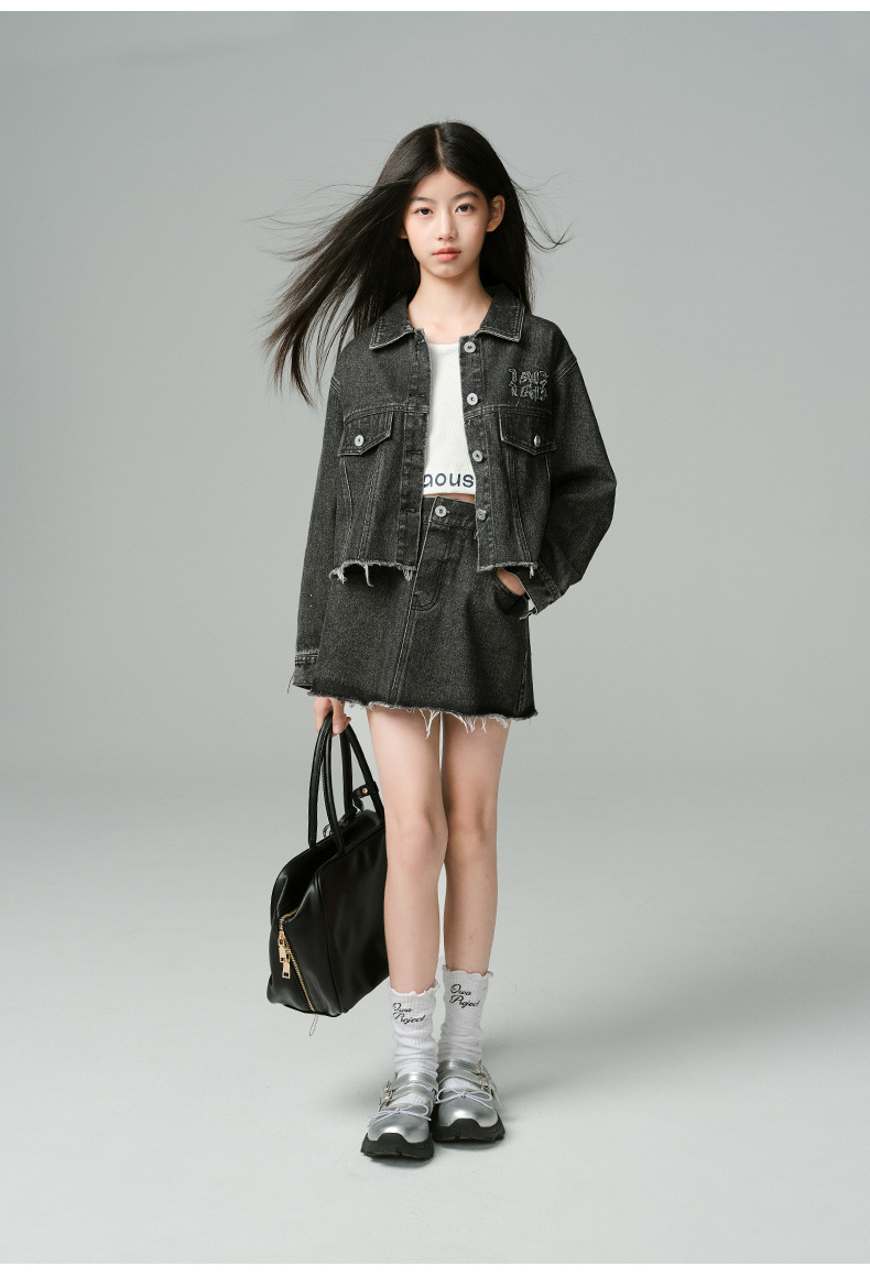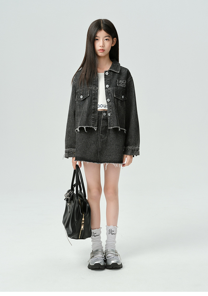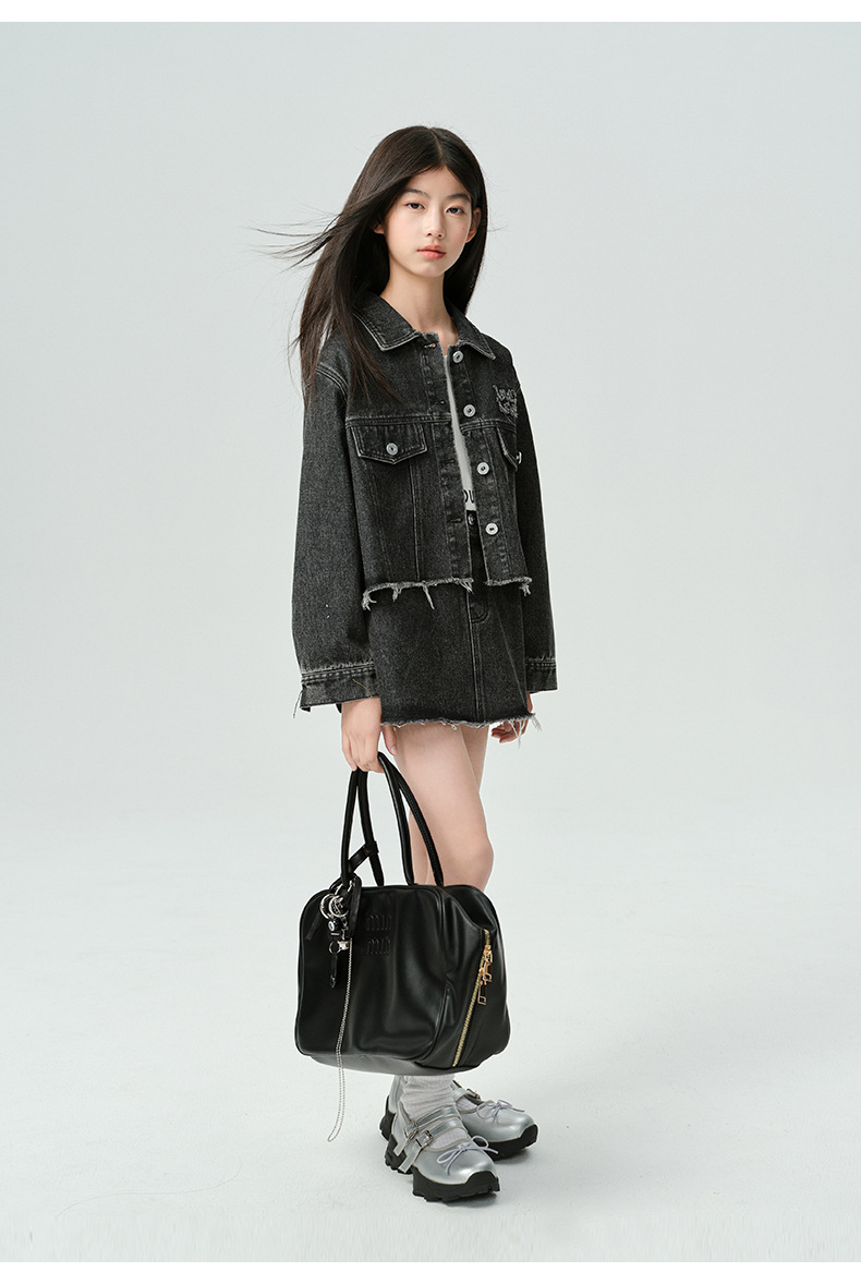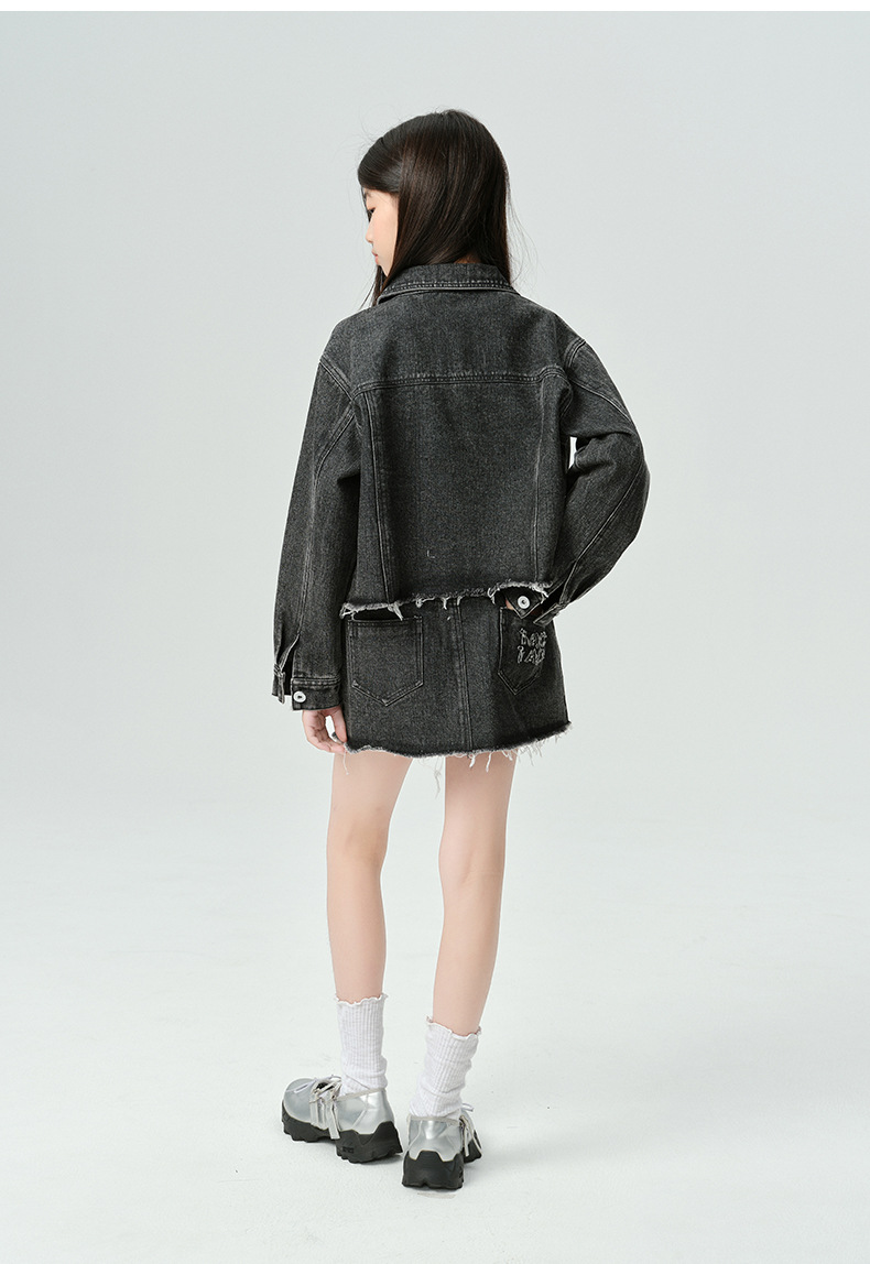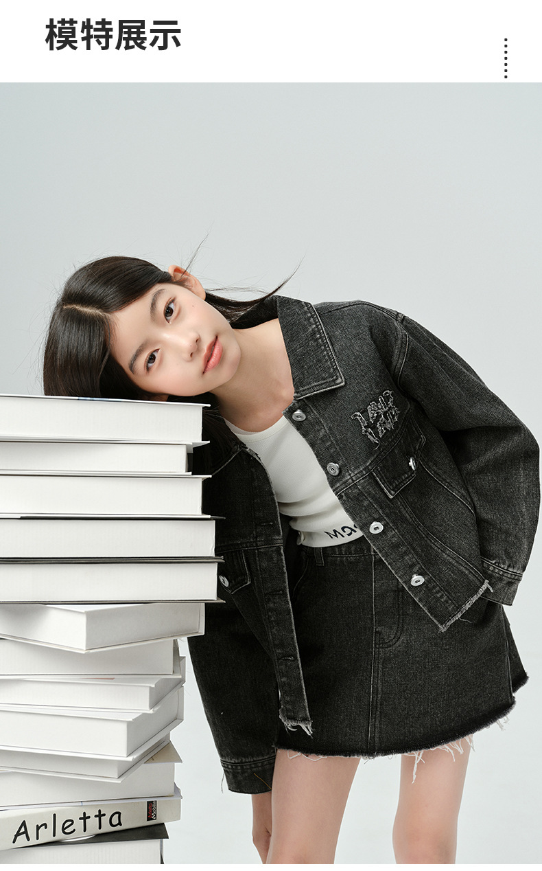 Amoy Town Rebellious Tannin Vulcanized Black Girl's 데님 Jacket Spring New Arrival Big Girl's Loose Casual Jacket