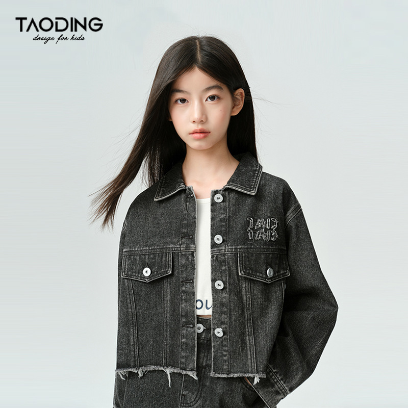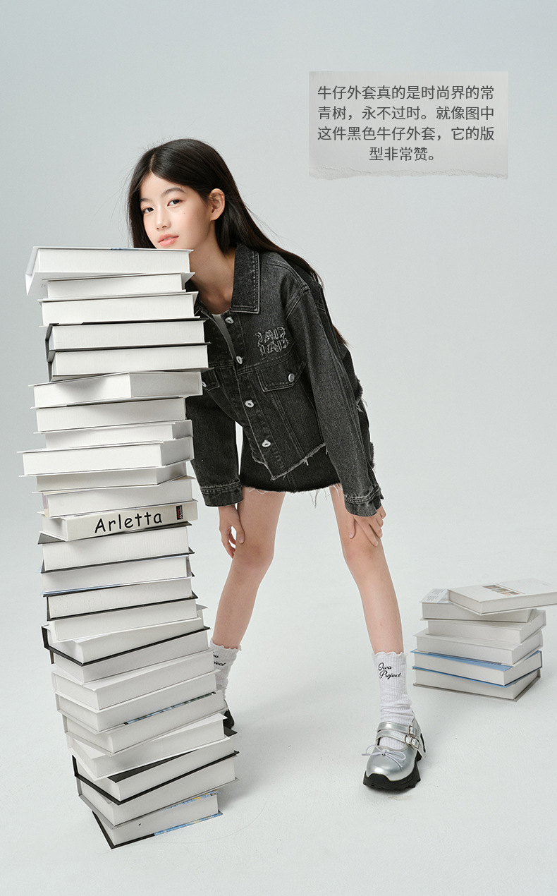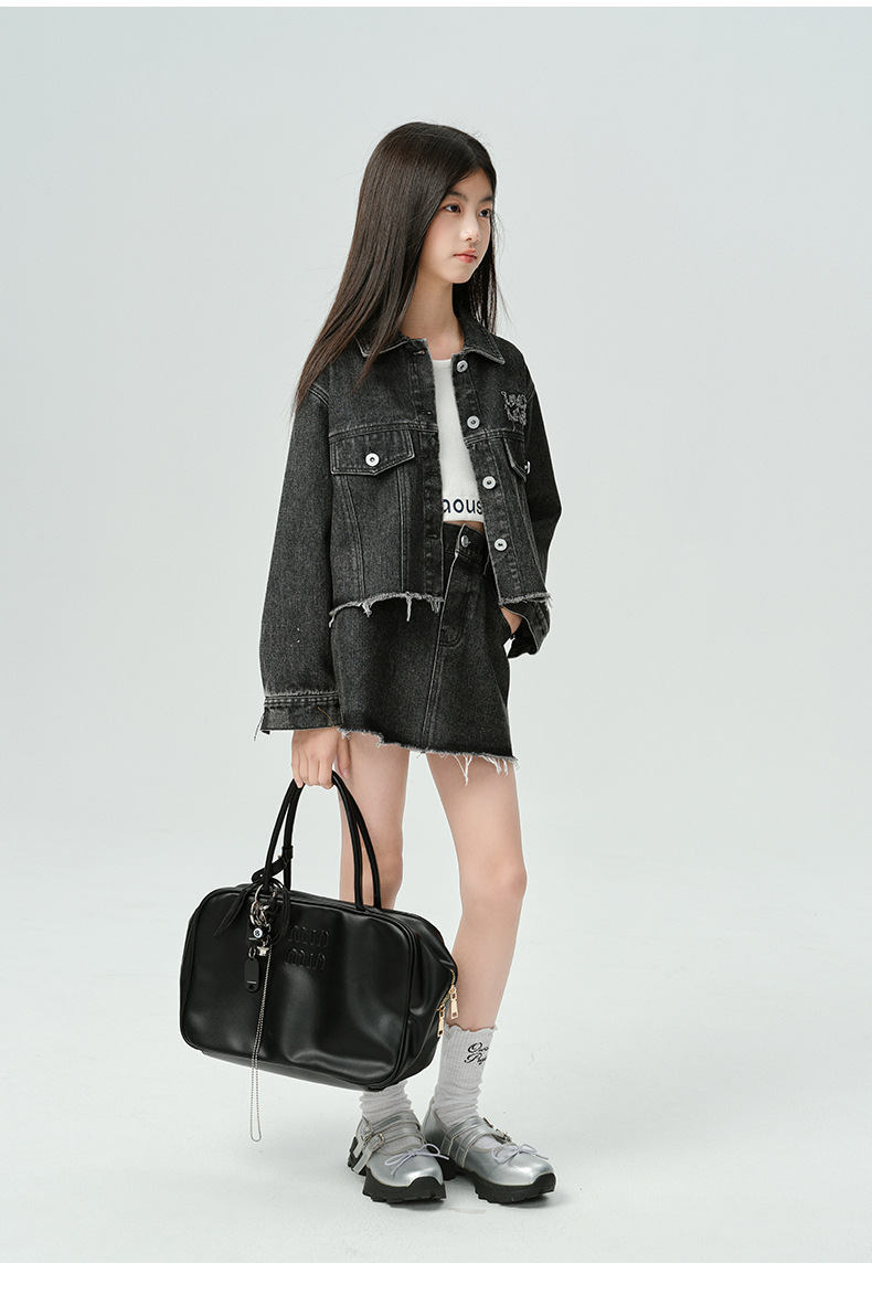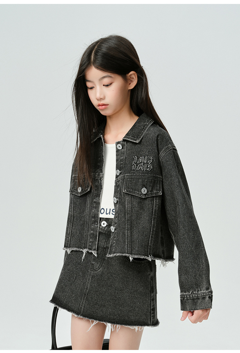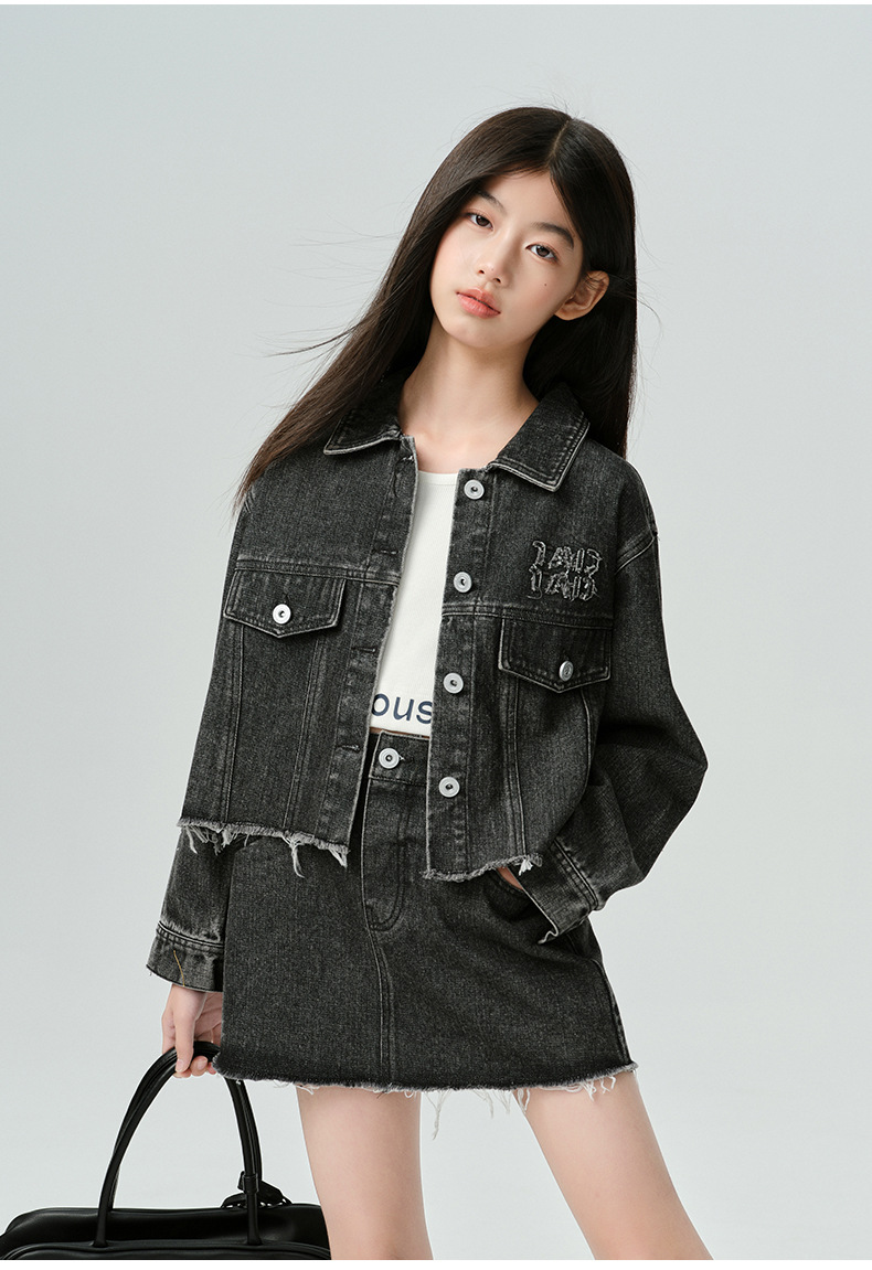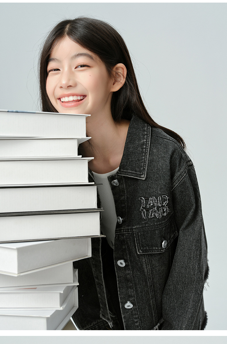 Amoy Town Rebellious Tannin Vulcanized Black Girl's 데님 Jacket Spring New Arrival Big Girl's Loose Casual Jacket
