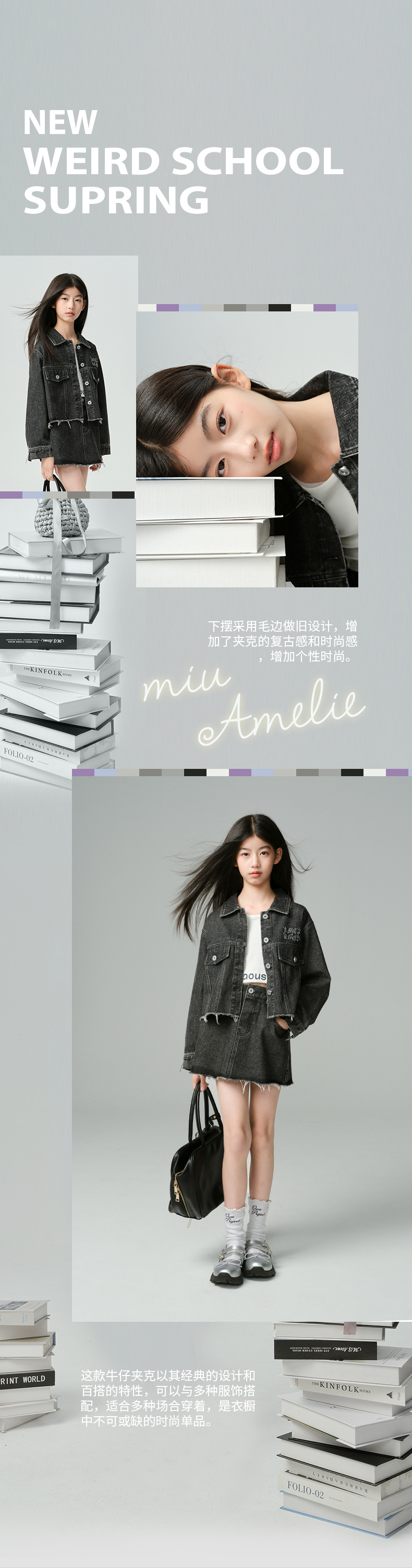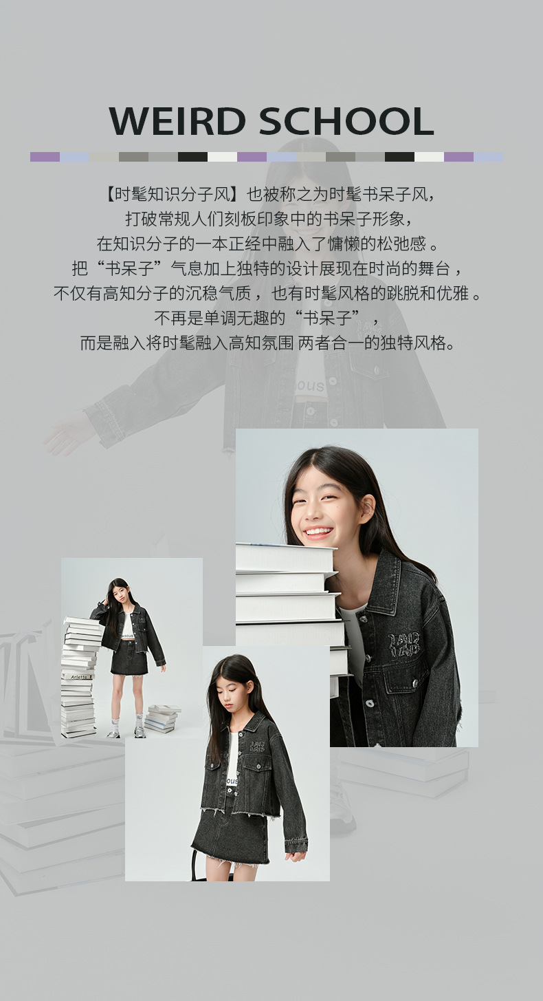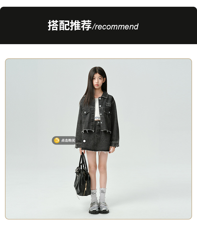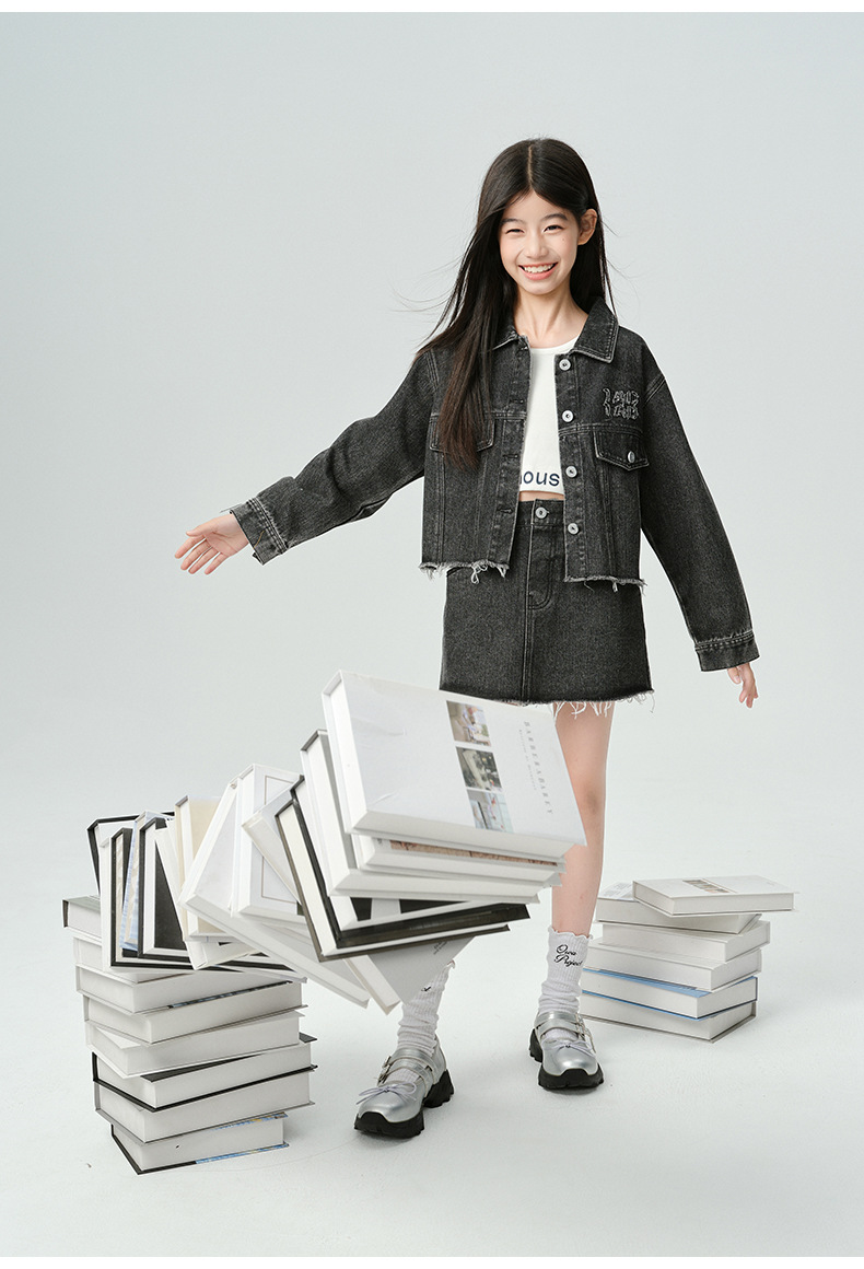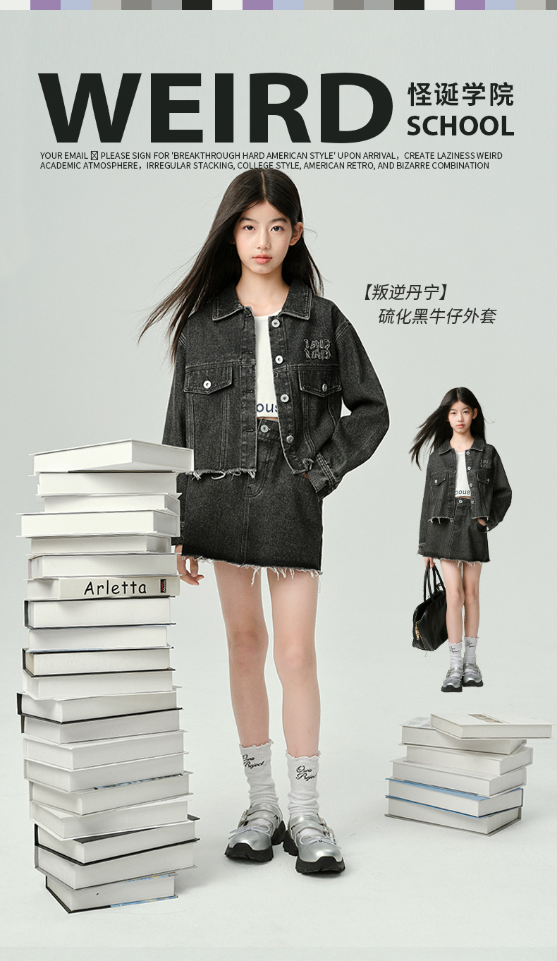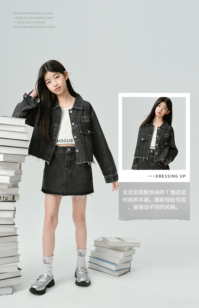 Amoy Town Rebellious Tannin Vulcanized Black Girl's 데님 Jacket Spring New Arrival Big Girl's Loose Casual Jacket