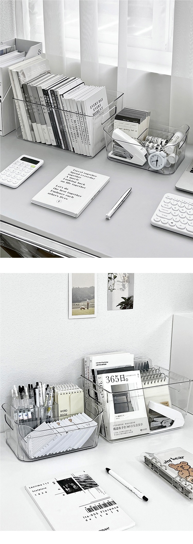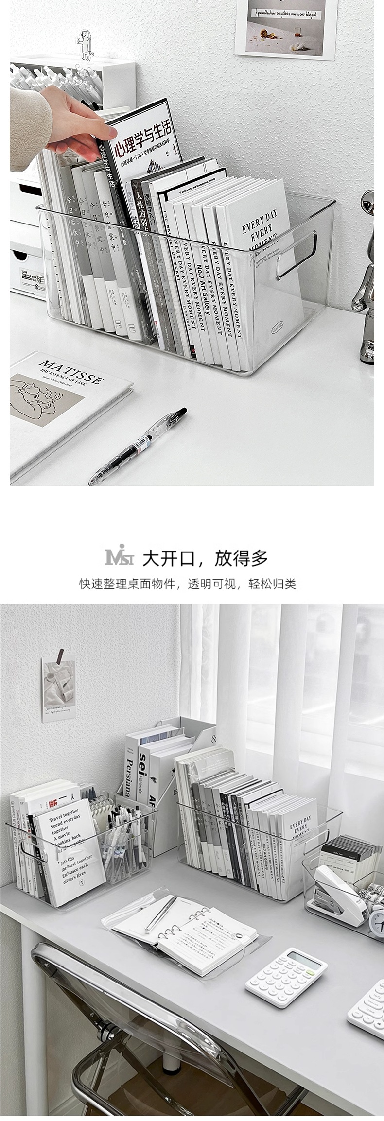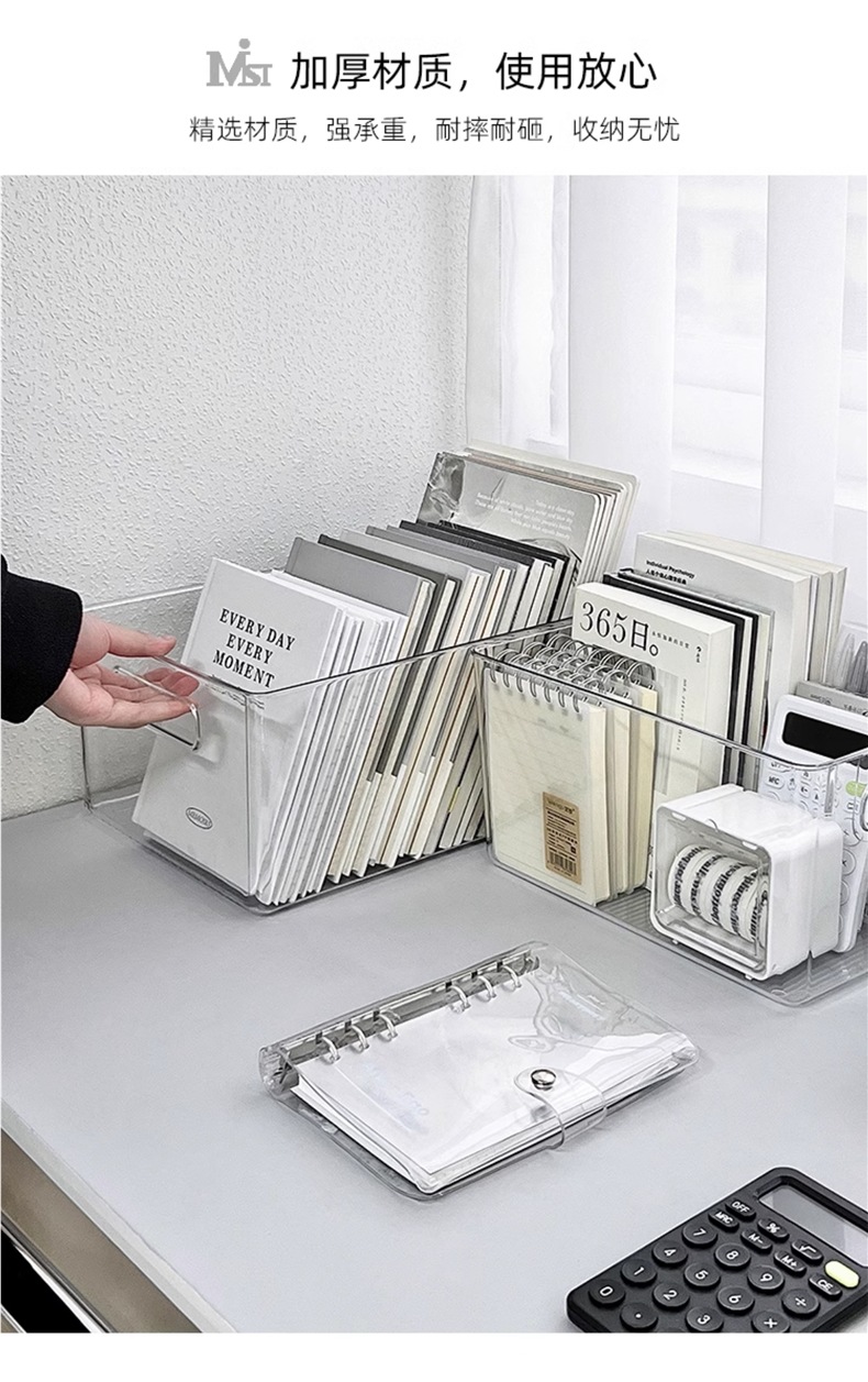 아크릴 데스크탑 저장 상자 투명한 기숙사 책상 문구 책 저장 랙 사무실 파일 바구니스토어 가기