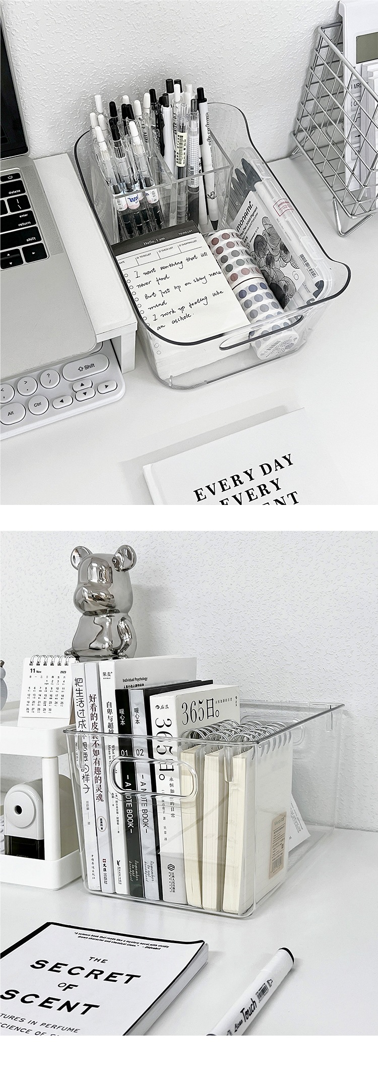 아크릴 데스크탑 저장 상자 투명한 기숙사 책상 문구 책 저장 랙 사무실 파일 바구니
