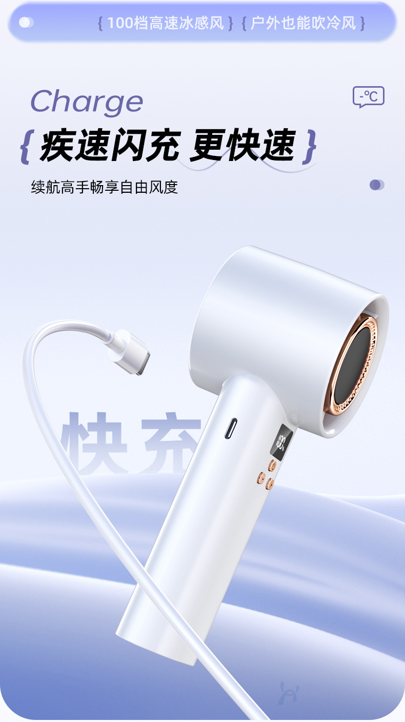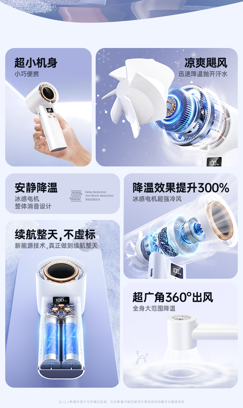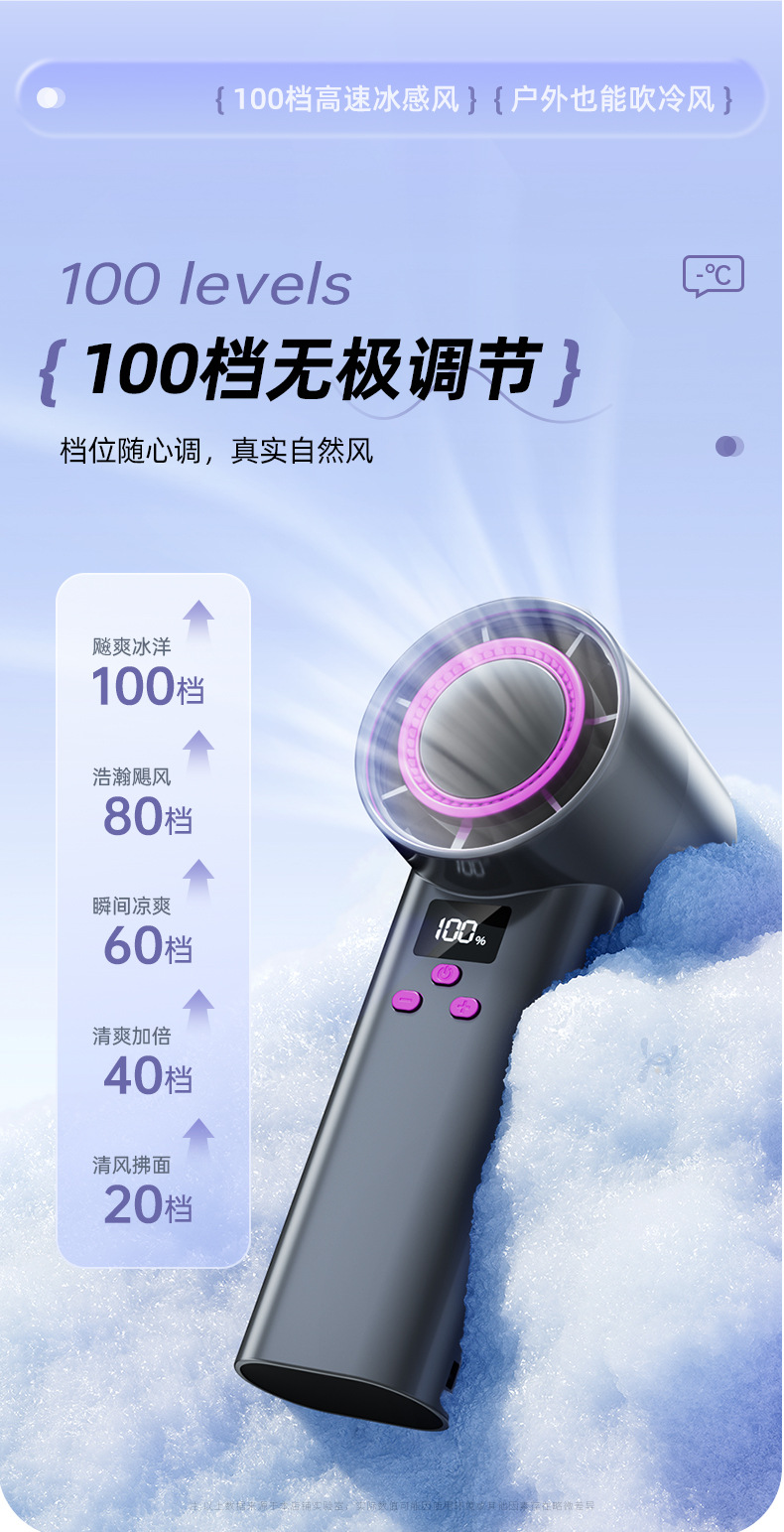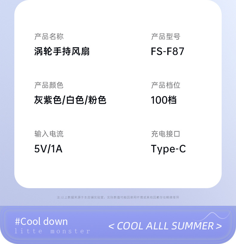 • F85 [100단 휴대용 선풍기] 그레이 퍼플