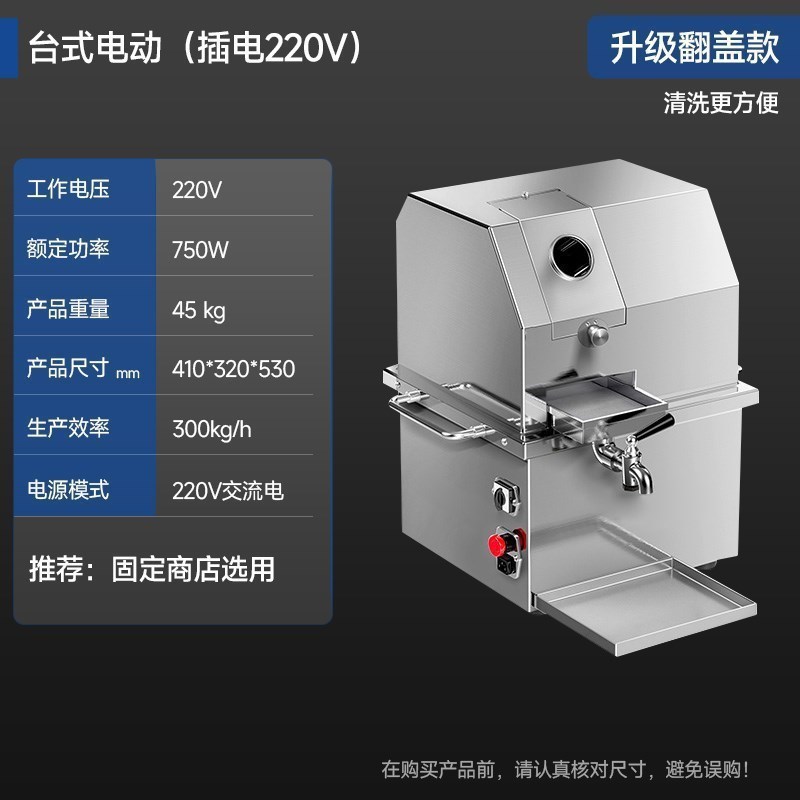 사탕 수수 주스 잔류 물 분리 상업용 스톨 데스크탑 전기 프레스 스테인레스 스틸 수직 드라이 사탕 수수 주스스토어 가기