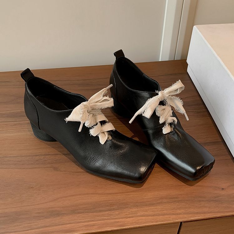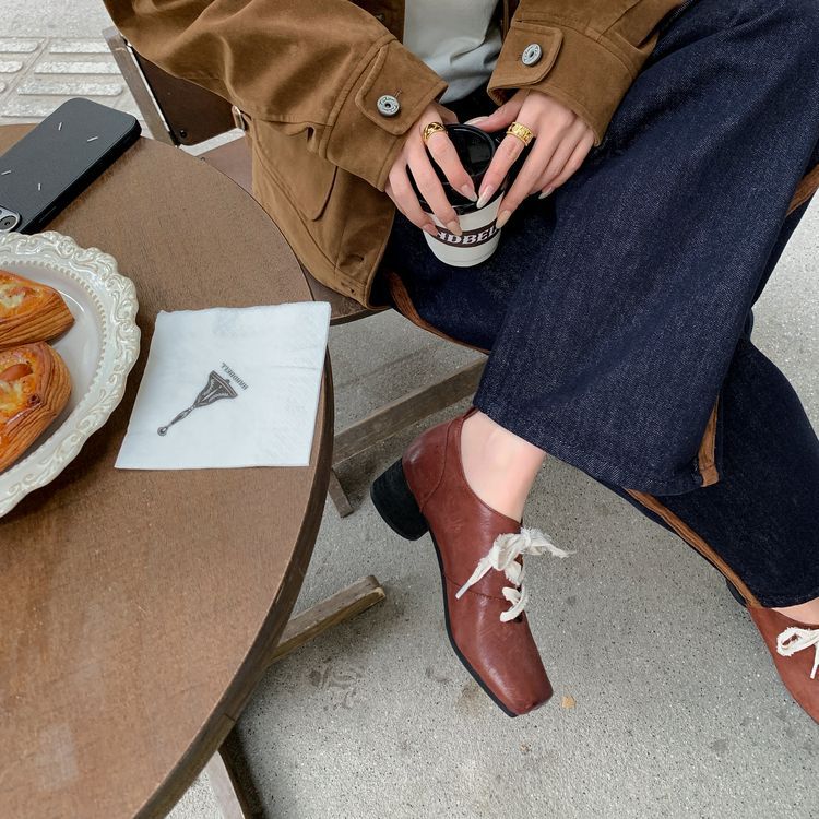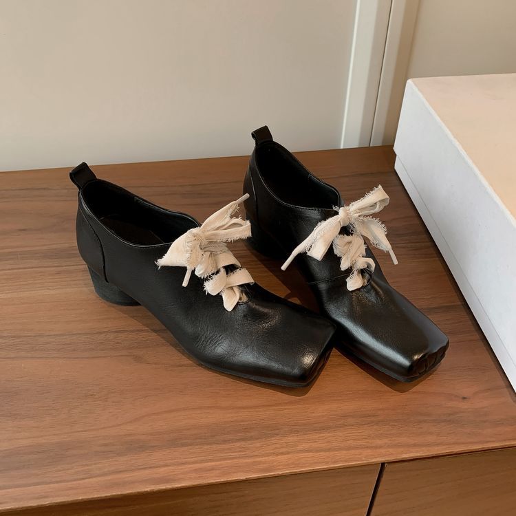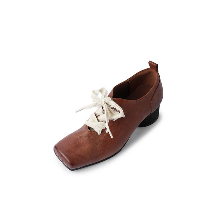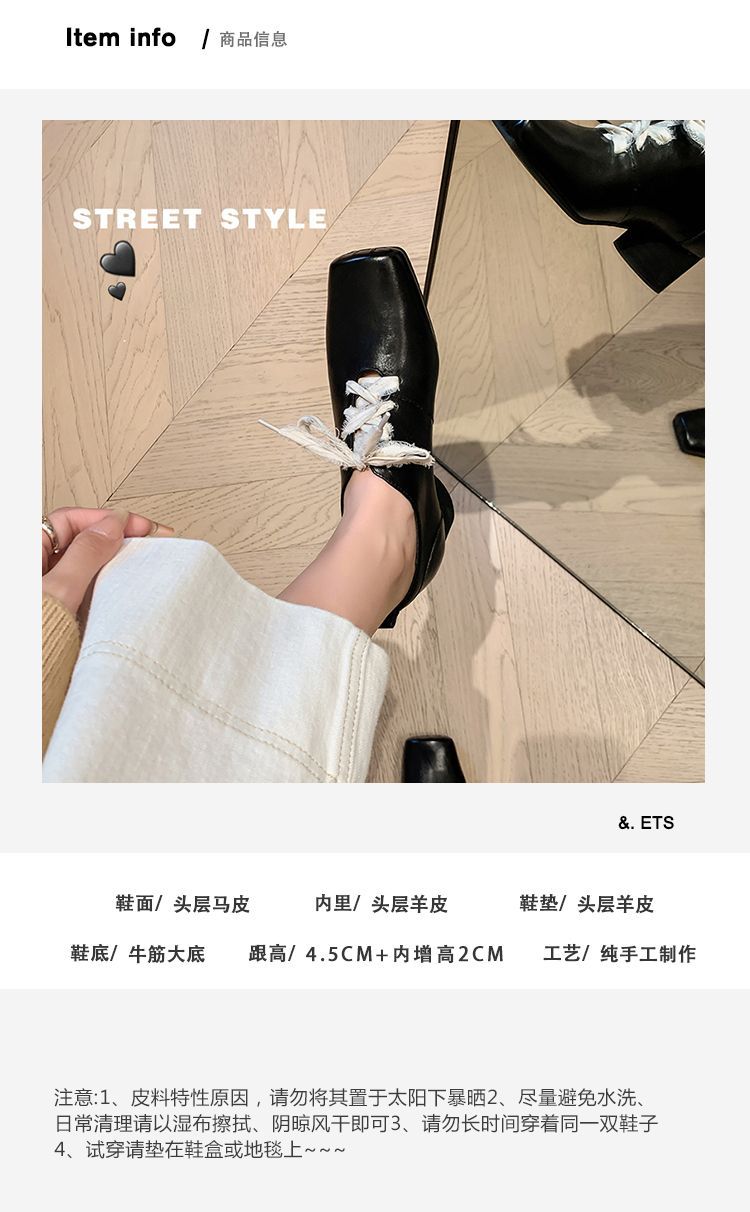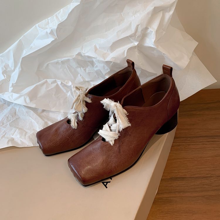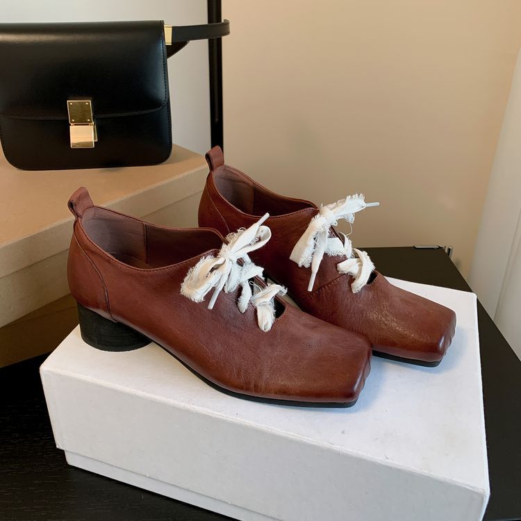 1 층 말 가죽 발레 신발 여성용 레이스 업 빈티지 로우 탑 신발 이른 봄 새 선물 전체 가죽 두꺼운 미드 힐 신발스토어 가기