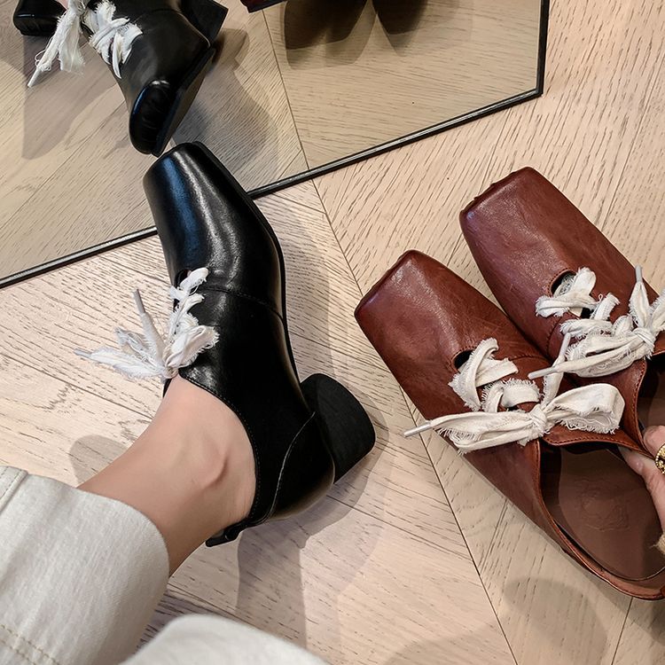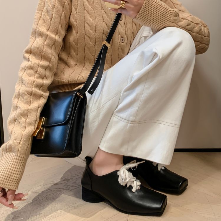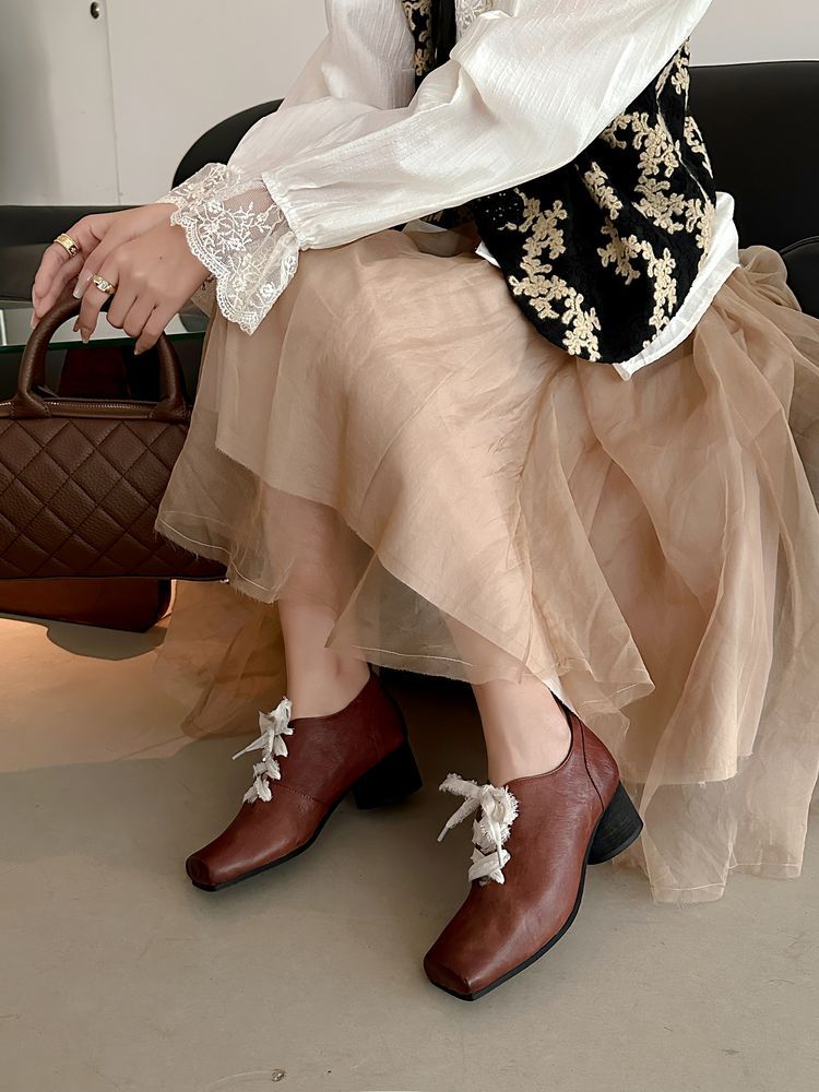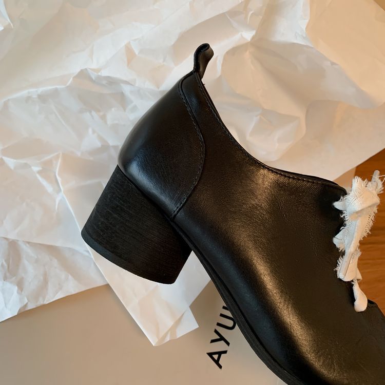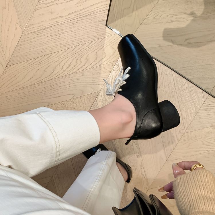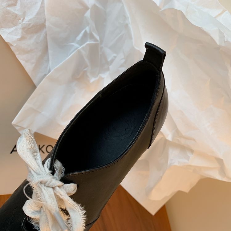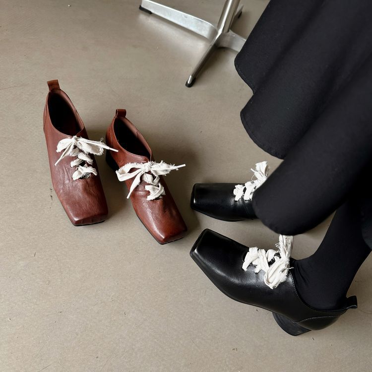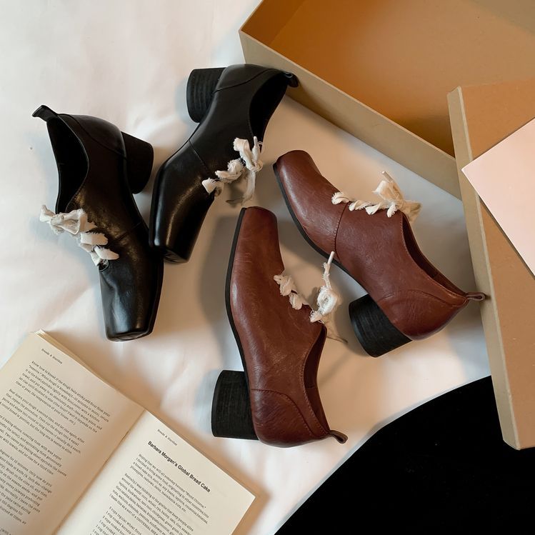1 층 말 가죽 발레 신발 여성용 레이스 업 빈티지 로우 탑 신발 이른 봄 새 선물 전체 가죽 두꺼운 미드 힐 신발스토어 가기