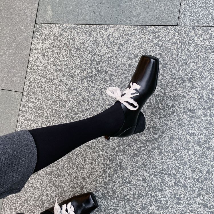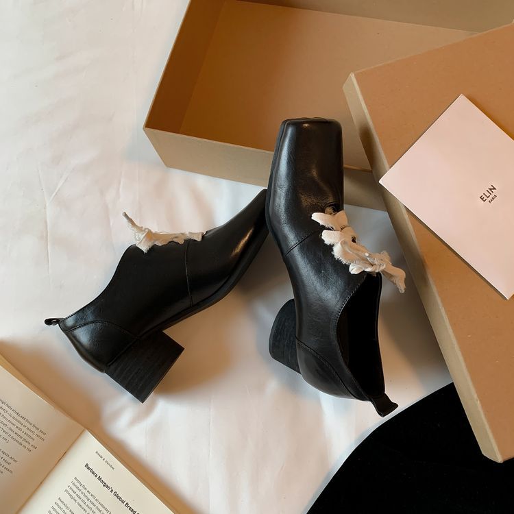 1 층 말 가죽 발레 신발 여성용 레이스 업 빈티지 로우 탑 신발 이른 봄 새 선물 전체 가죽 두꺼운 미드 힐 신발