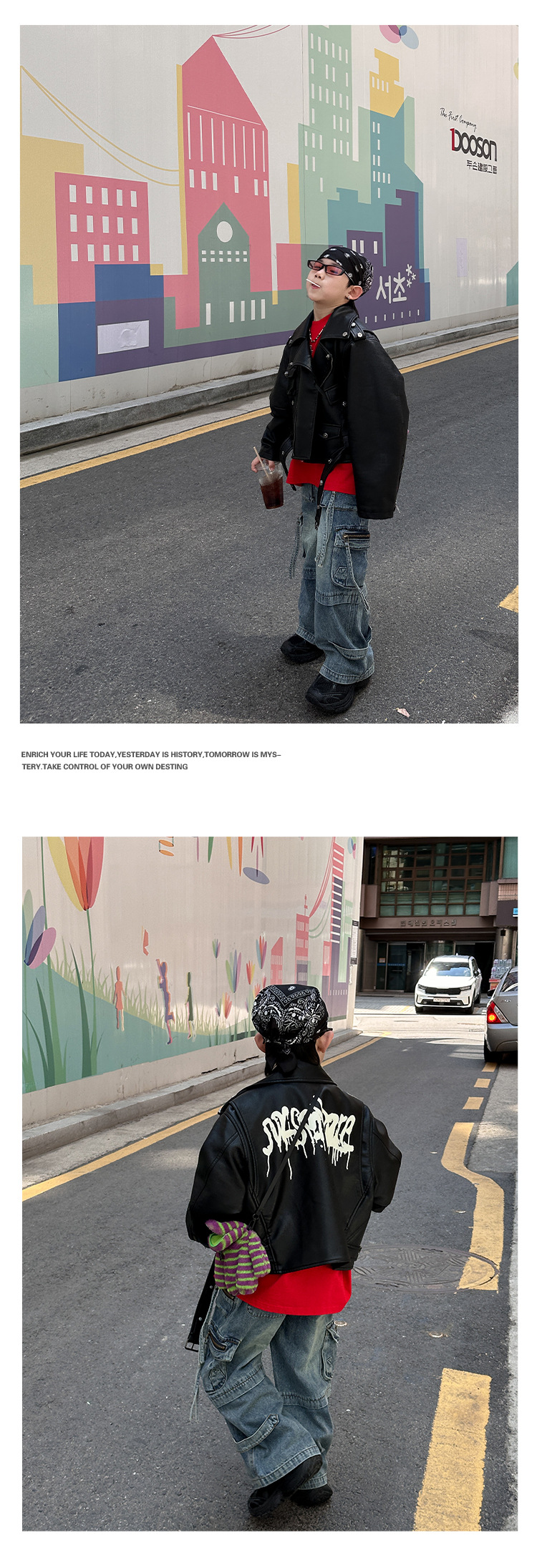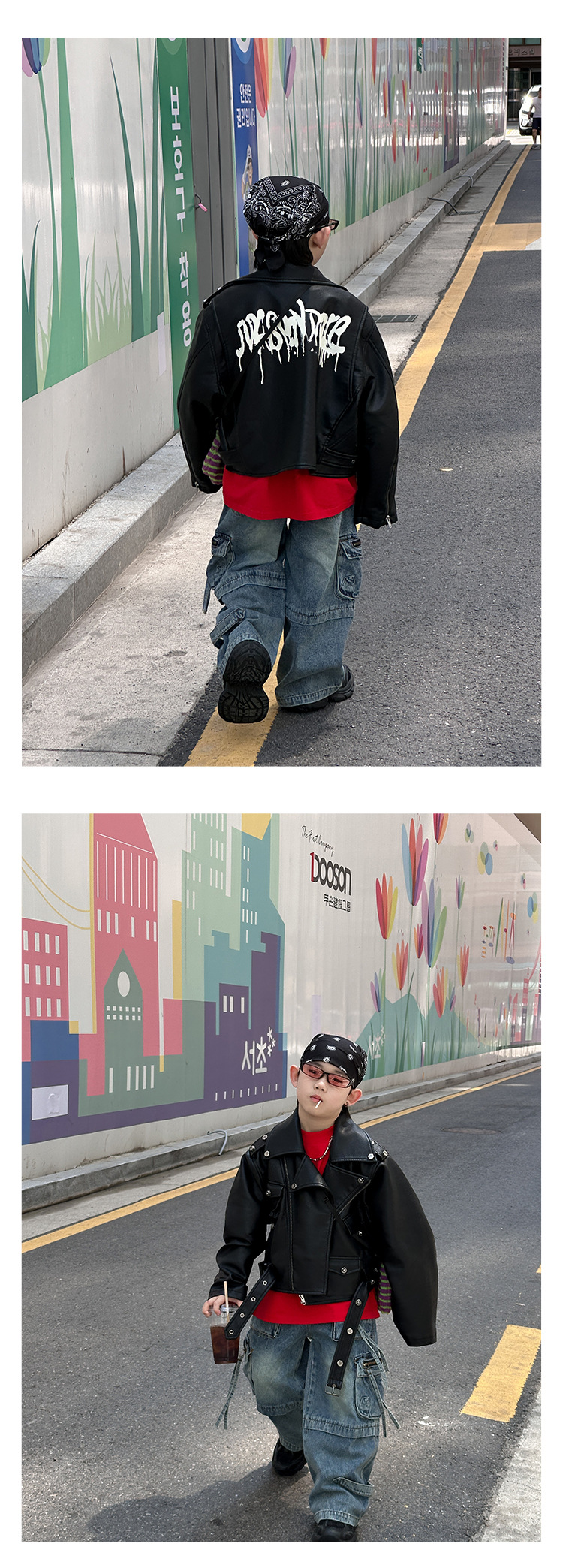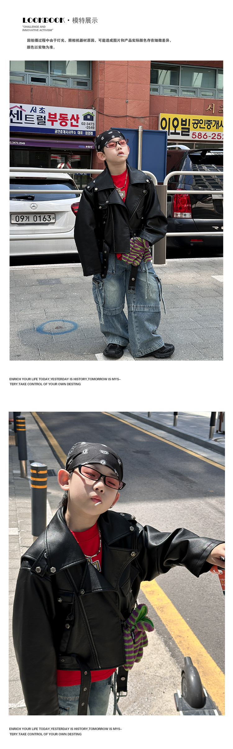 이홍 의류 소년 가죽 의류 어린이 의류 25 년 봄 어린이 리벳 거북이 다시 가짜 투피스 재킷 코트 오토바이 옷