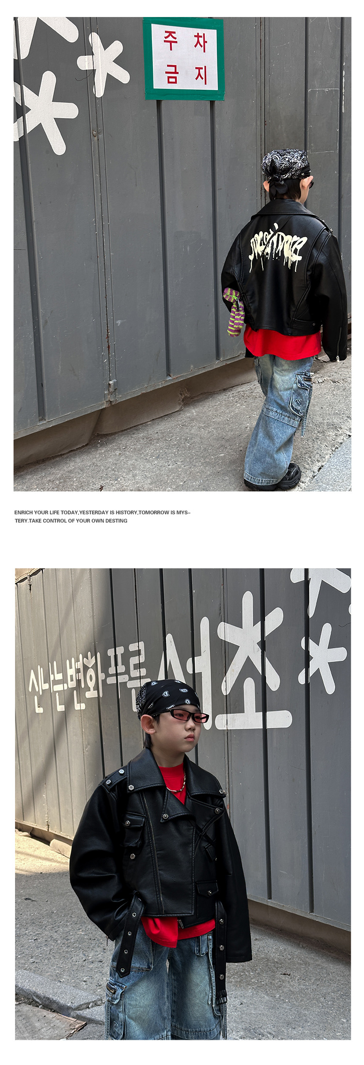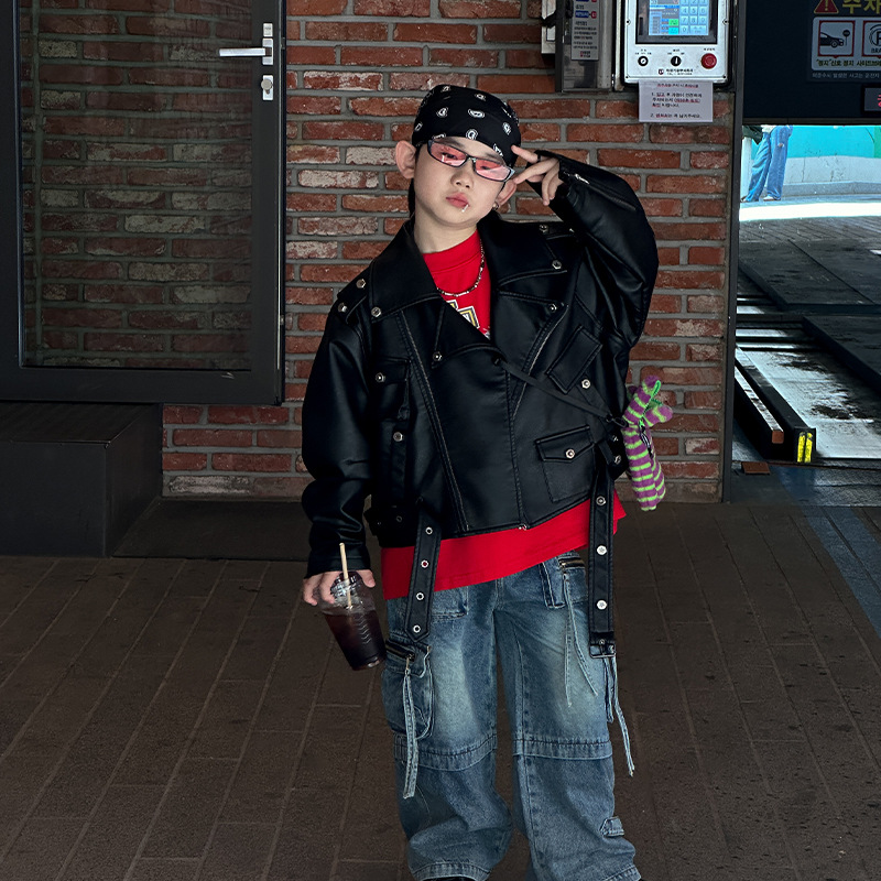 이홍 의류 소년 가죽 의류 어린이 의류 25 년 봄 어린이 리벳 거북이 다시 가짜 투피스 재킷 코트 오토바이 옷스토어 가기