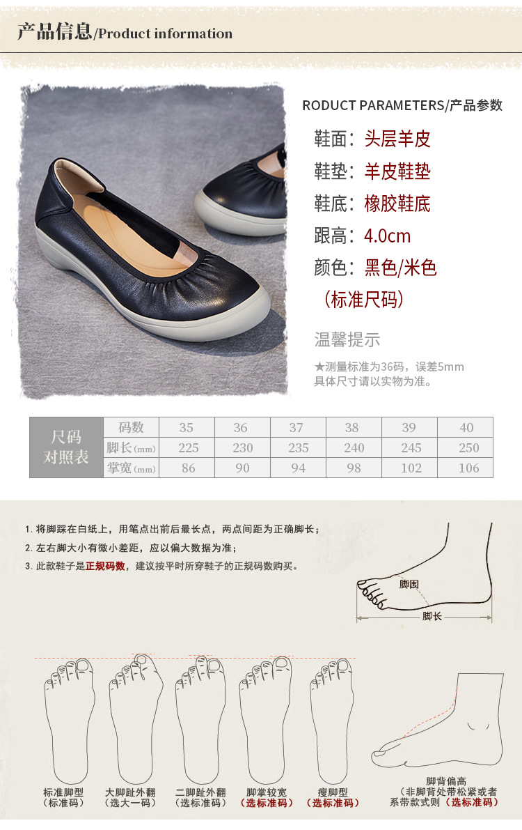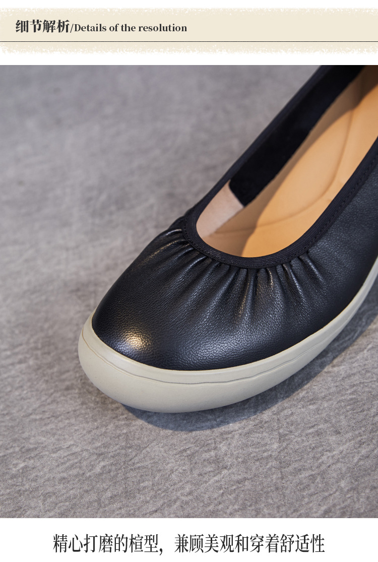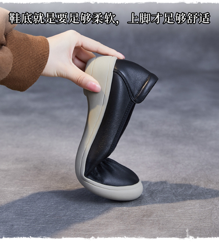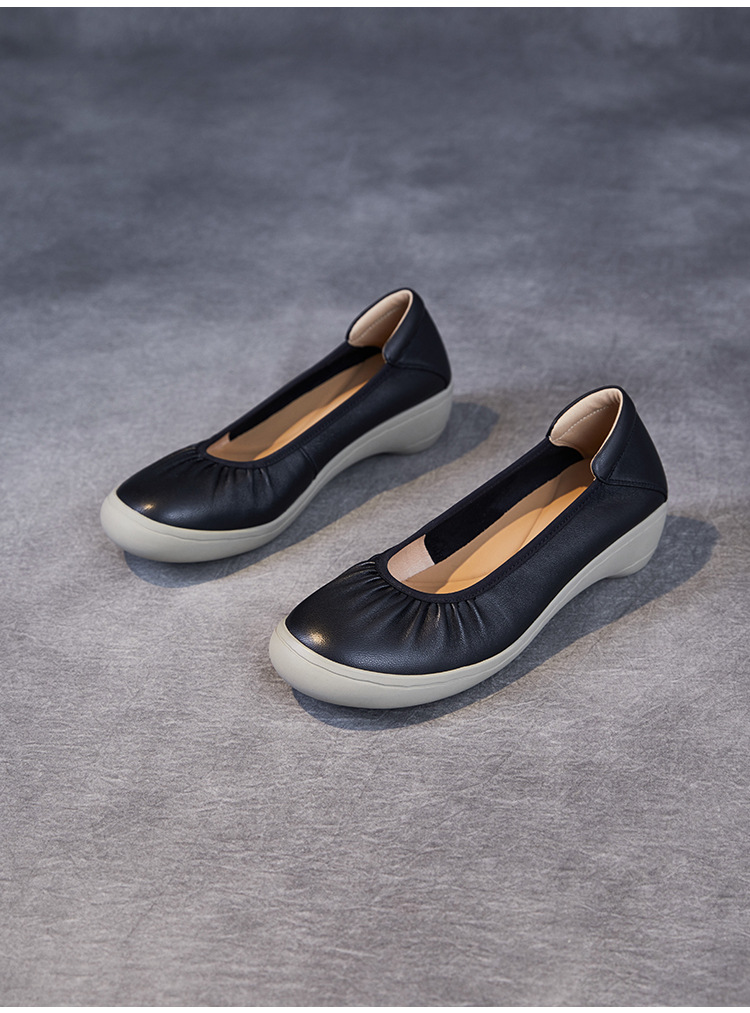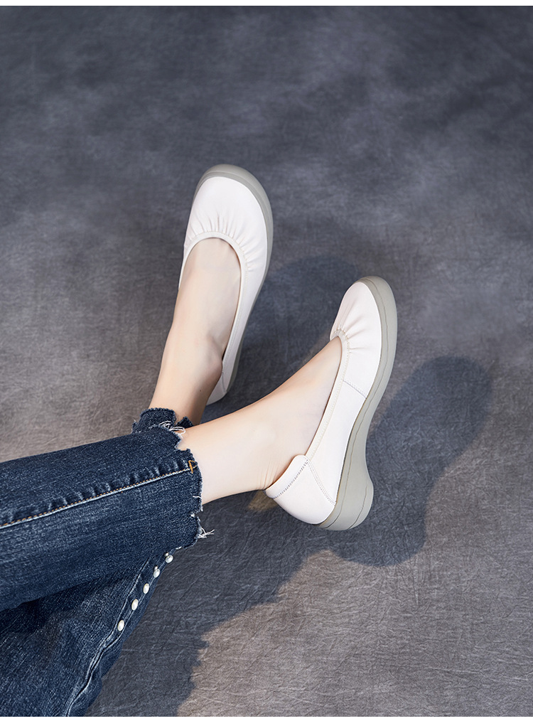 미국 천연 컬러 가죽 신발 여성의 2025 봄 새로운 얕은 입 밀크 신발 라운드 토 웨지 힐 슬립 온 마더 슈즈스토어 가기