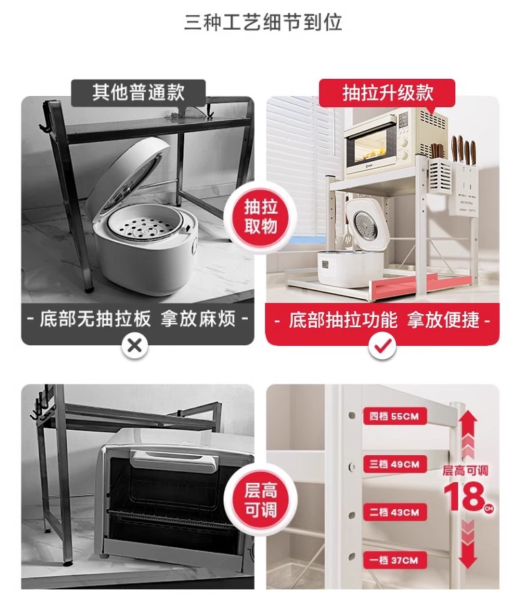 슬라이딩형 밥솥 수납 선반 주방 조리대 다기능 오븐 선반 에어프라이어 전자레인지 수납 선반