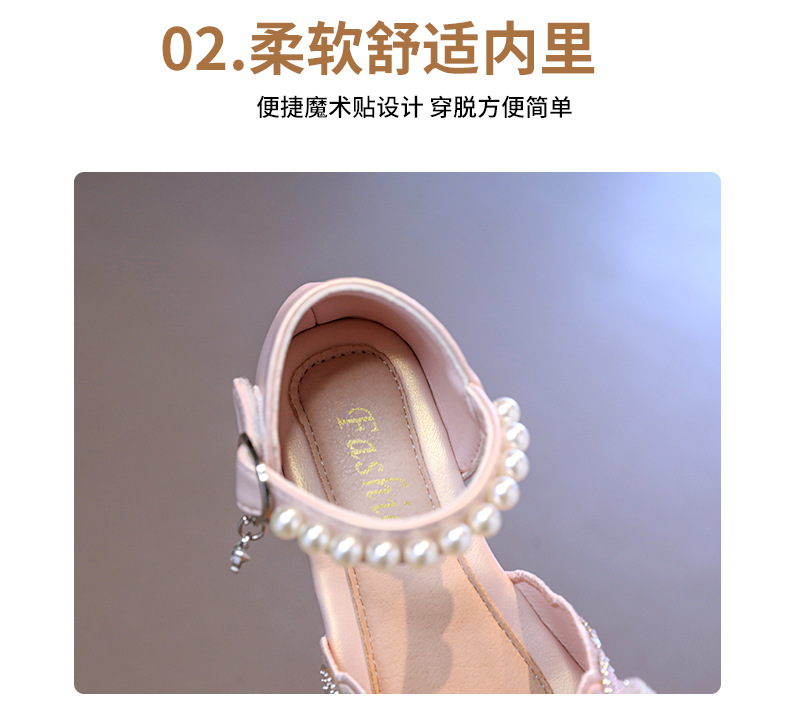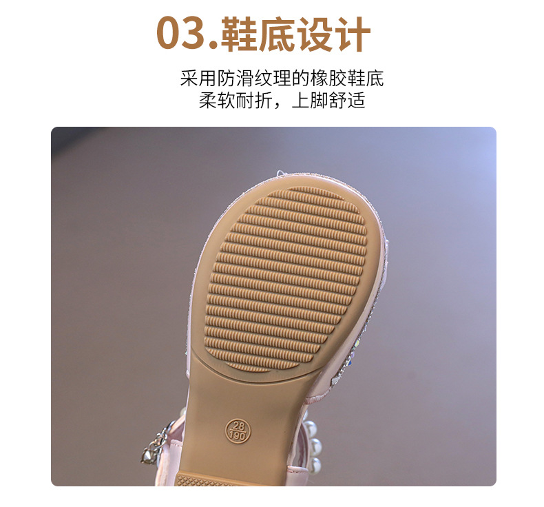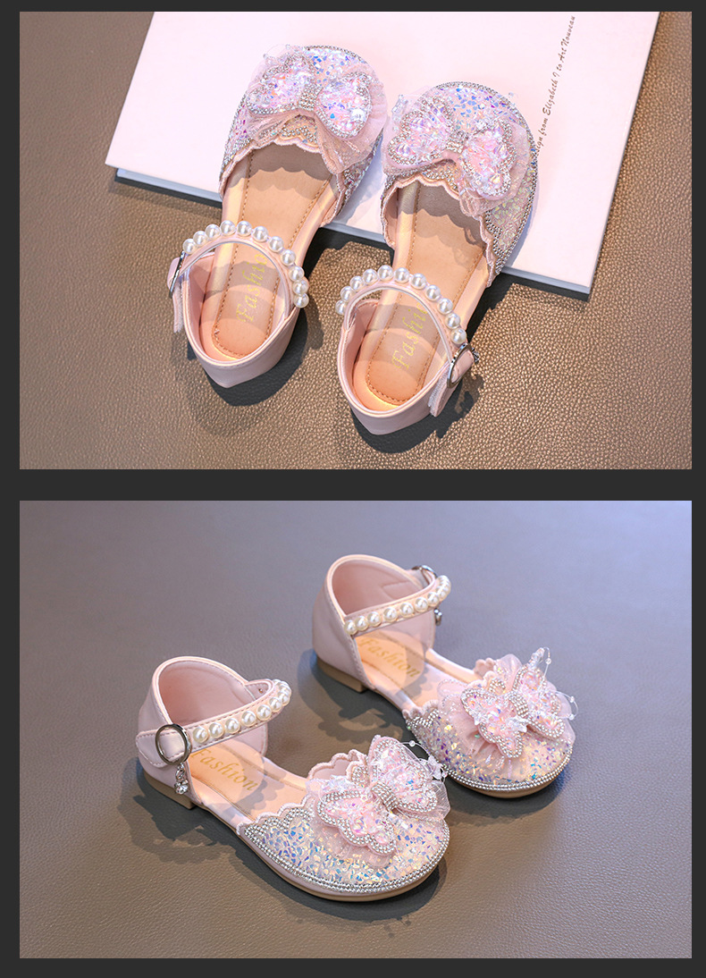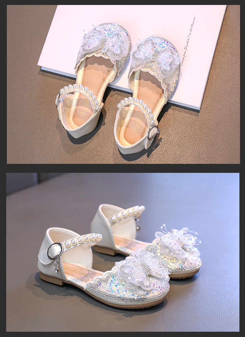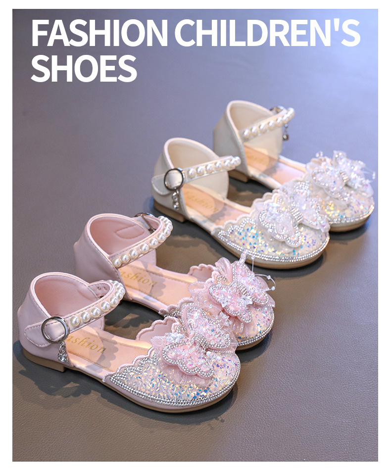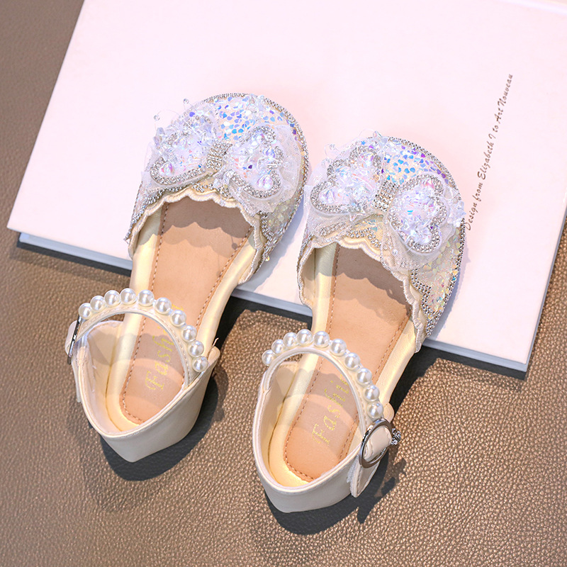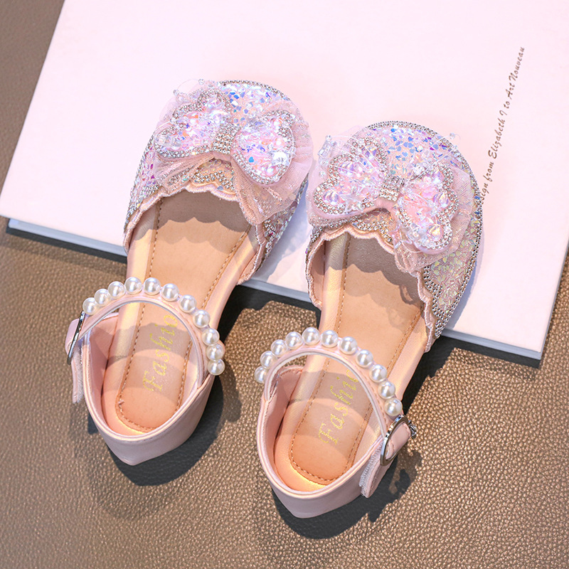 소녀 Baotou 샌들 여름 2025 새로운 작은 소녀 크리스탈 신발 나비 진주 공주 신발 공연 댄스 신발