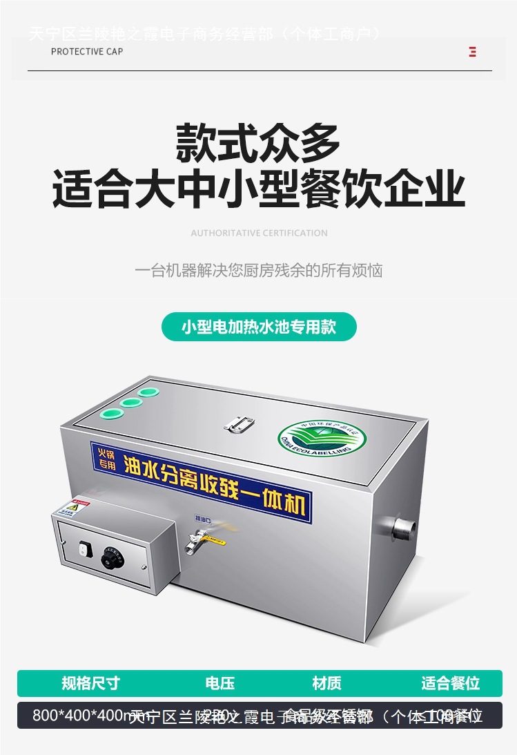 냄비 가게 오일-물 분리기 주방 케이터링 상업 필터 오일 트랩 전기 난방 습식 및 건조한 잔여 통합 기계