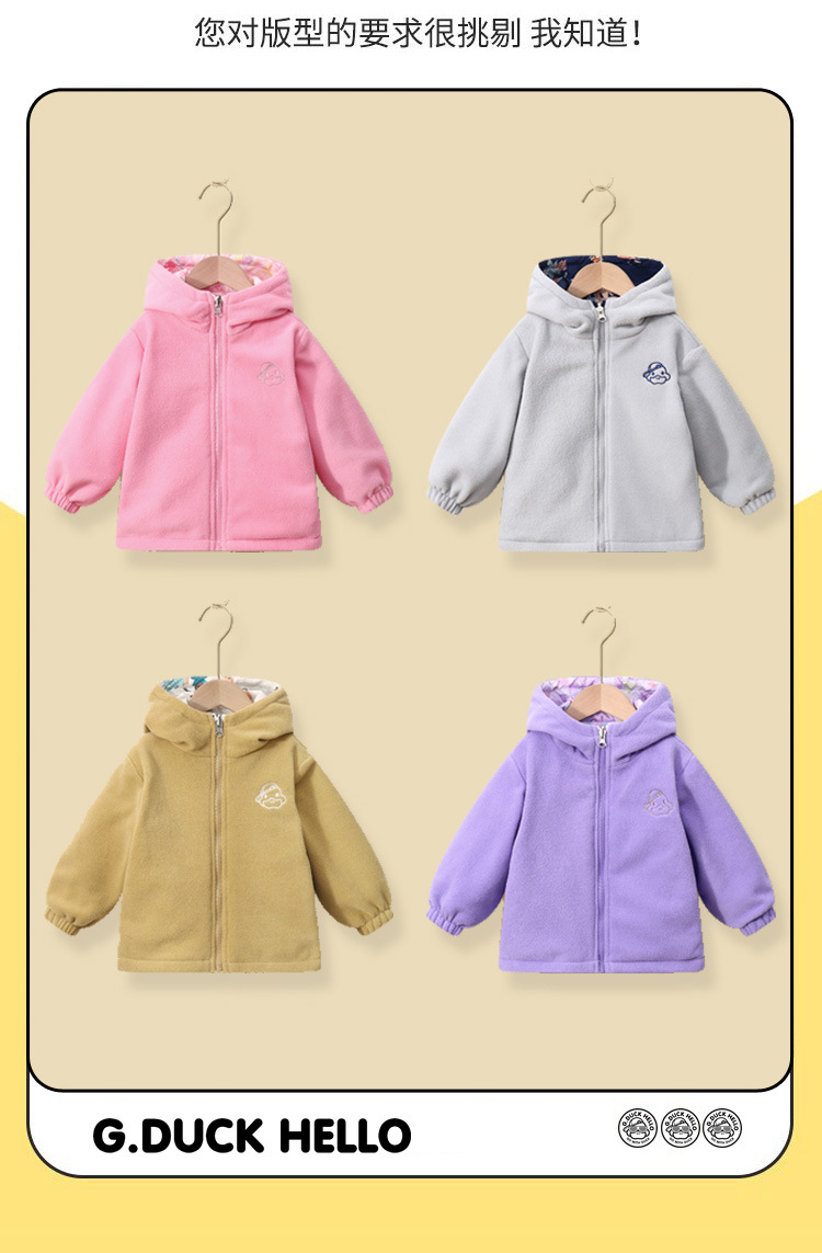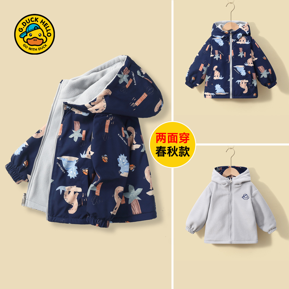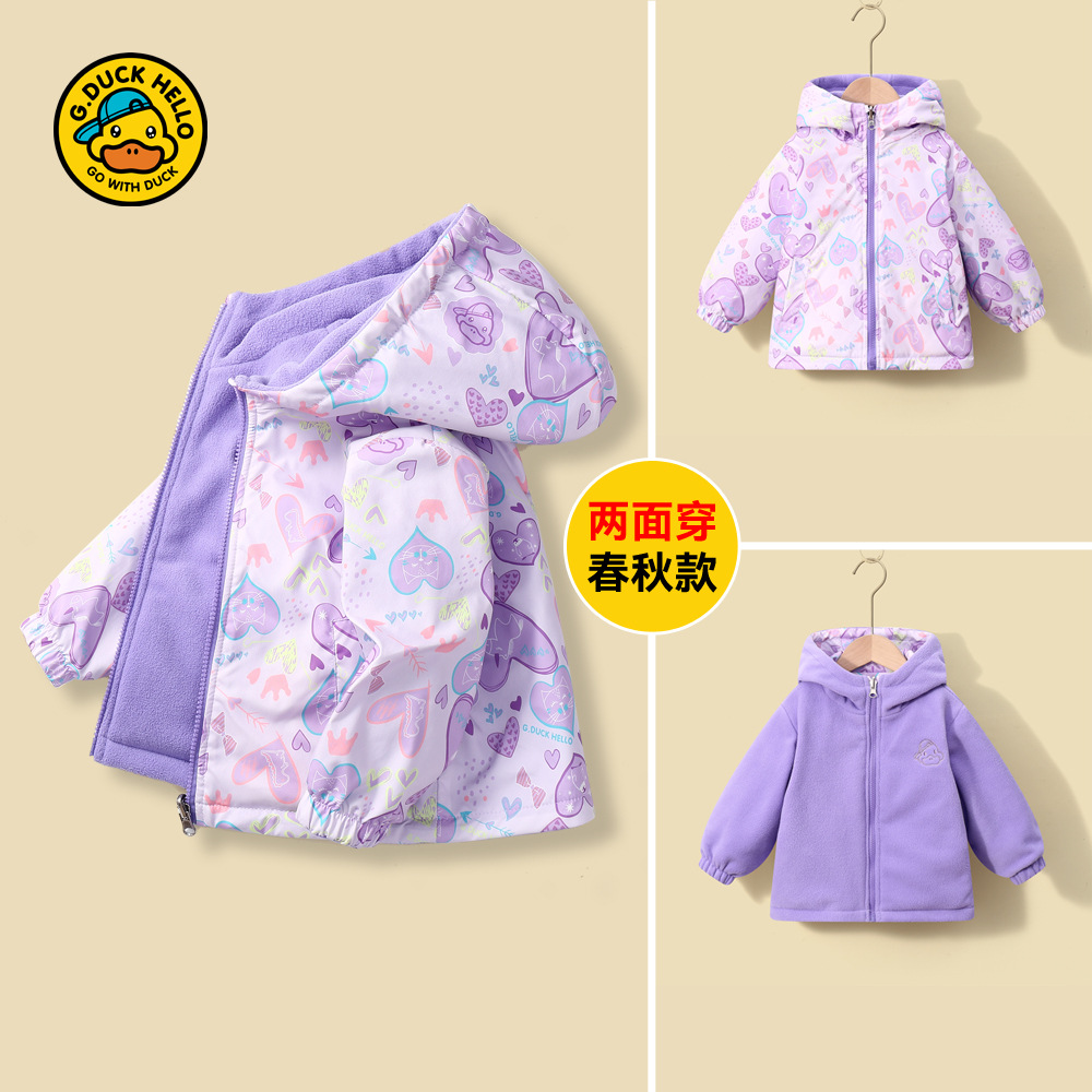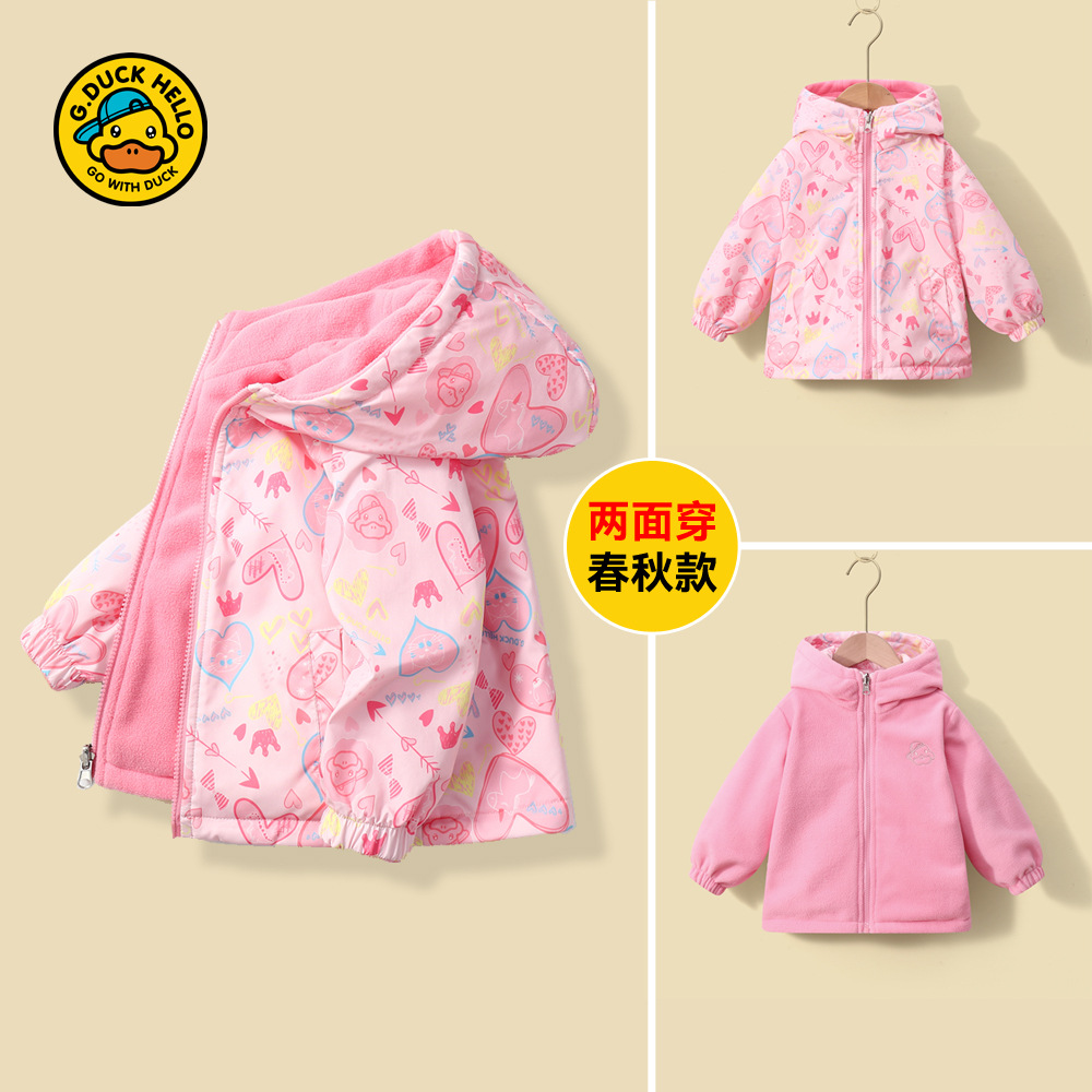 작은 노란 오리 어린이 봄 코트 양면 착용 2025 양털 가을 겨울 남자의 아기와 어린 소녀 양털 지퍼 셔츠스토어 가기