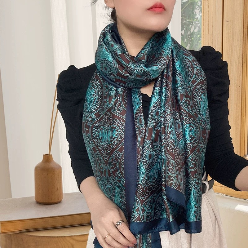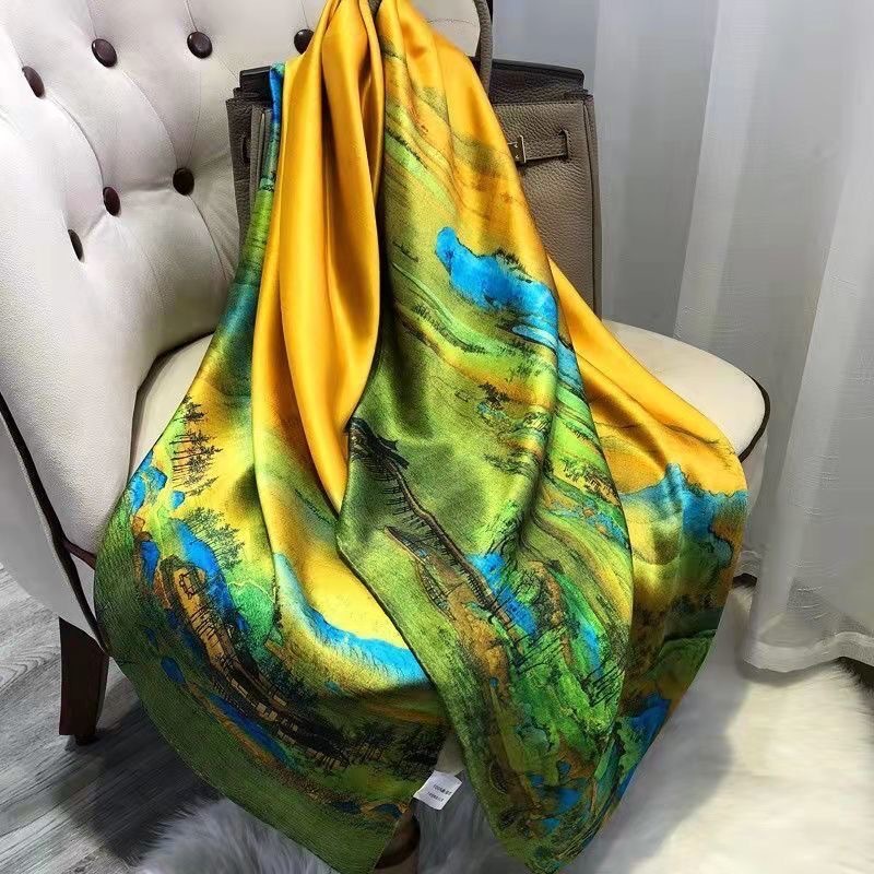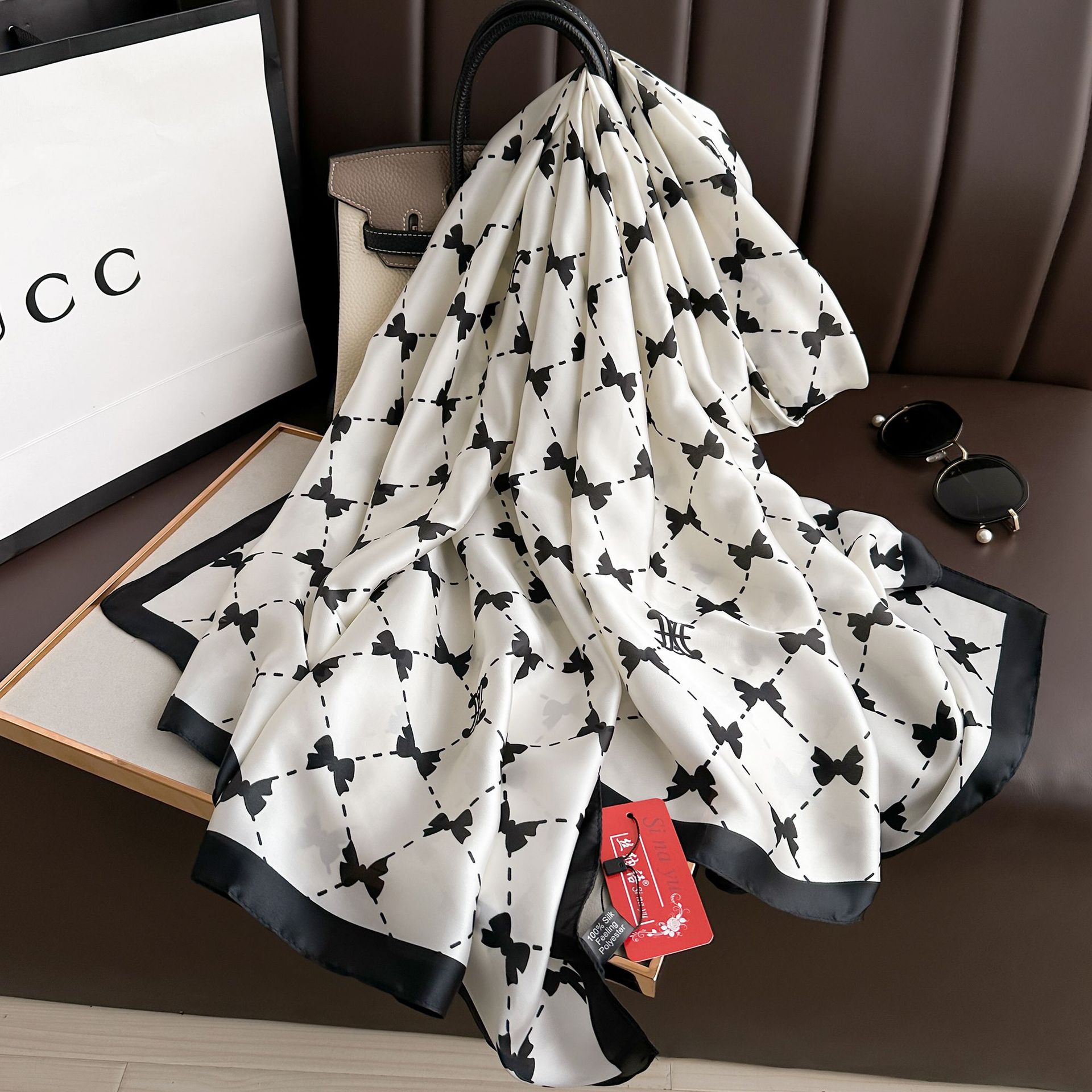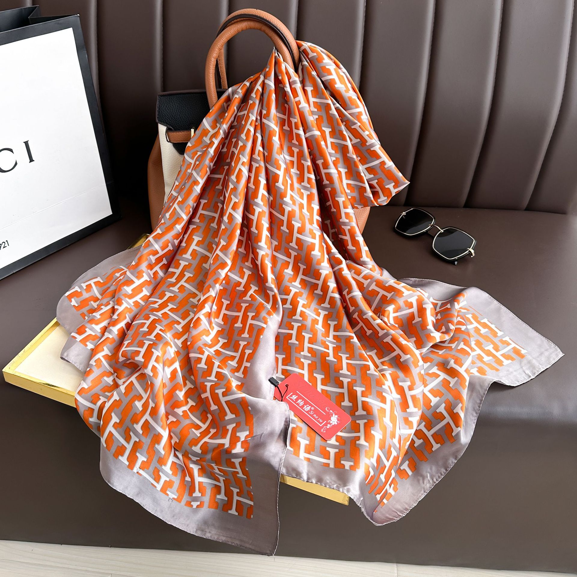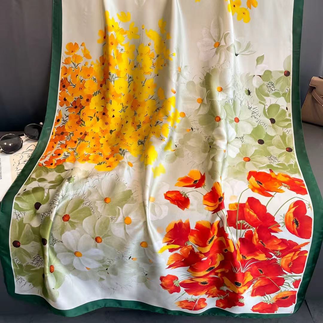 25년 실크 스카프, 고급 모조 실크 스카프, 실크 스카프, 숄, 거즈 스카프, 자외선 차단제, 브로케이드 스카프