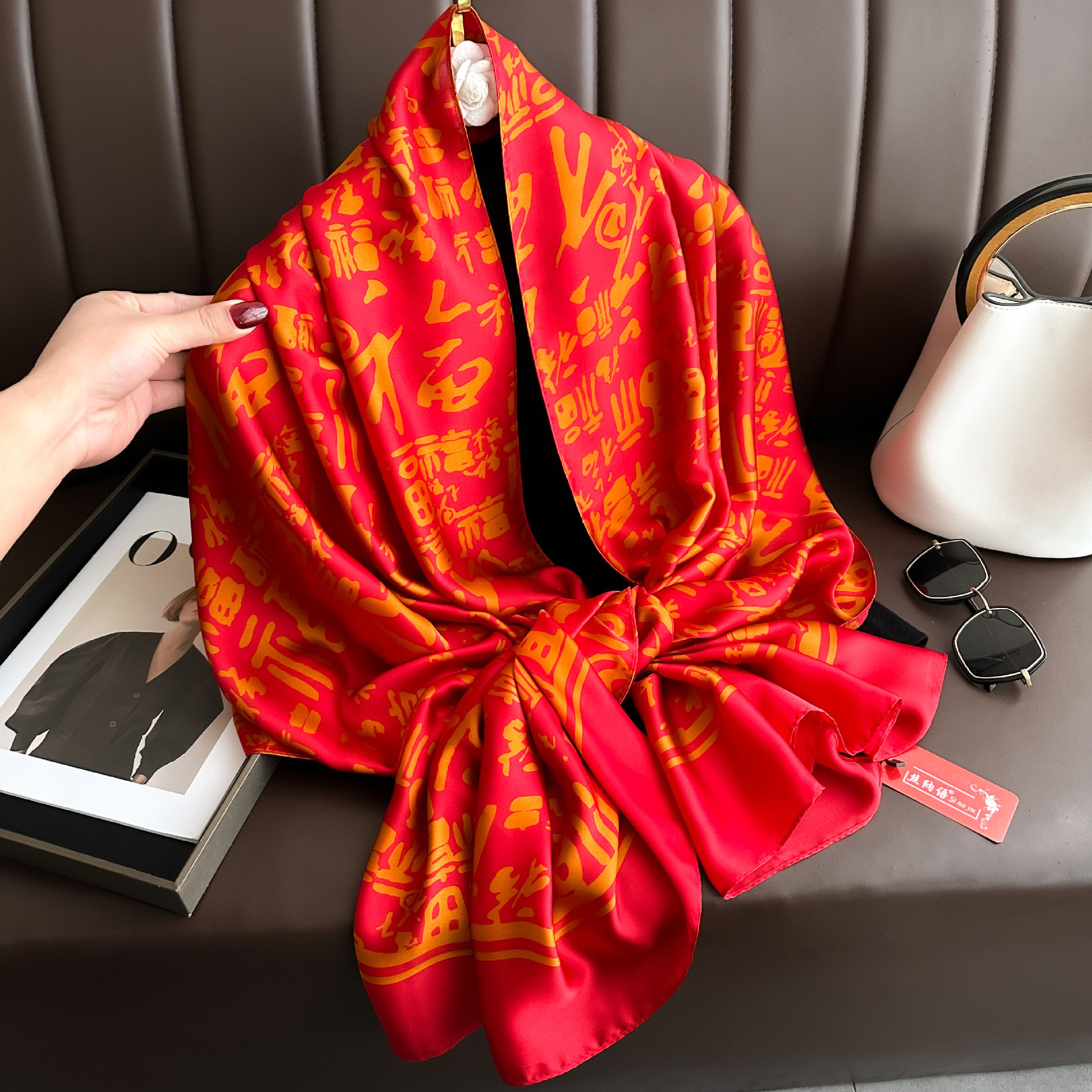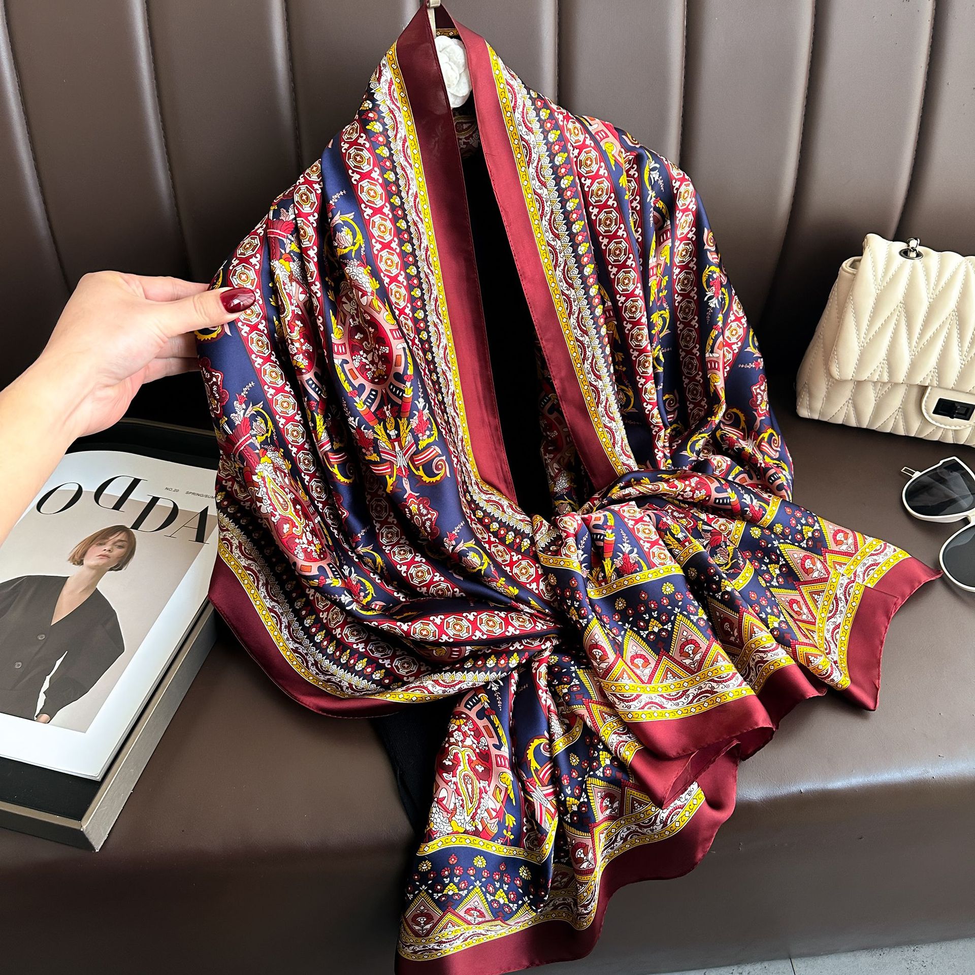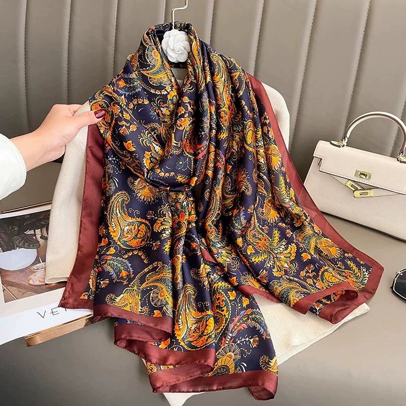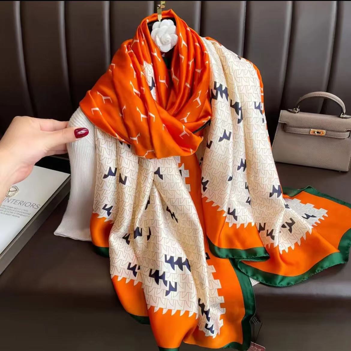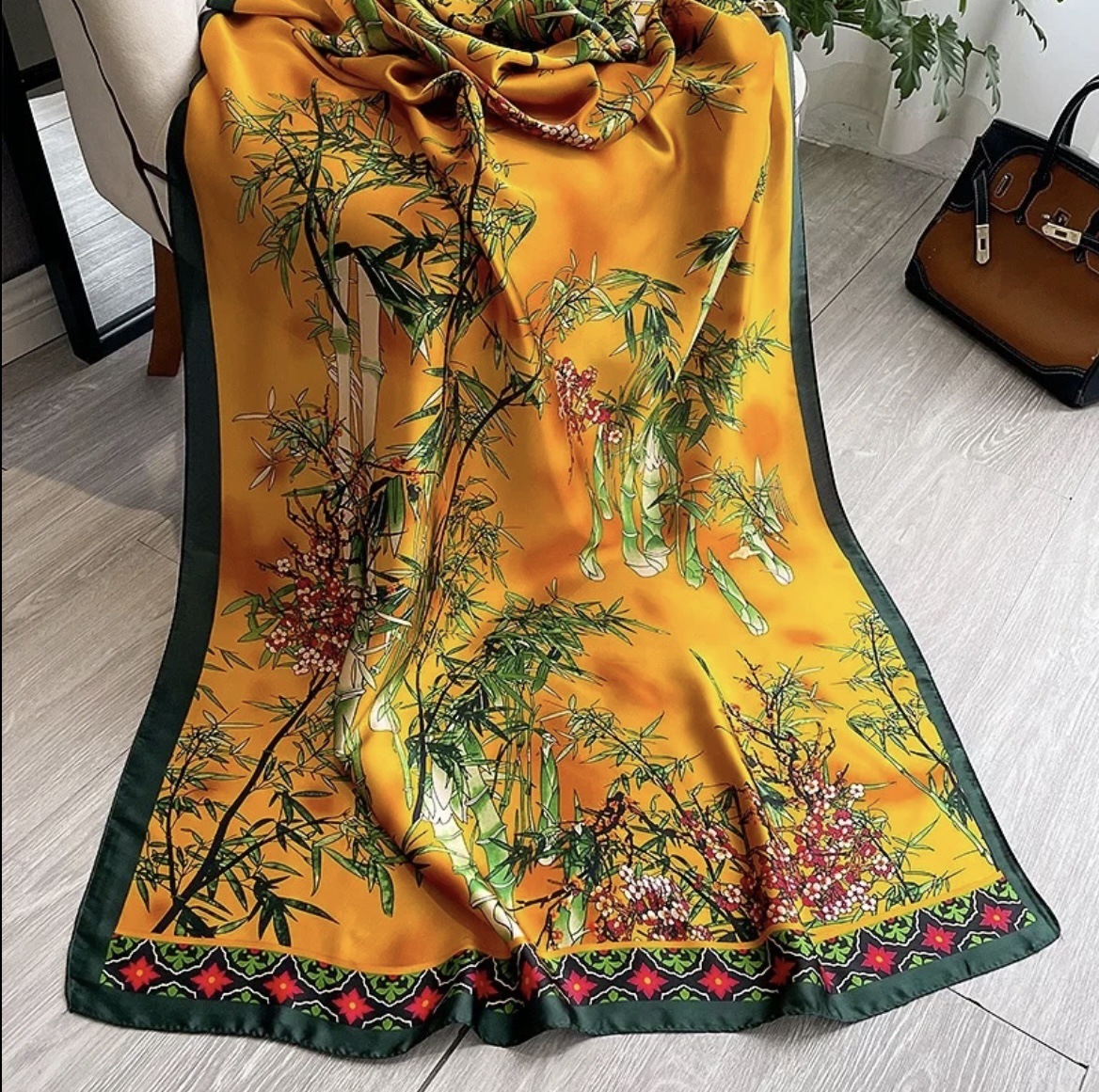 25년 실크 스카프, 고급 모조 실크 스카프, 실크 스카프, 숄, 거즈 스카프, 자외선 차단제, 브로케이드 스카프