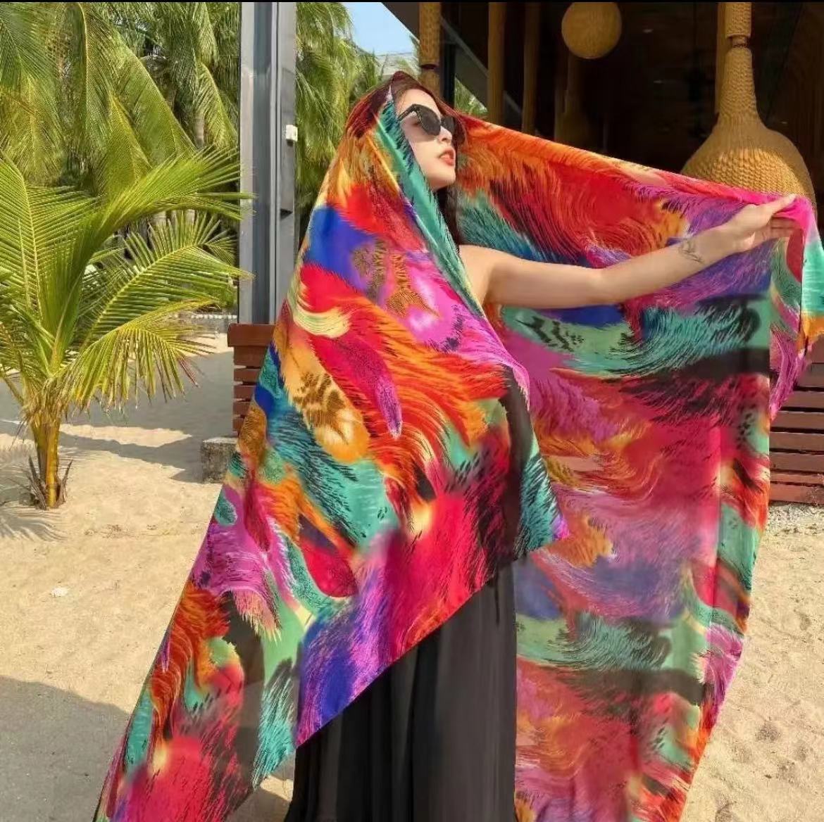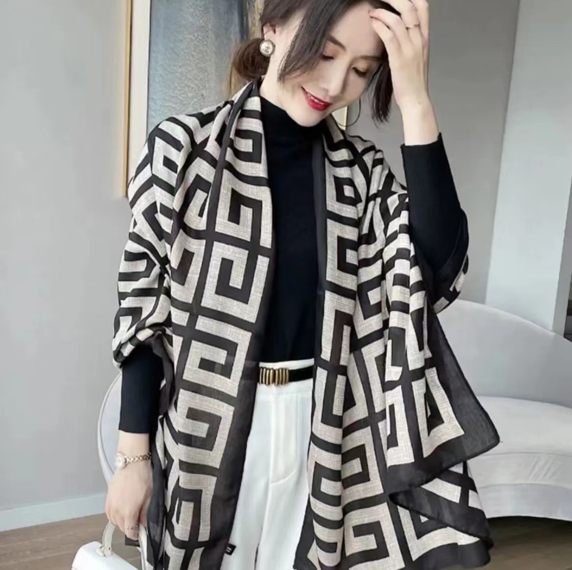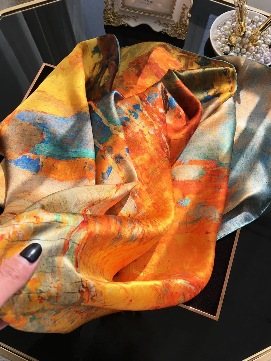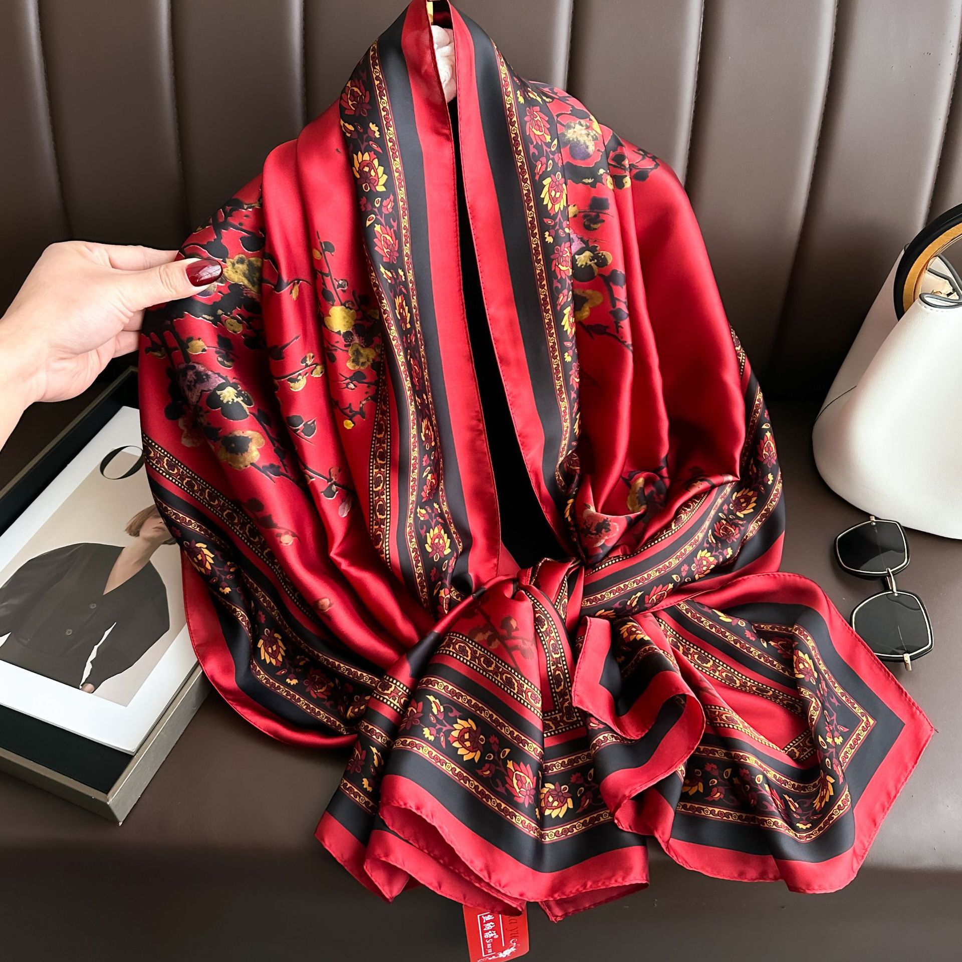 25년 실크 스카프, 고급 모조 실크 스카프, 실크 스카프, 숄, 거즈 스카프, 자외선 차단제, 브로케이드 스카프