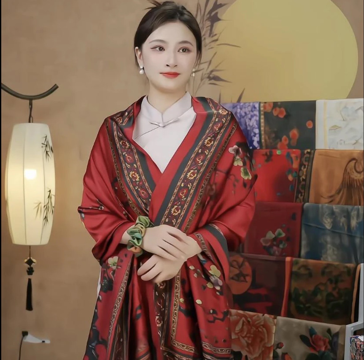 25년 실크 스카프, 고급 모조 실크 스카프, 실크 스카프, 숄, 거즈 스카프, 자외선 차단제, 브로케이드 스카프스토어 가기