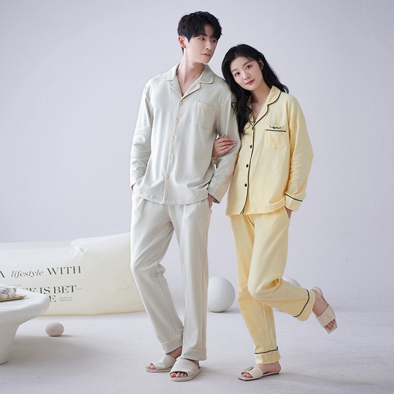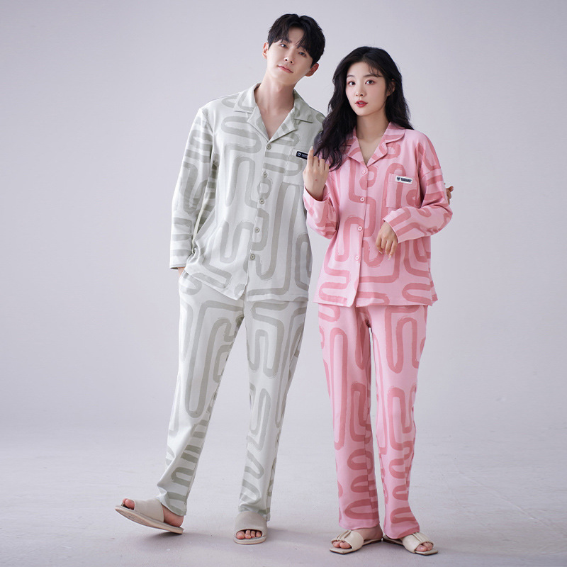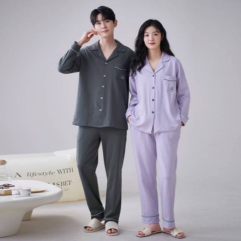 [슈퍼 소프트] 클래스 A 세균성 커플 파자마 여성의 봄과 가을 면 긴 소매 남성용 면 홈 웨어스토어 가기