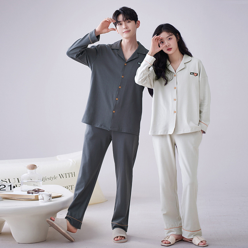 [슈퍼 소프트] 클래스 A 세균성 커플 파자마 여성의 봄과 가을 면 긴 소매 남성용 면 홈 웨어