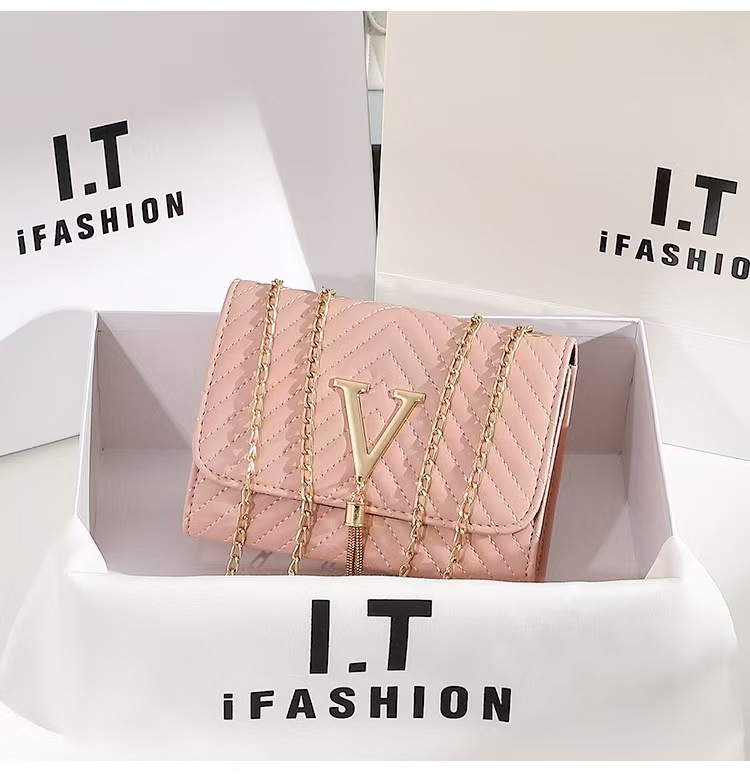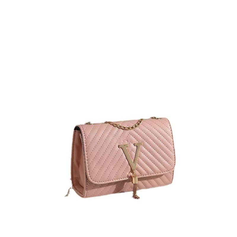 트렌디 한 여성 가방 새로운 패션 줄무늬 어깨 가방 V 자형 술 장식 크로스 바디 백스토어 가기