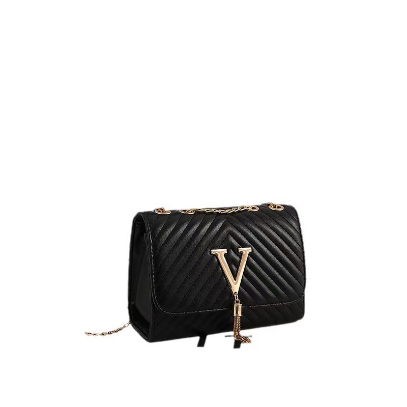 트렌디 한 여성 가방 새로운 패션 줄무늬 어깨 가방 V 자형 술 장식 크로스 바디 백