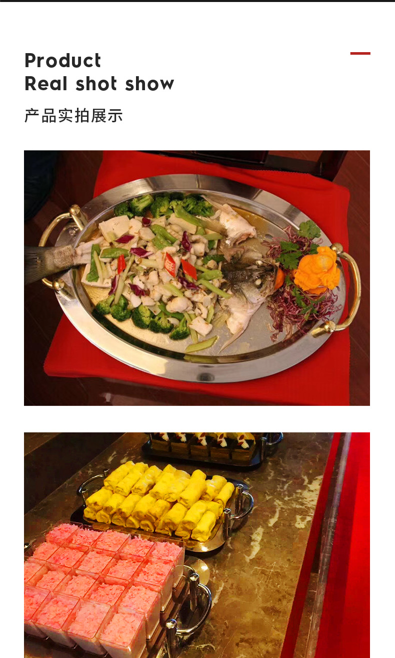 공장 도매 스테인레스 스틸 미러 플레이트 더블 이어 골드 도금 미러 플레이트 과일 플레이트 트레이 셀프 서비스 서양 식품 트레이스토어 가기