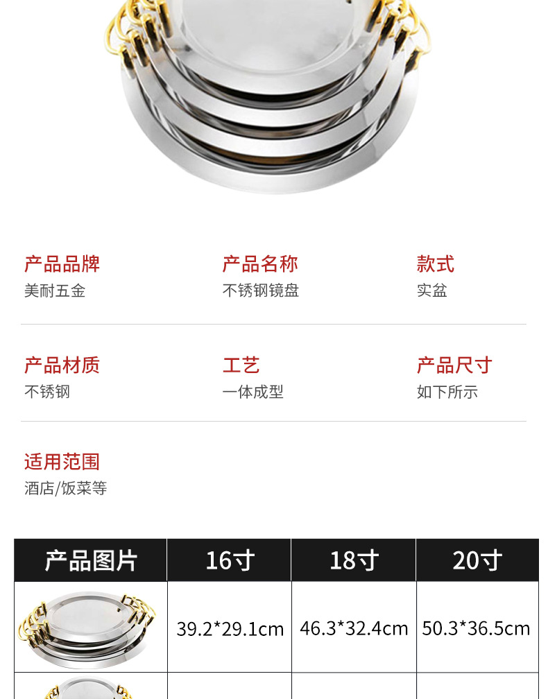 공장 도매 스테인레스 스틸 미러 플레이트 더블 이어 골드 도금 미러 플레이트 과일 플레이트 트레이 셀프 서비스 서양 식품 트레이