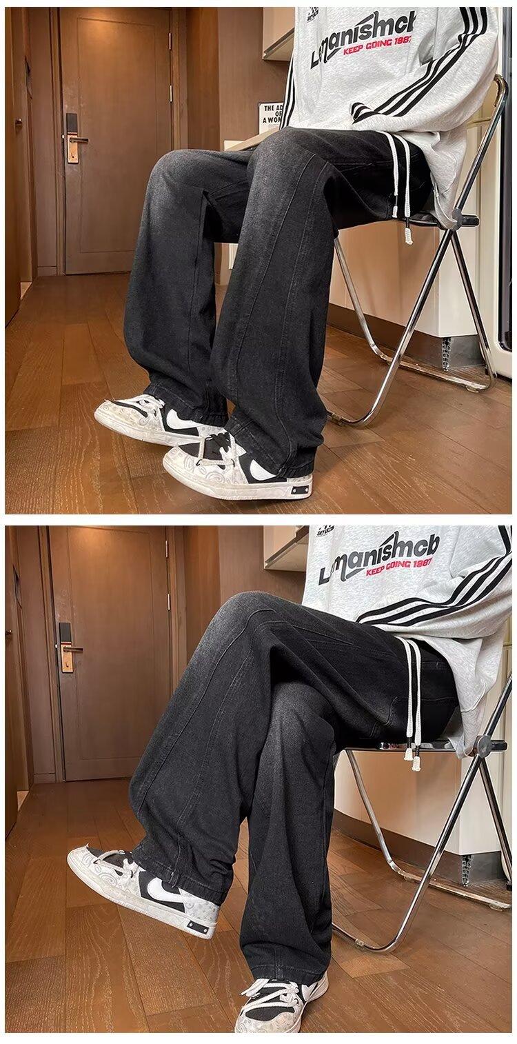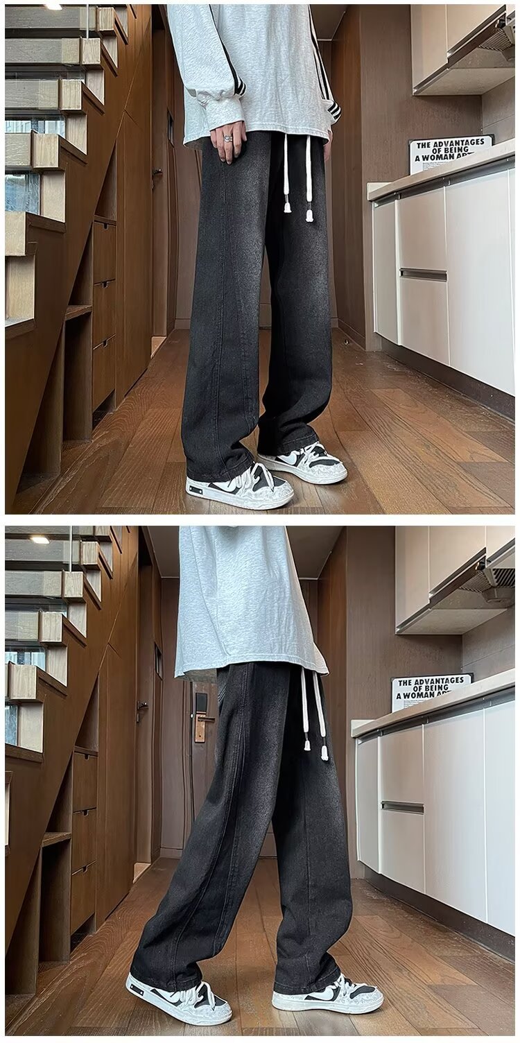 아메리칸 스타일 레트로 세탁 청바지 남성용 새 봄과 가을 하이 엔드 센스 남성용 패션 브랜드 스트레이트 바지 남성용 바지스토어 가기