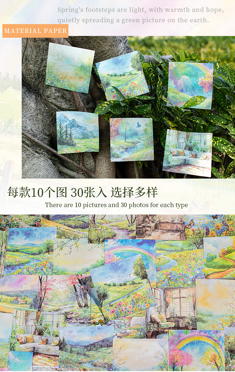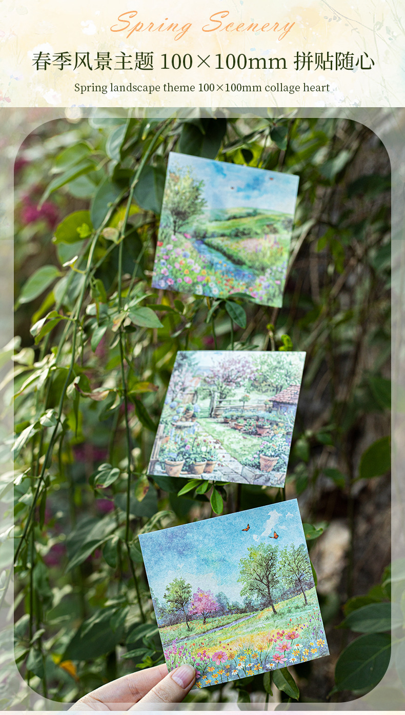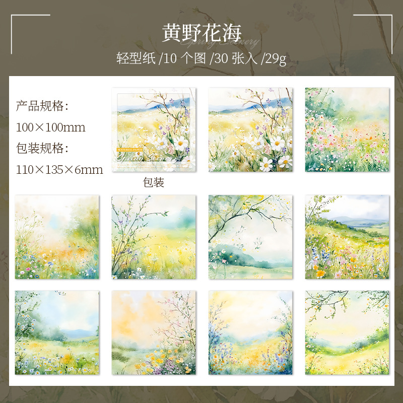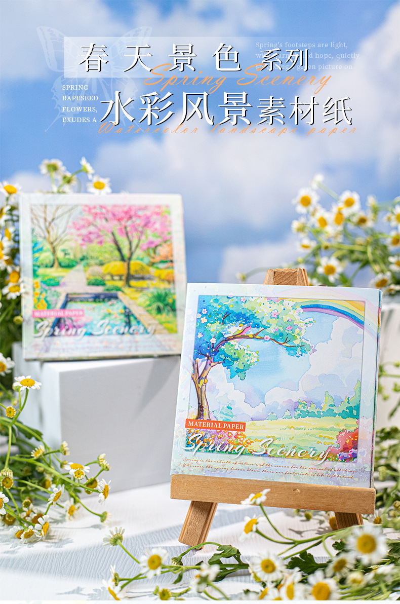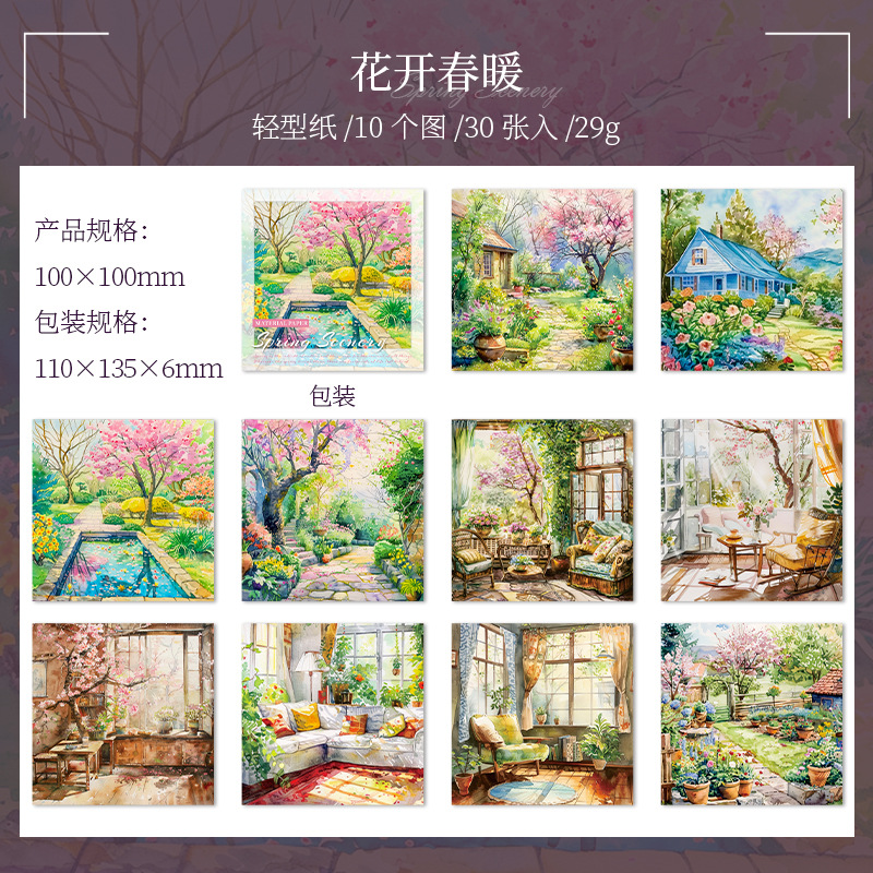 6 옵션으로 아름다운 날 빛 복고풍 소재 종이 봄 풍경 시리즈 수채화 풍경 테마 30스토어 가기