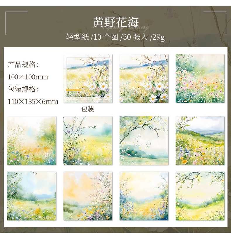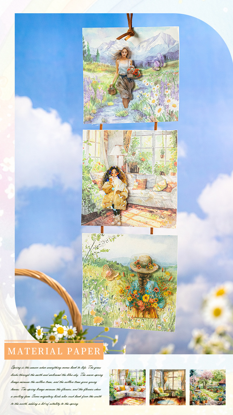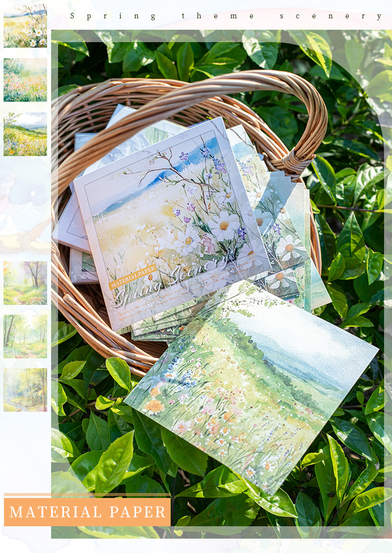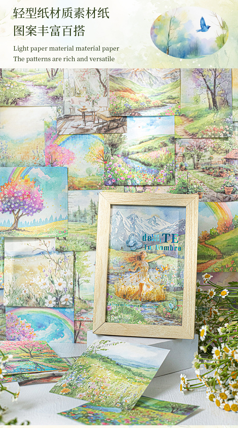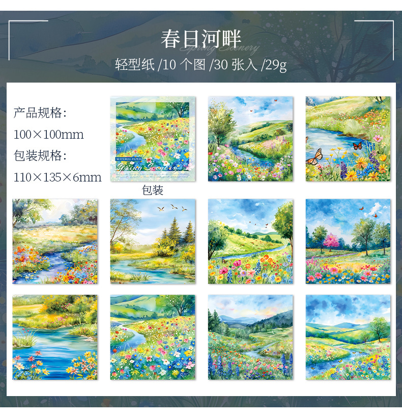 6 옵션으로 아름다운 날 빛 복고풍 소재 종이 봄 풍경 시리즈 수채화 풍경 테마 30스토어 가기