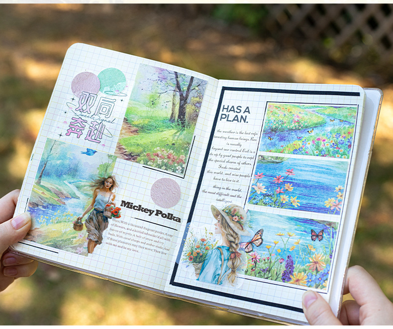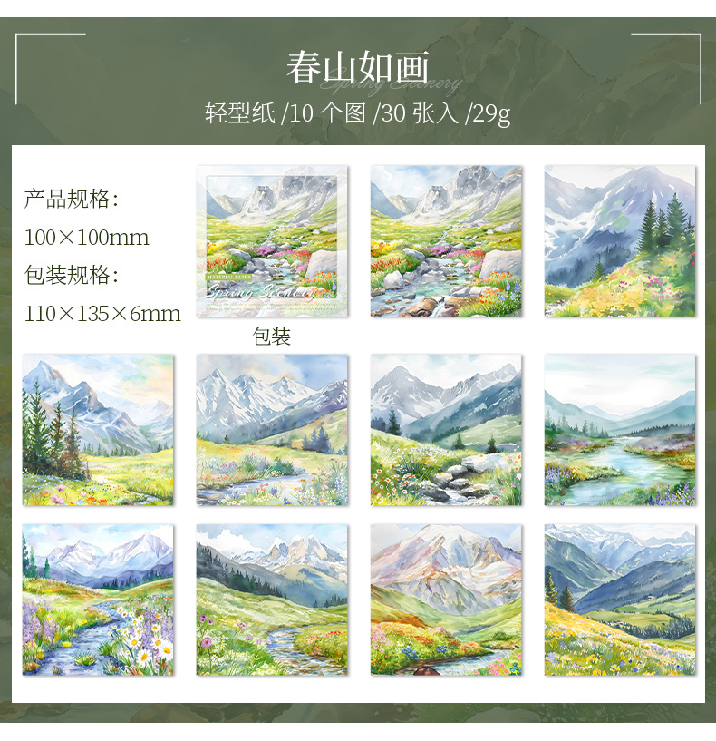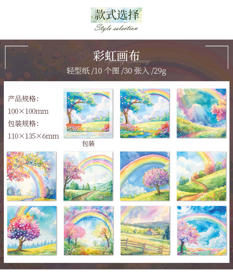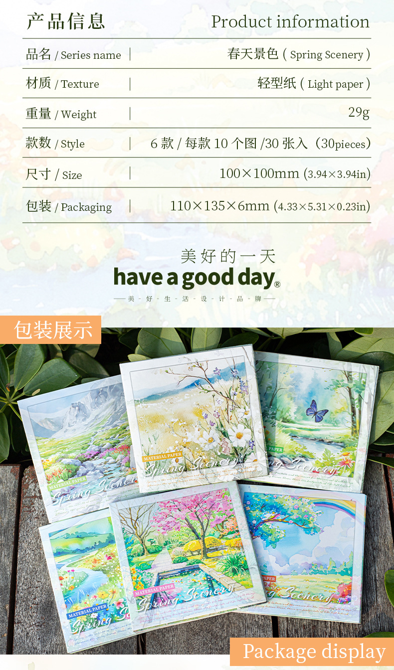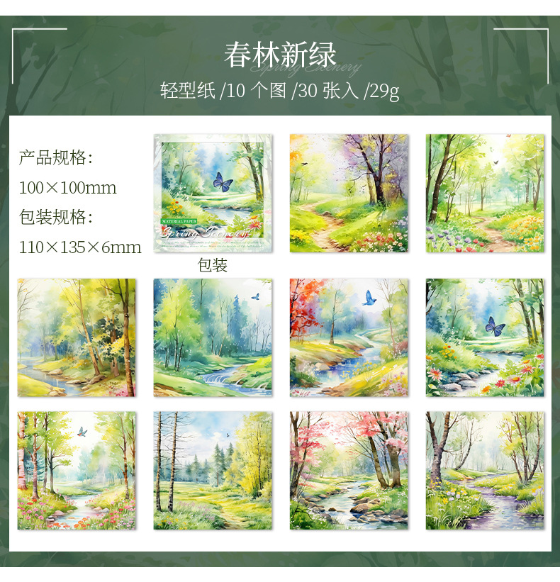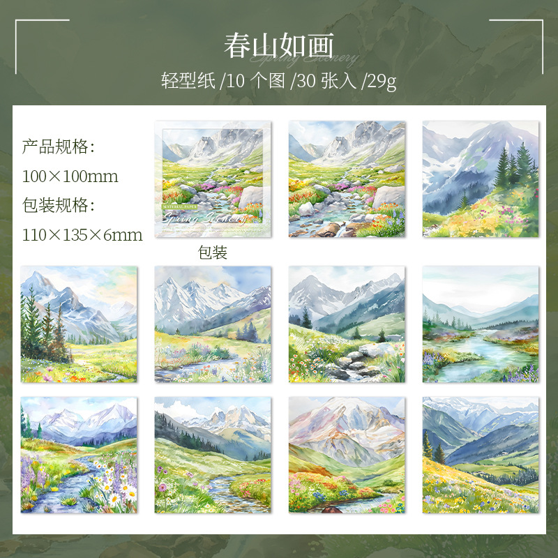 6 옵션으로 아름다운 날 빛 복고풍 소재 종이 봄 풍경 시리즈 수채화 풍경 테마 30스토어 가기