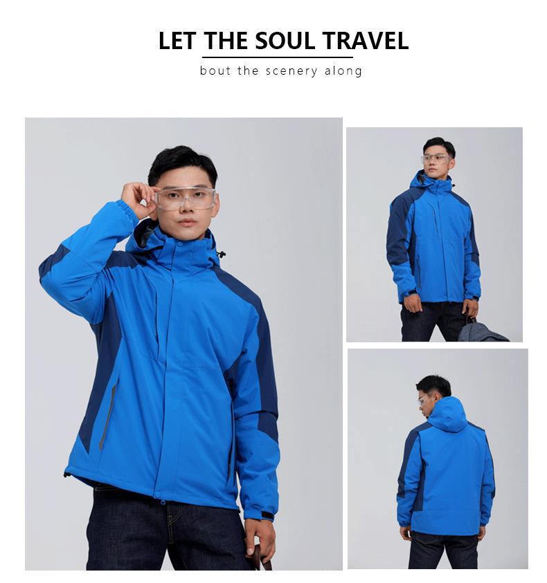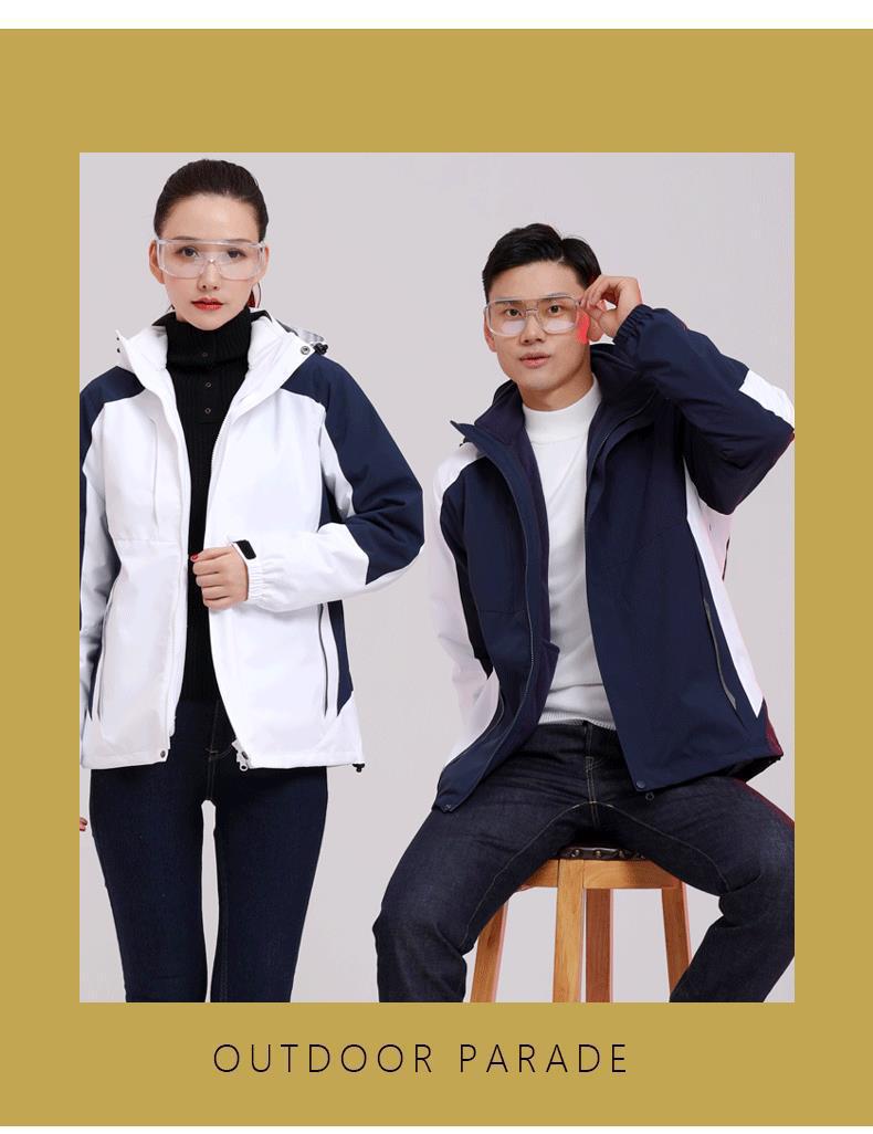 충전 의류 3 대 1 남성과 여성의 가을 및 겨울 재킷 분리형 라이너 야외 방풍 투피스 툴링 로고 인쇄스토어 가기