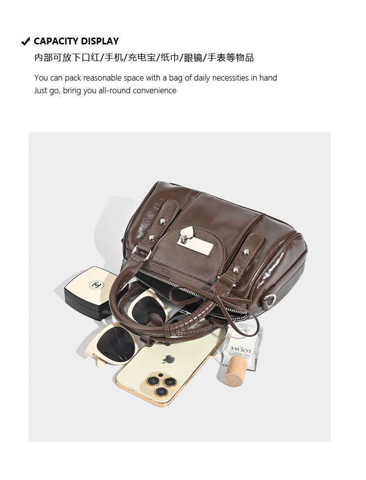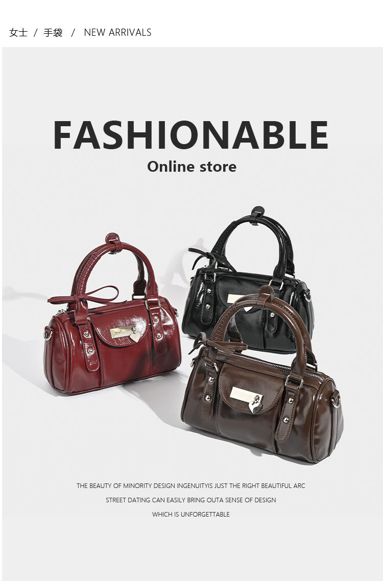 틈새 하이 엔드 볼링 핸드백 여성의 밝은 가죽 새로운 패션 올 매치 핫 소녀 통근 어깨 대각선 가방스토어 가기