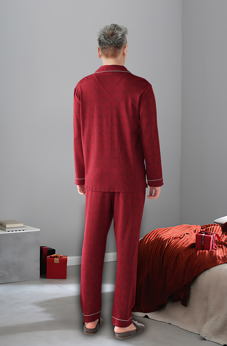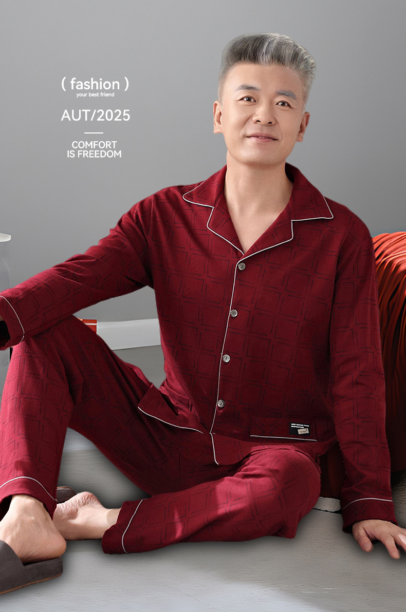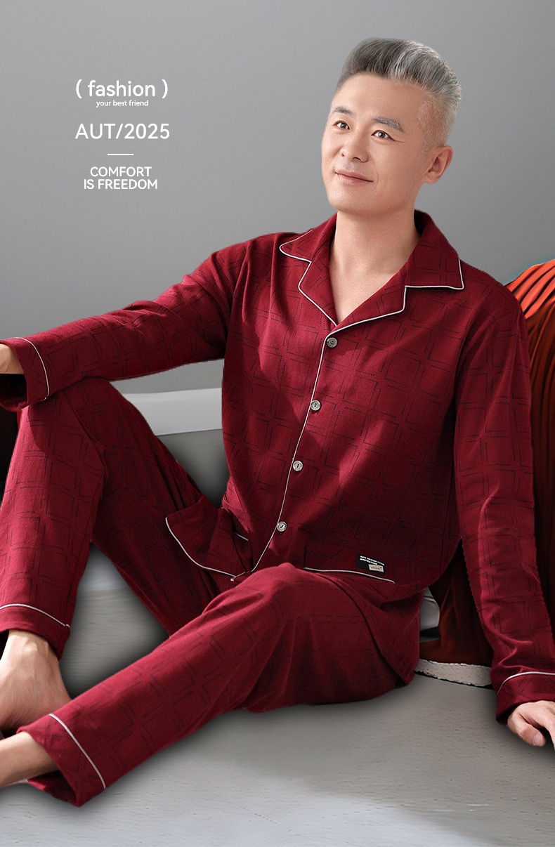 2025 Benmingnian 중년 및 노인 아빠 봄과 가을 겨울 남자 잠옷 면 긴 소매 남성용 면 홈 옷
