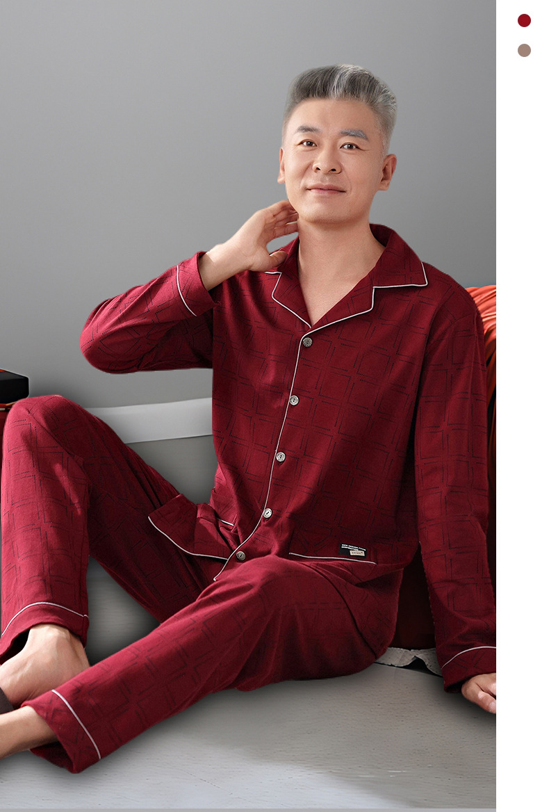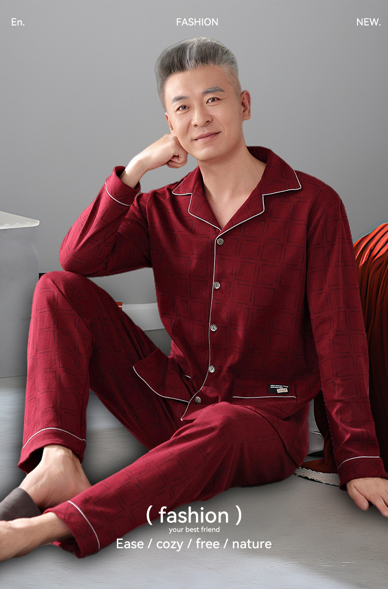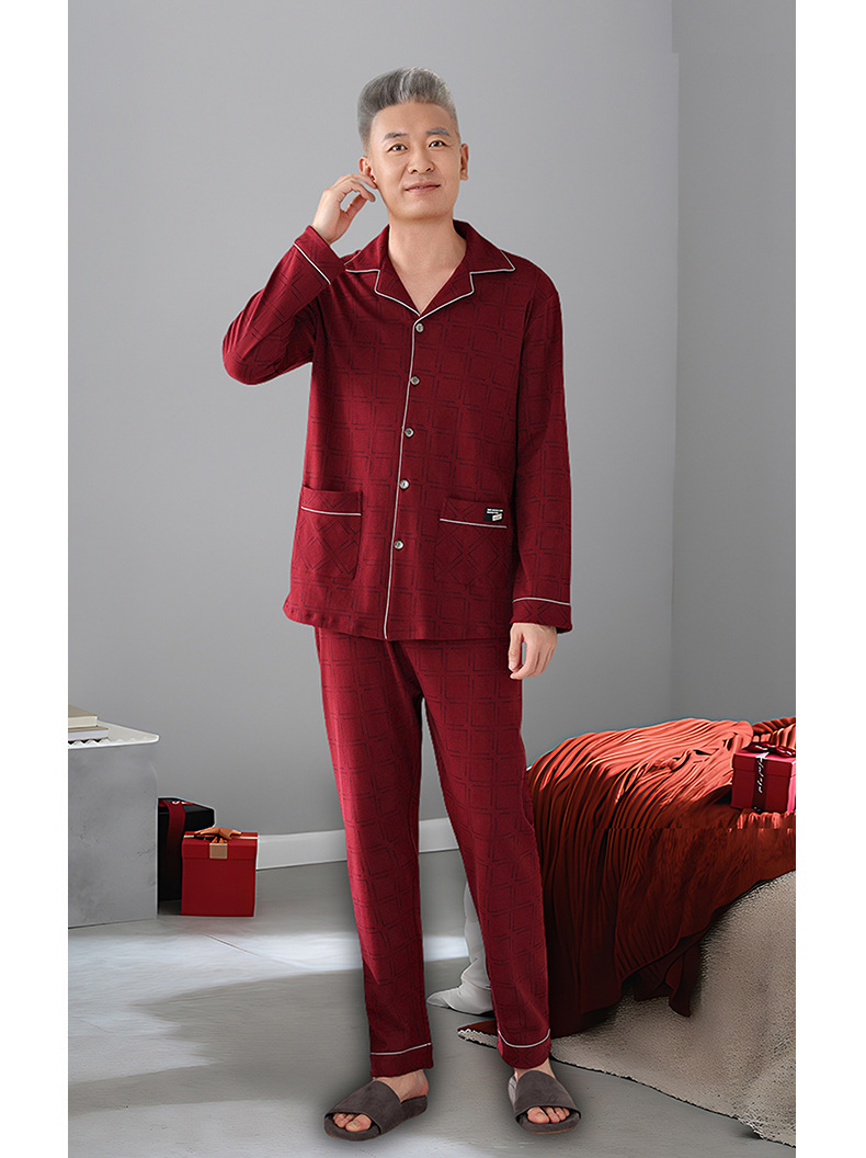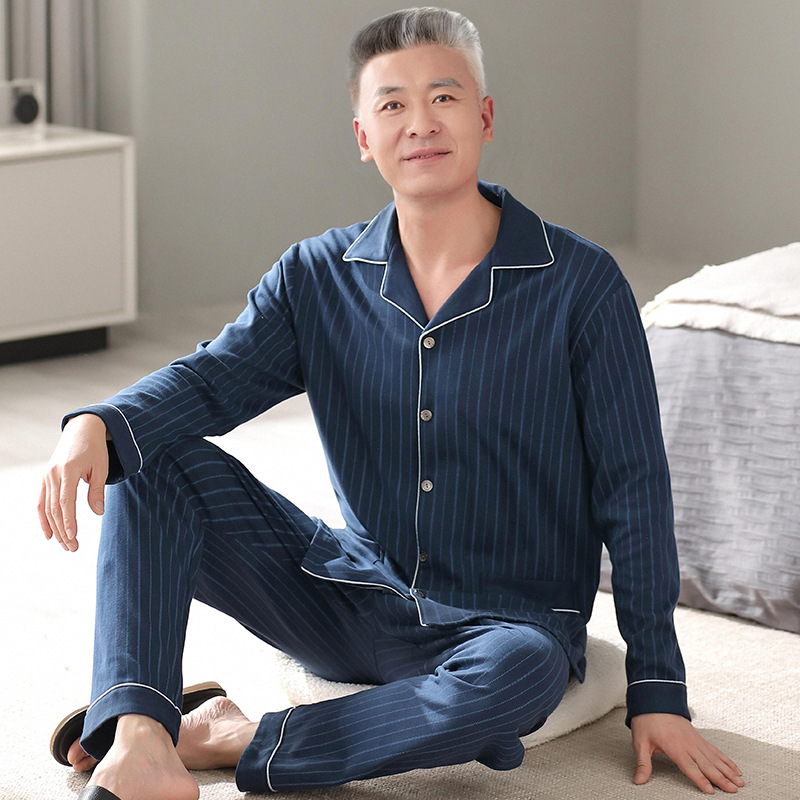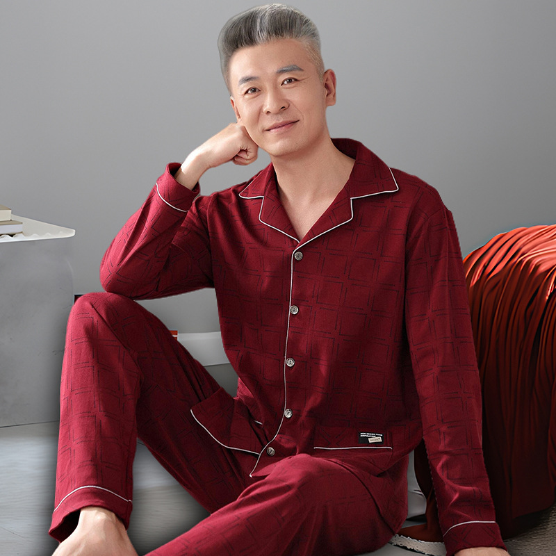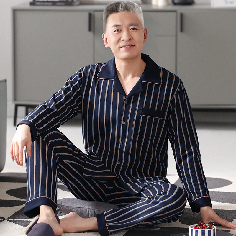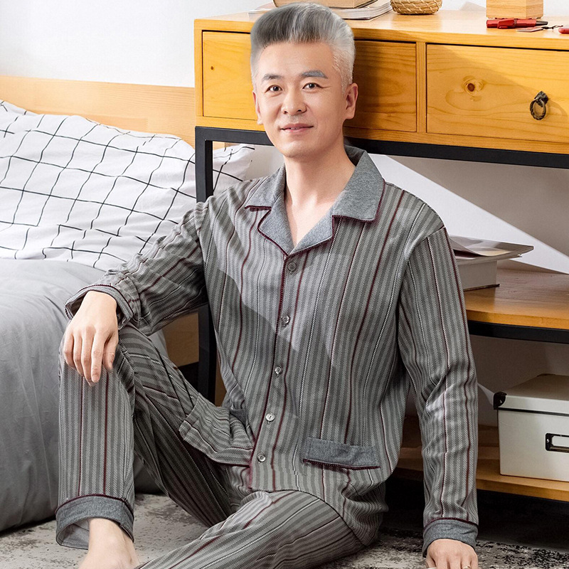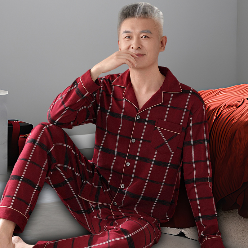 2025 Benmingnian 중년 및 노인 아빠 봄과 가을 겨울 남자 잠옷 면 긴 소매 남성용 면 홈 옷스토어 가기