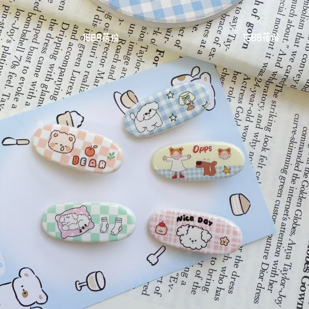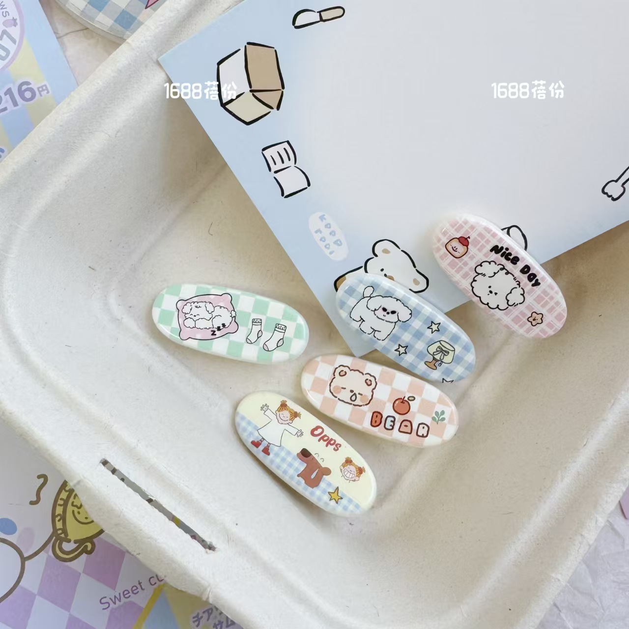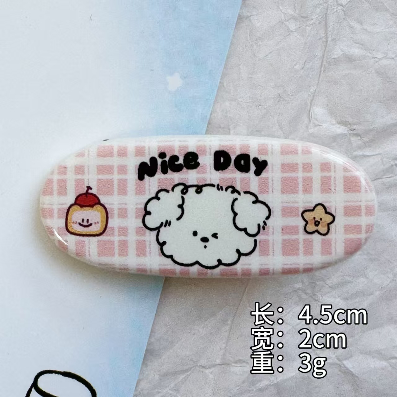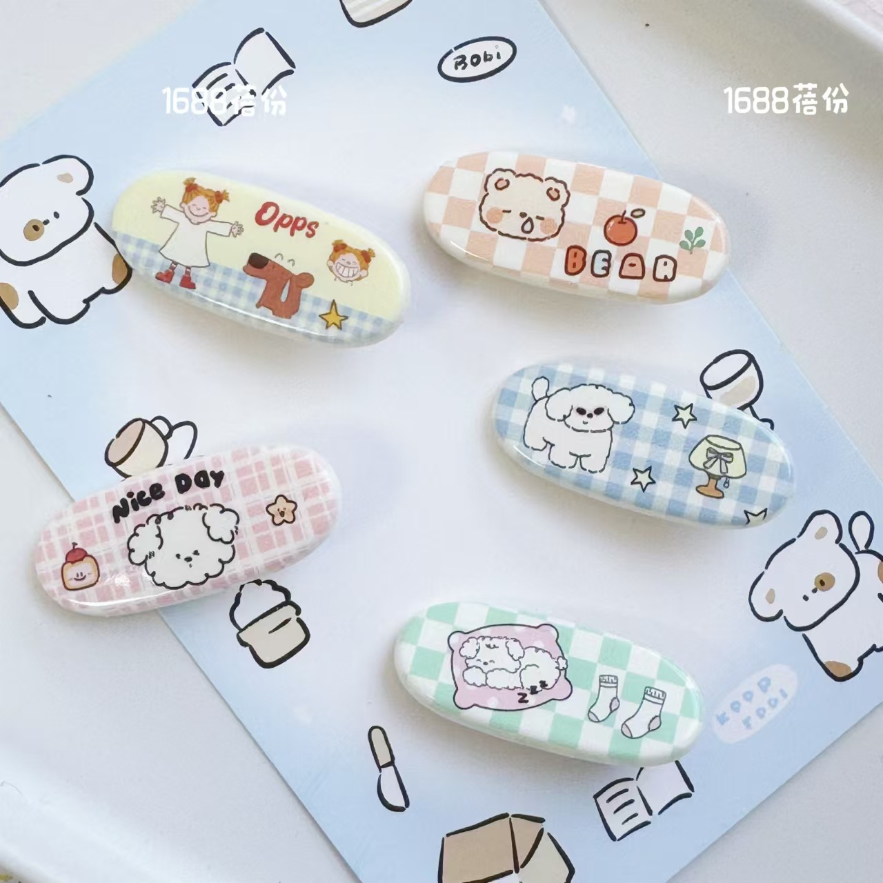 귀여운 만화 인쇄 된 강아지 타원형 헤어핀 달콤한 소녀의 심장 뱅이 클립 인 올 매치 어린이 헤어핀 헤어 액세서리