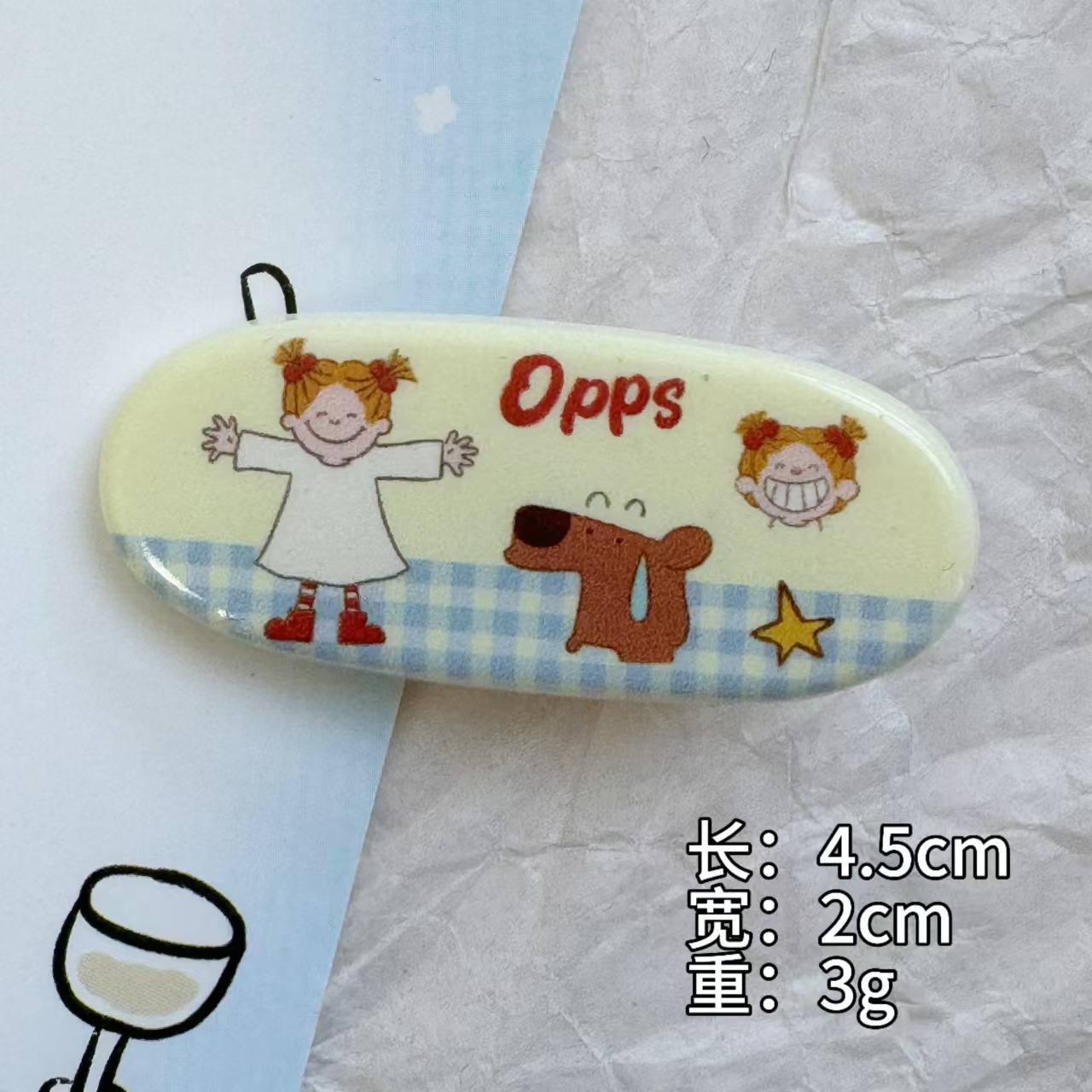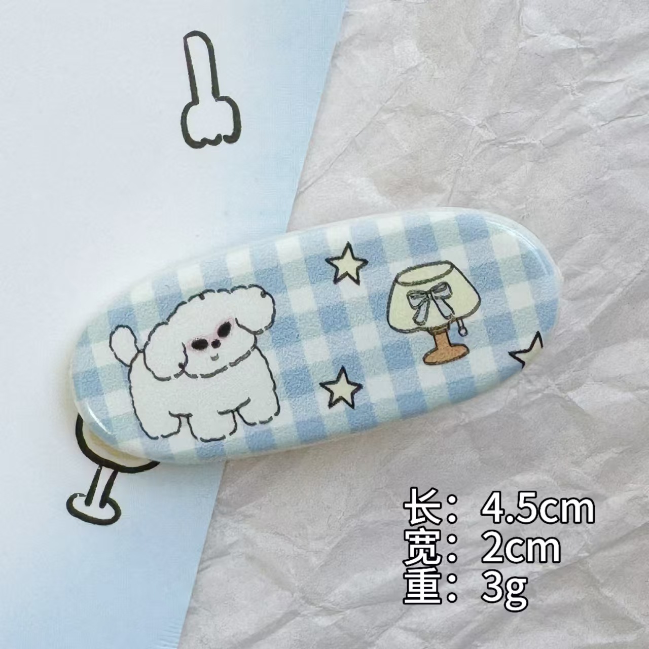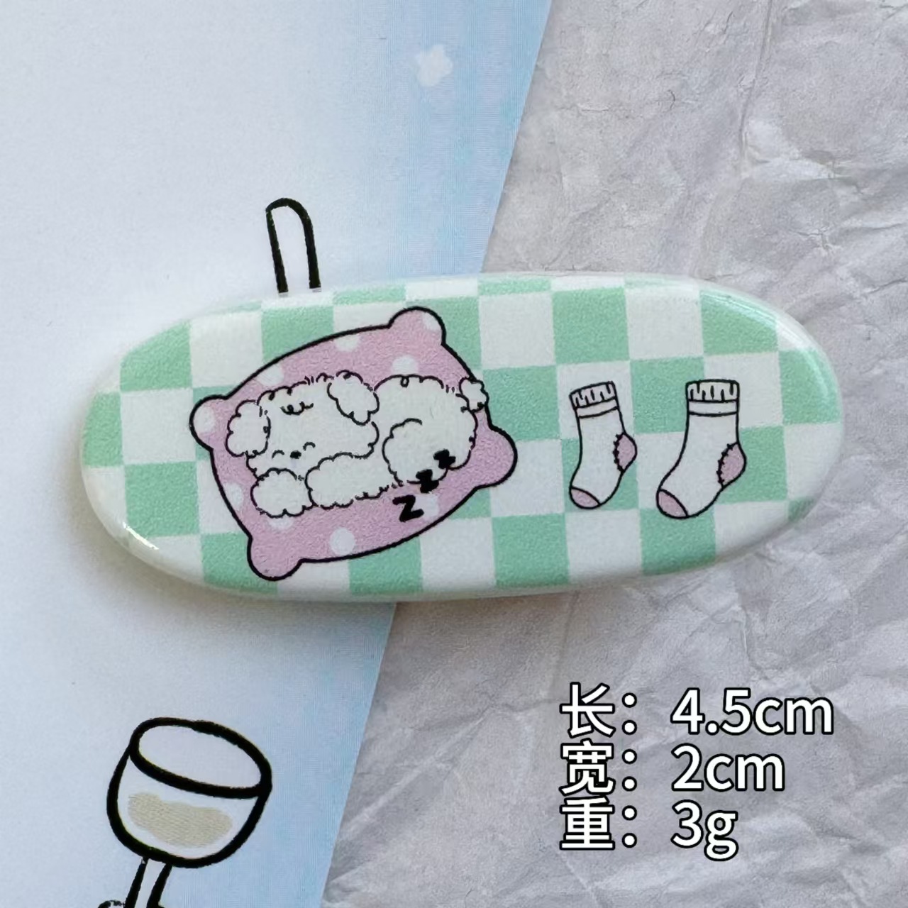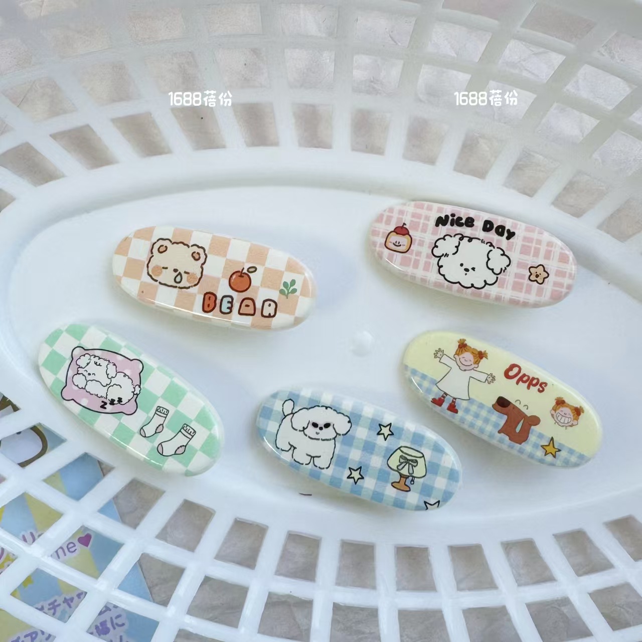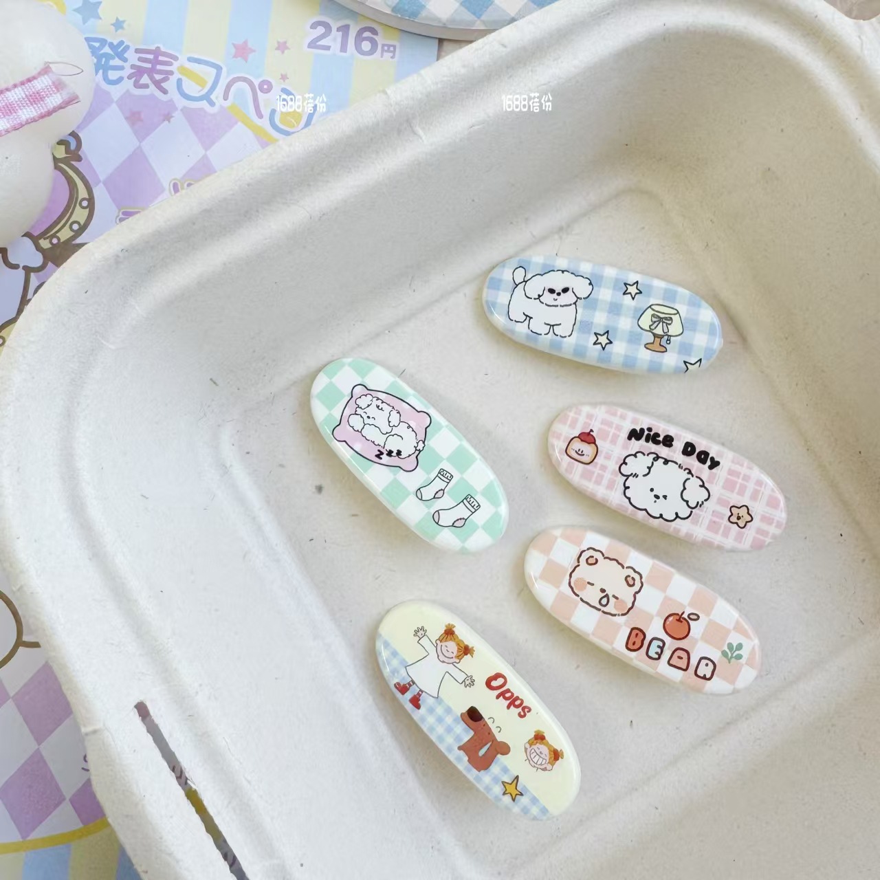 귀여운 만화 인쇄 된 강아지 타원형 헤어핀 달콤한 소녀의 심장 뱅이 클립 인 올 매치 어린이 헤어핀 헤어 액세서리