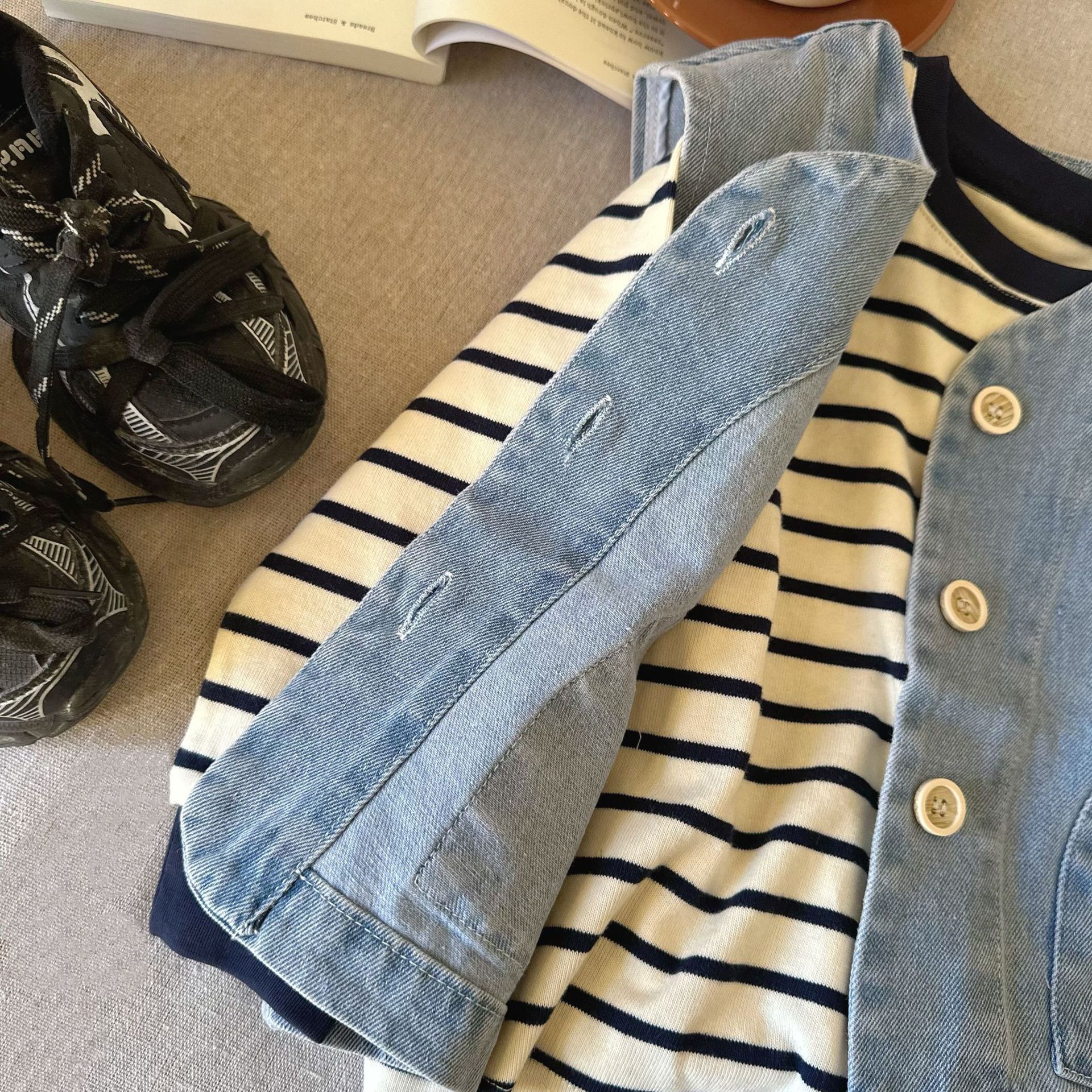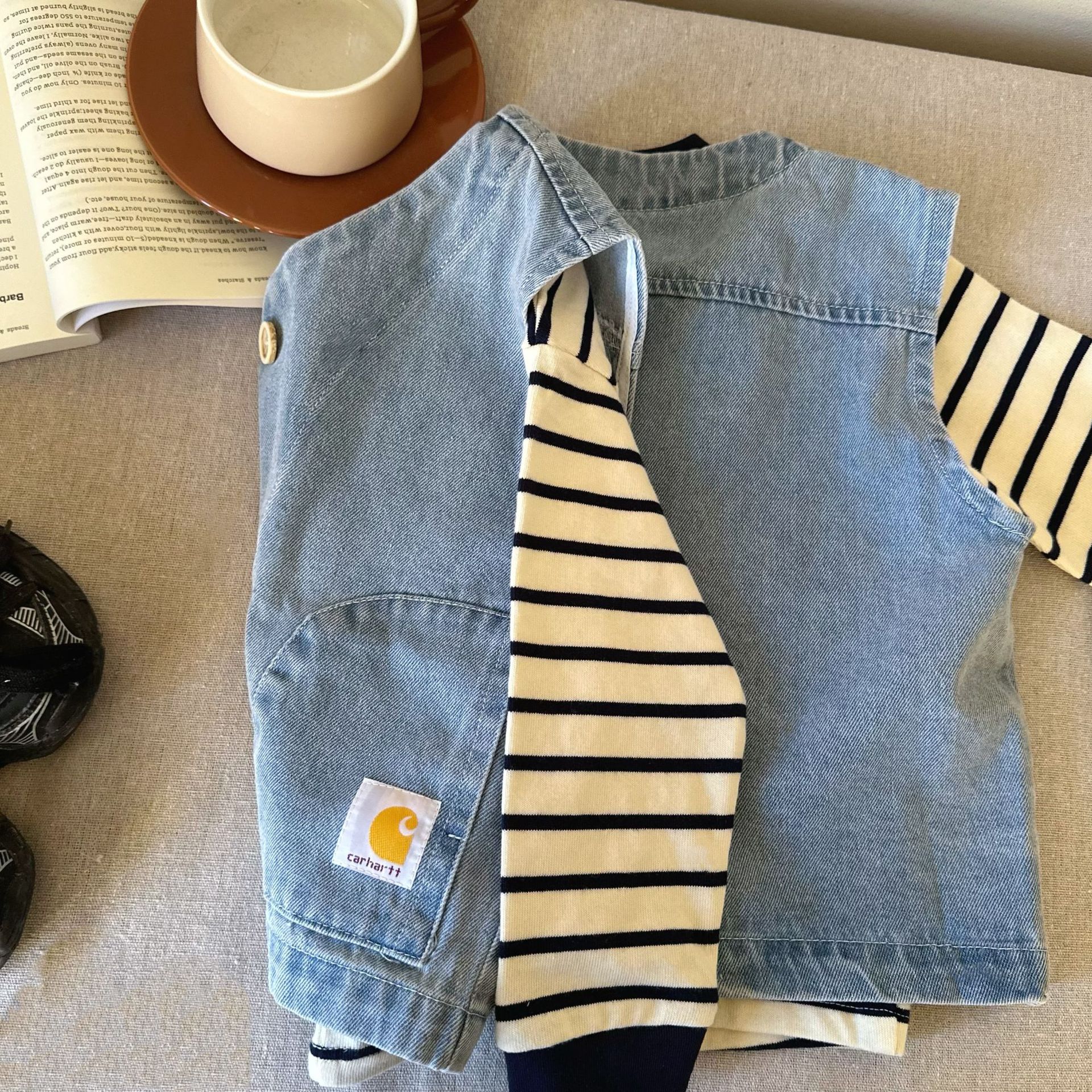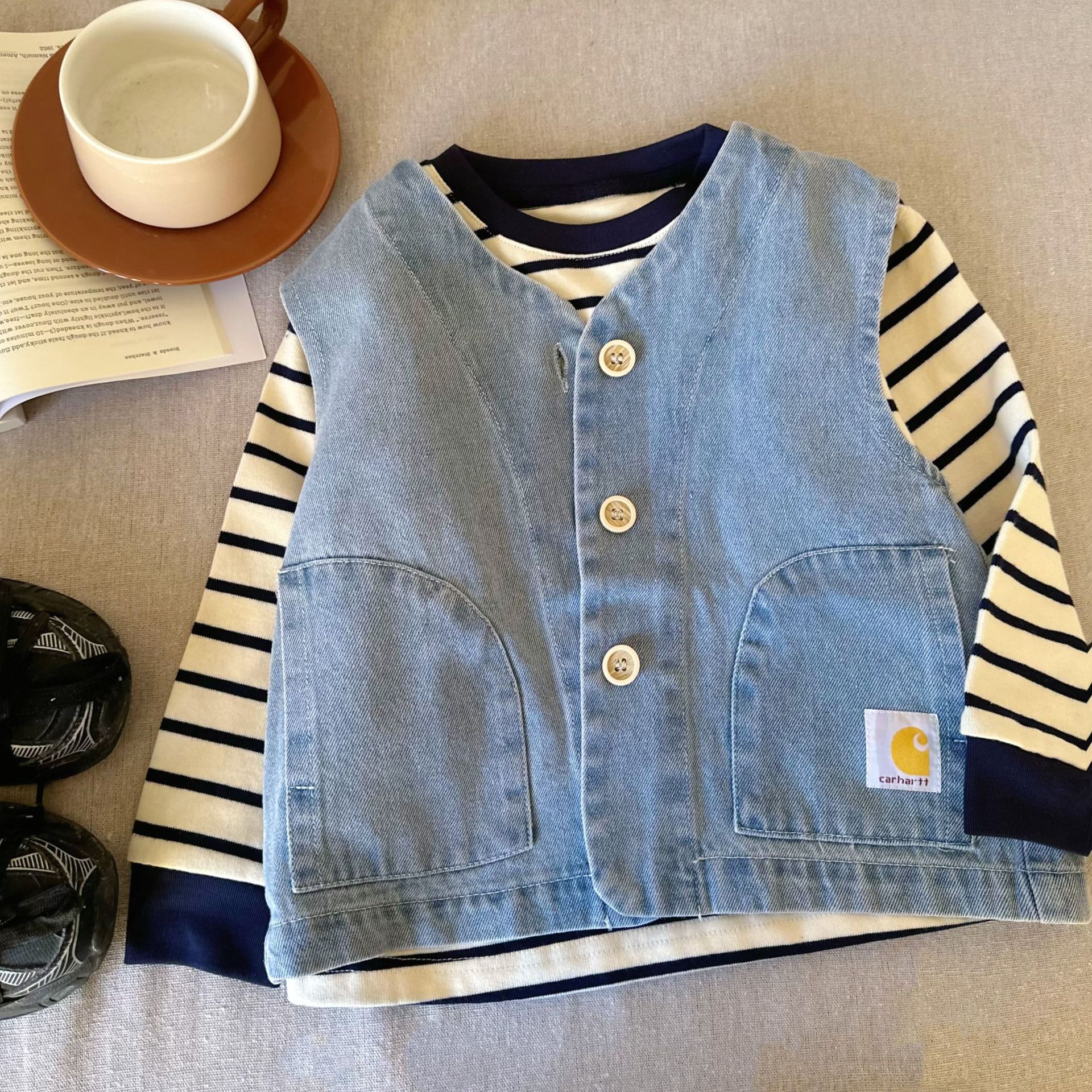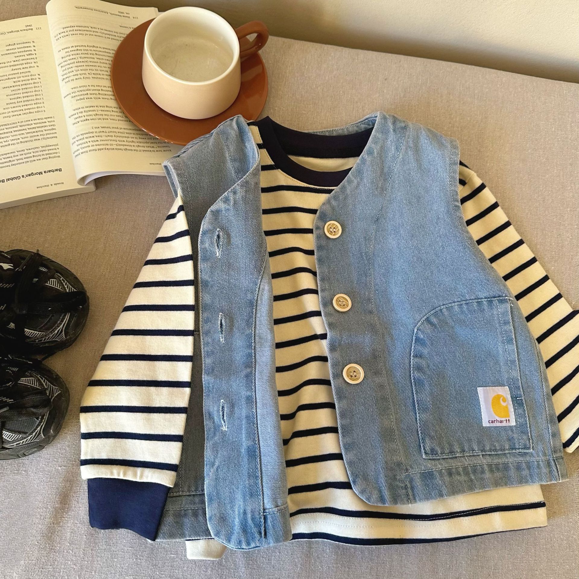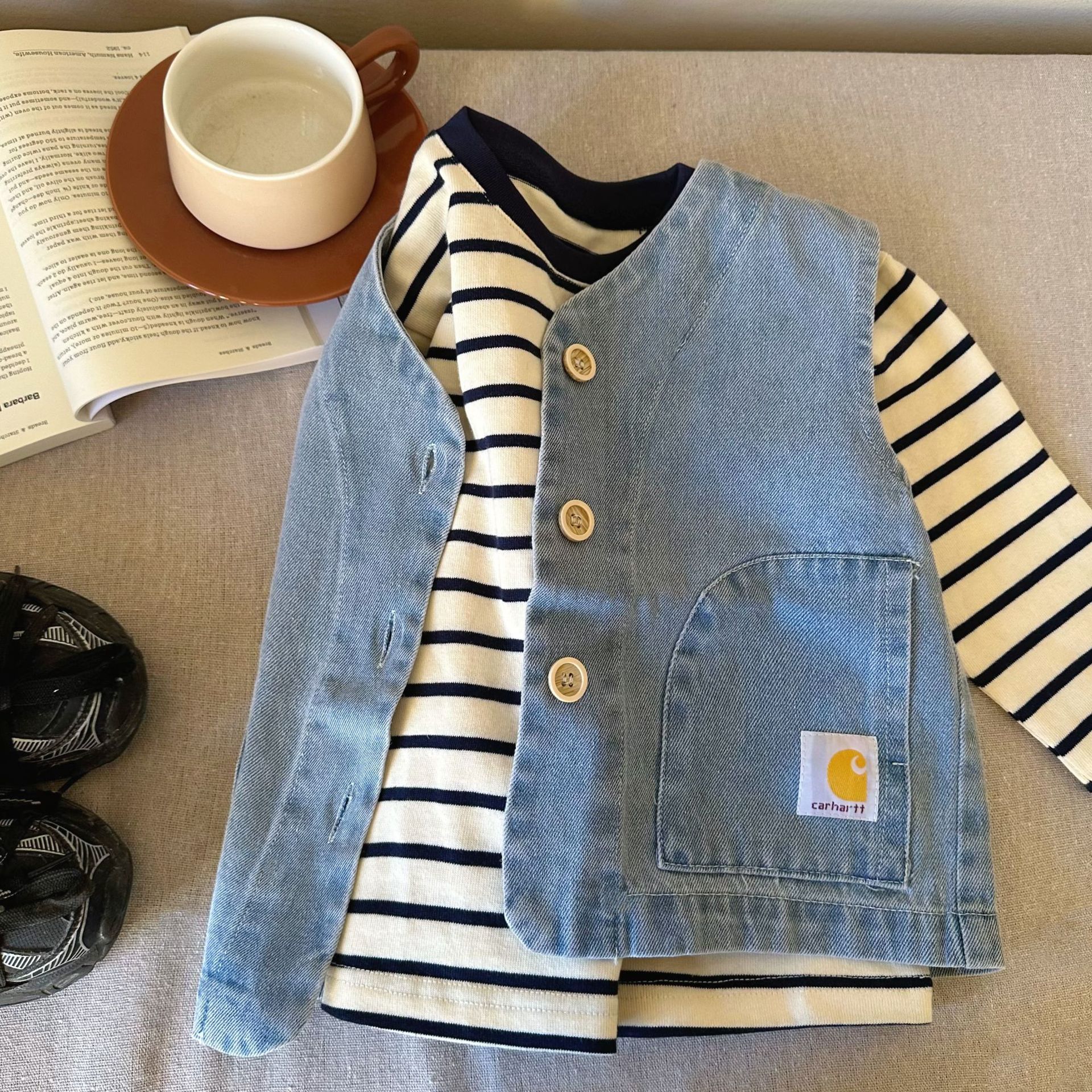 어린이 조끼 25 봄과 가을 어린이 데님 조끼 소년 일본 유행 캐주얼 조끼 봄 조끼스토어 가기