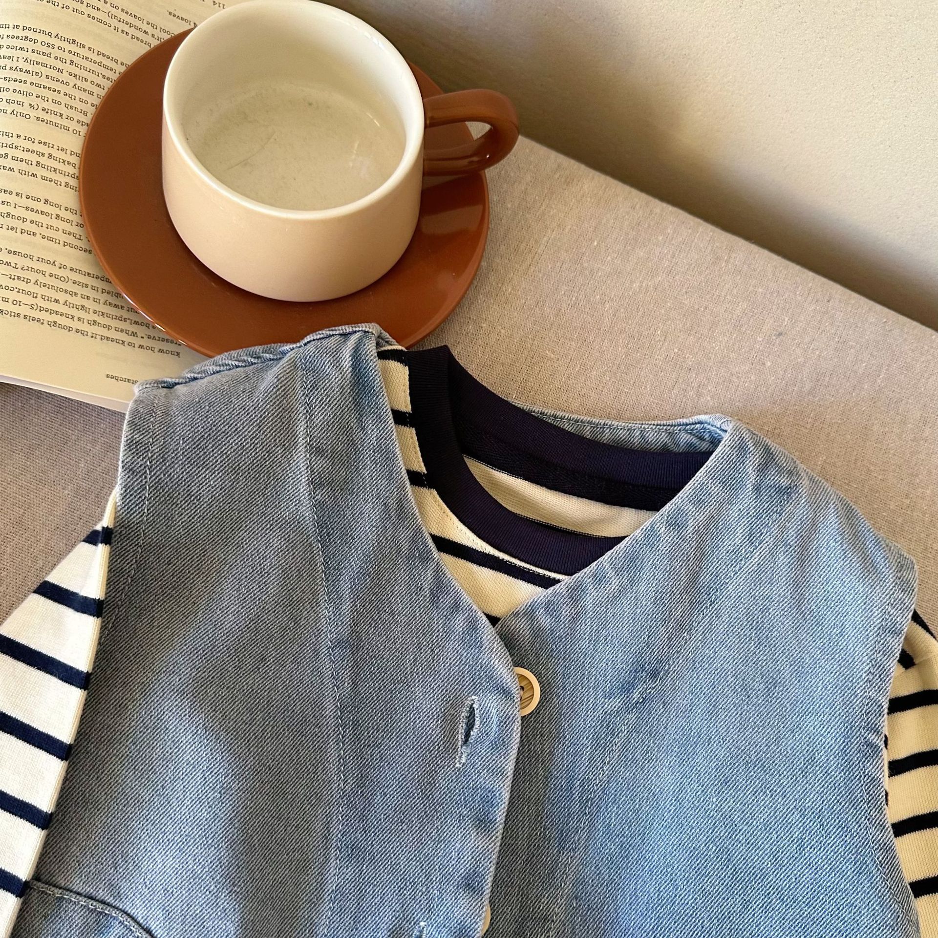 어린이 조끼 25 봄과 가을 어린이 데님 조끼 소년 일본 유행 캐주얼 조끼 봄 조끼