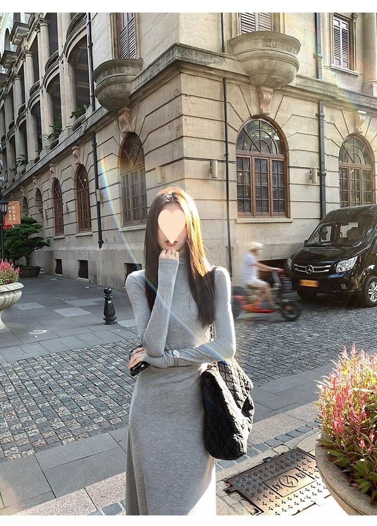 순수한 욕망 바람에 감싼 엉덩이 원피스 높은 목 Bottoming 내부 긴 원피스 Pleated 가을 여성의 A 자형 슬림 디자인