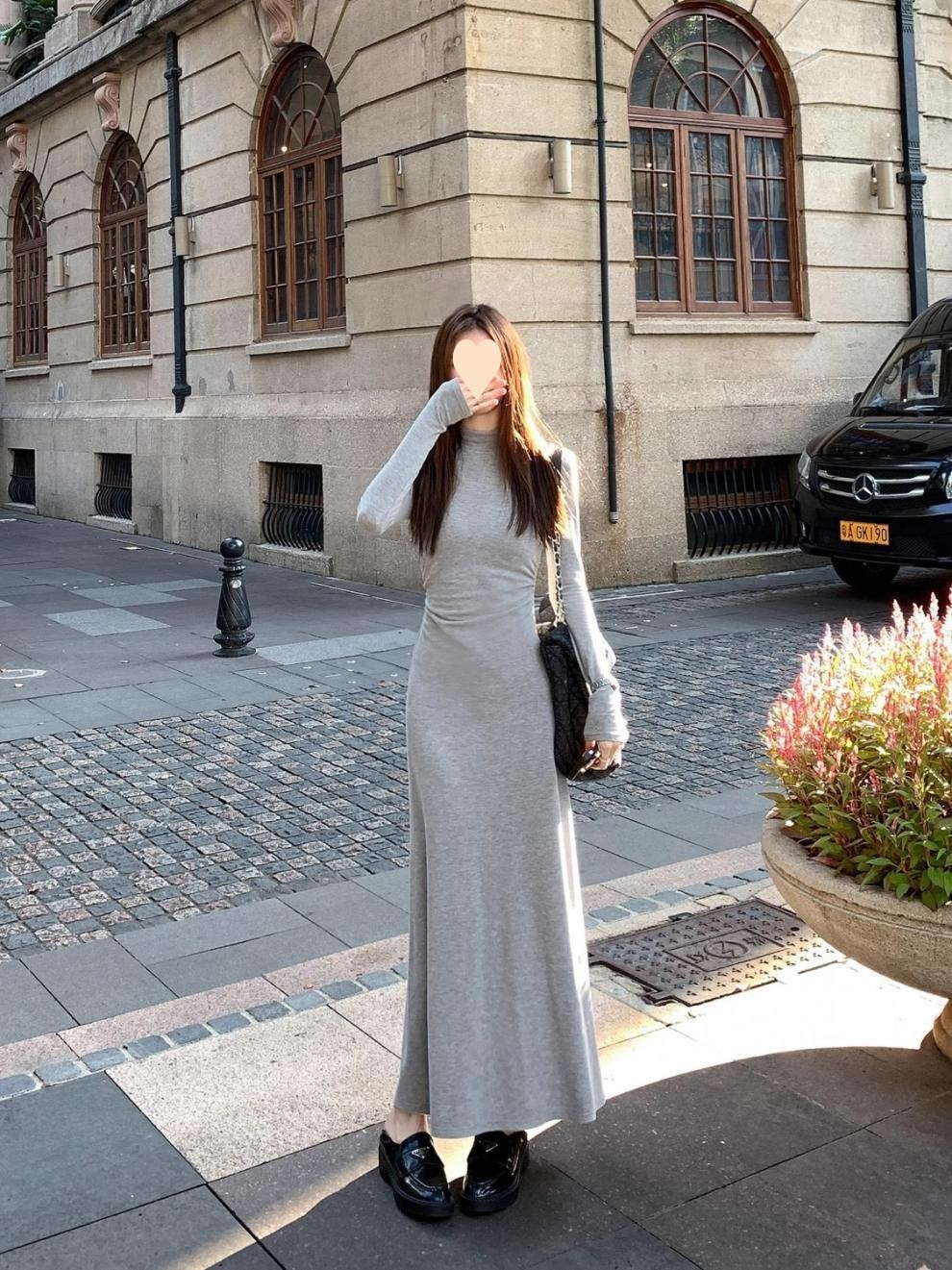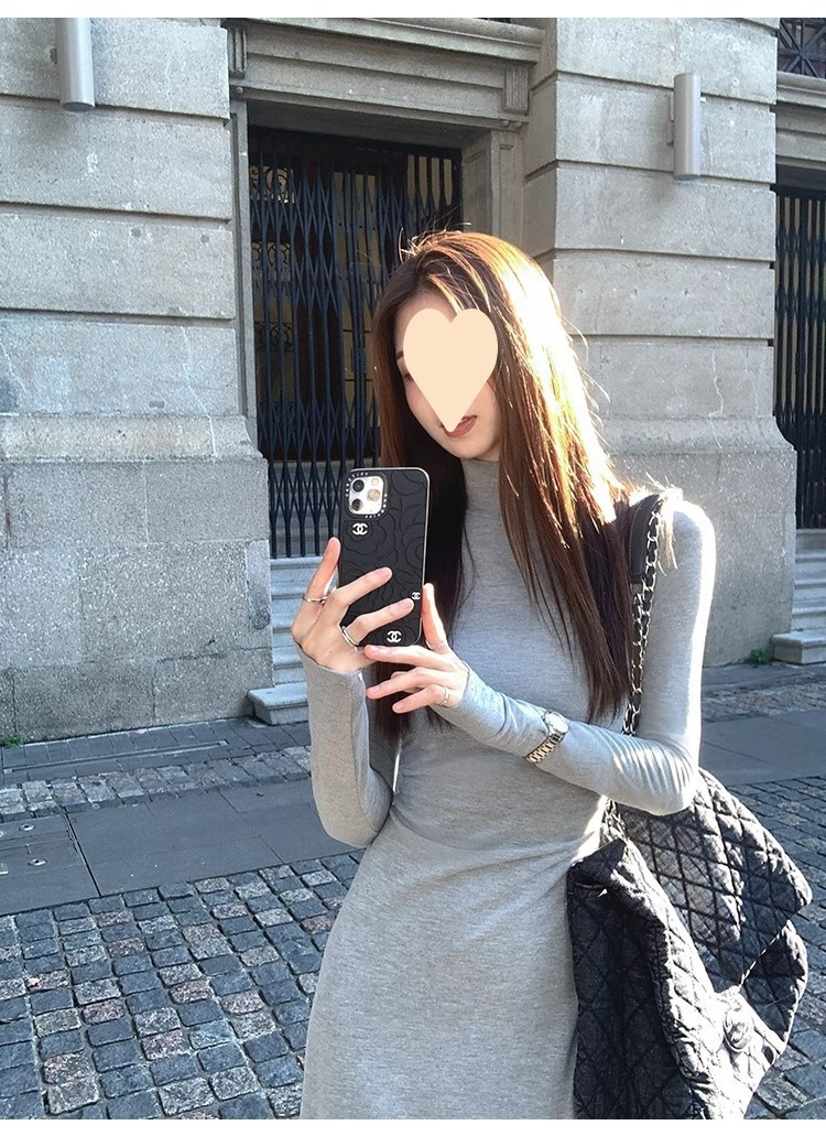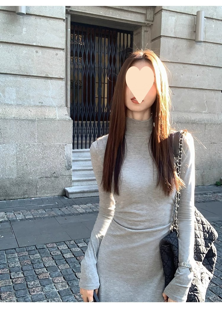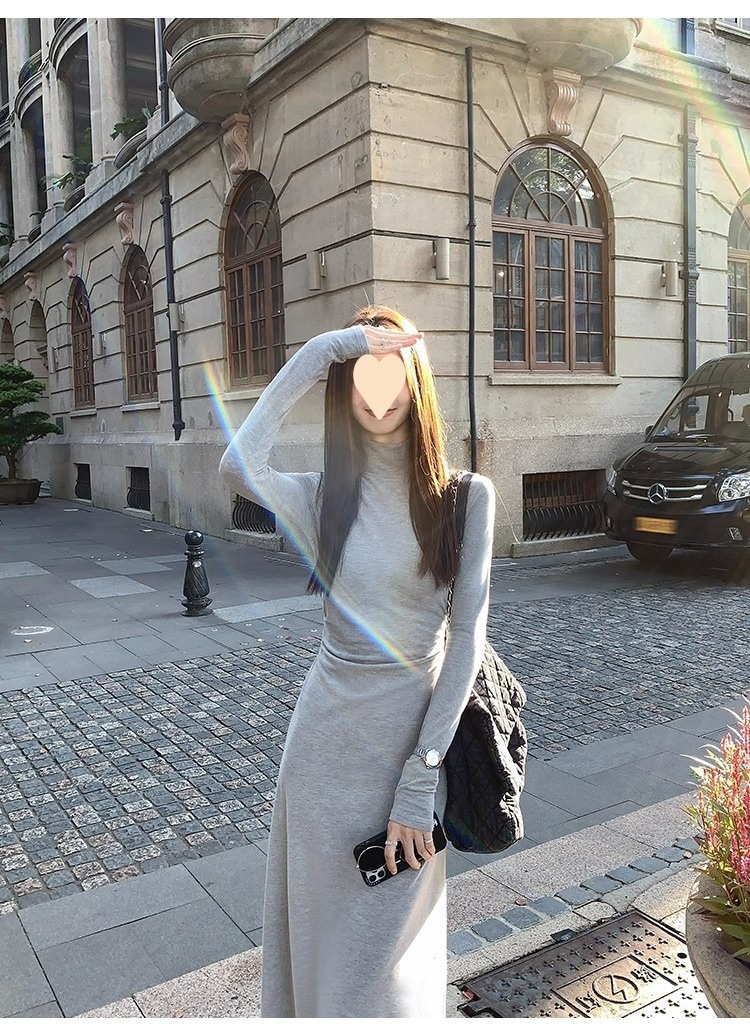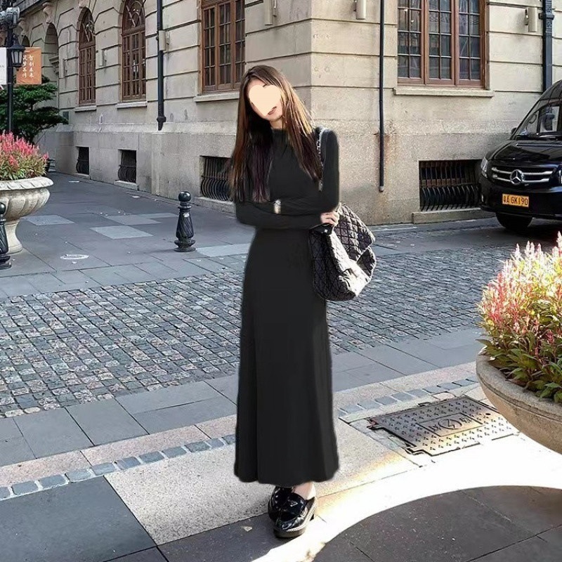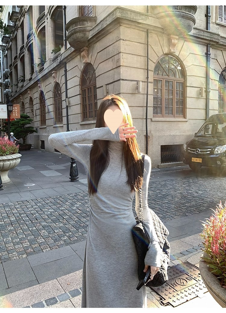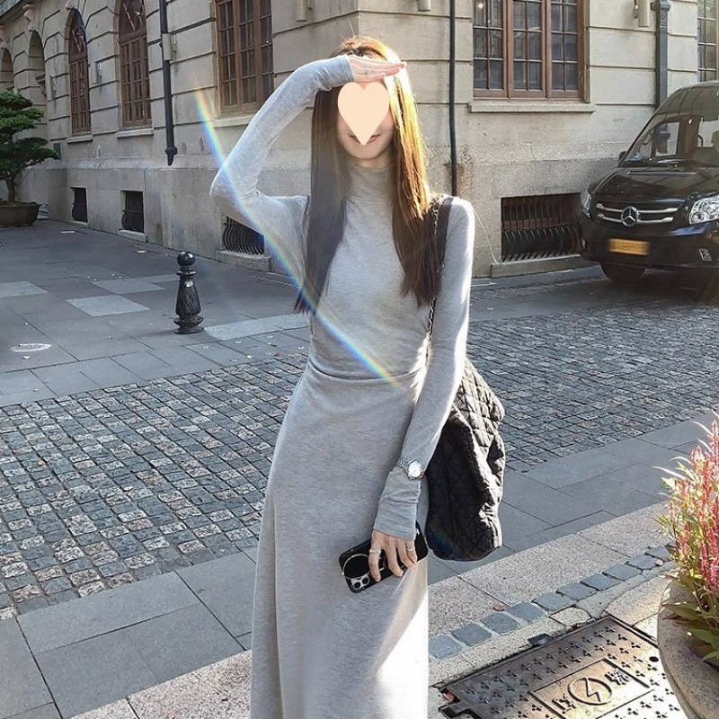 순수한 욕망 바람에 감싼 엉덩이 원피스 높은 목 Bottoming 내부 긴 원피스 Pleated 가을 여성의 A 자형 슬림 디자인스토어 가기